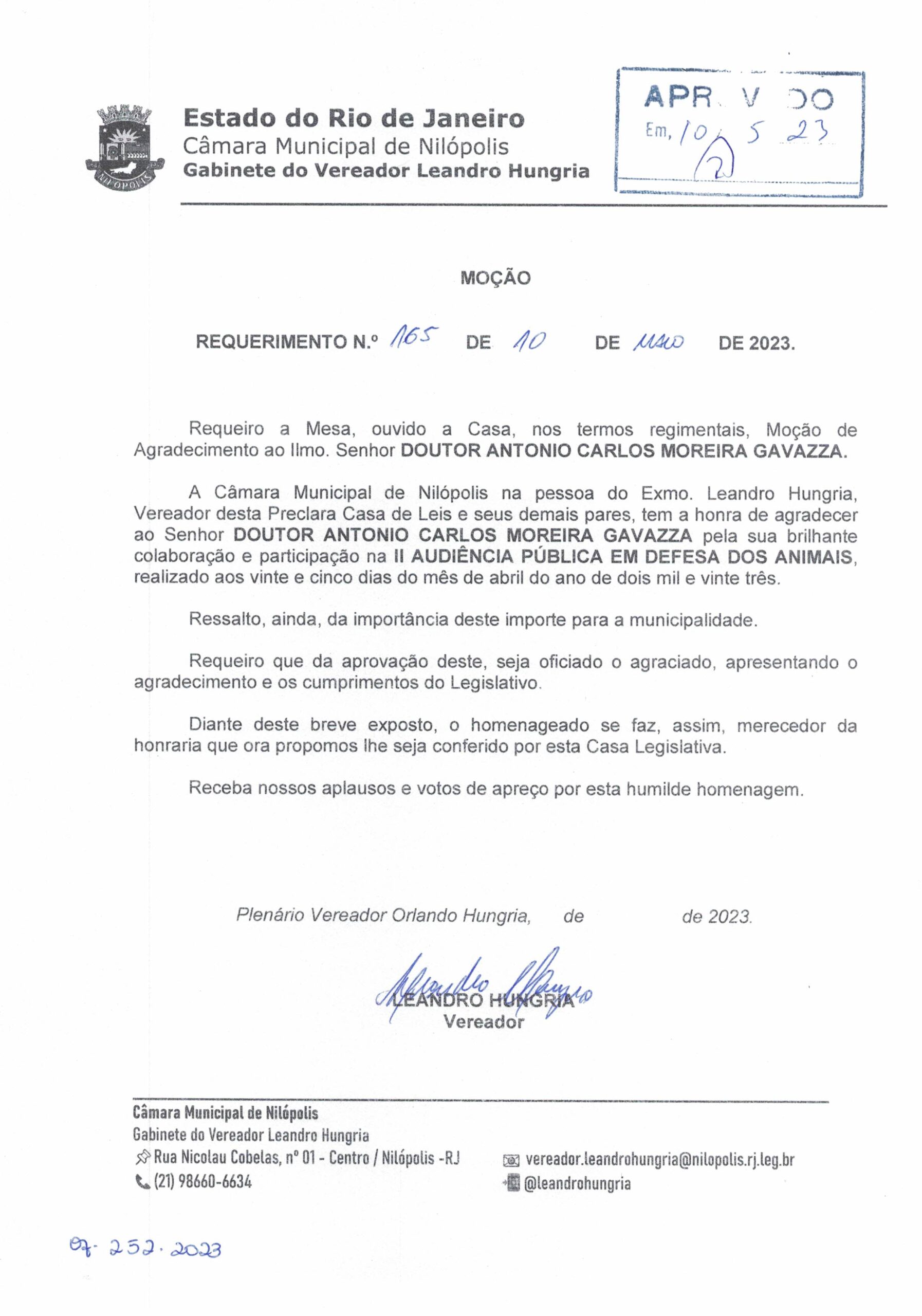 - 165 – ANTÔNIO CARLOS MOREIRA GAVAZZA