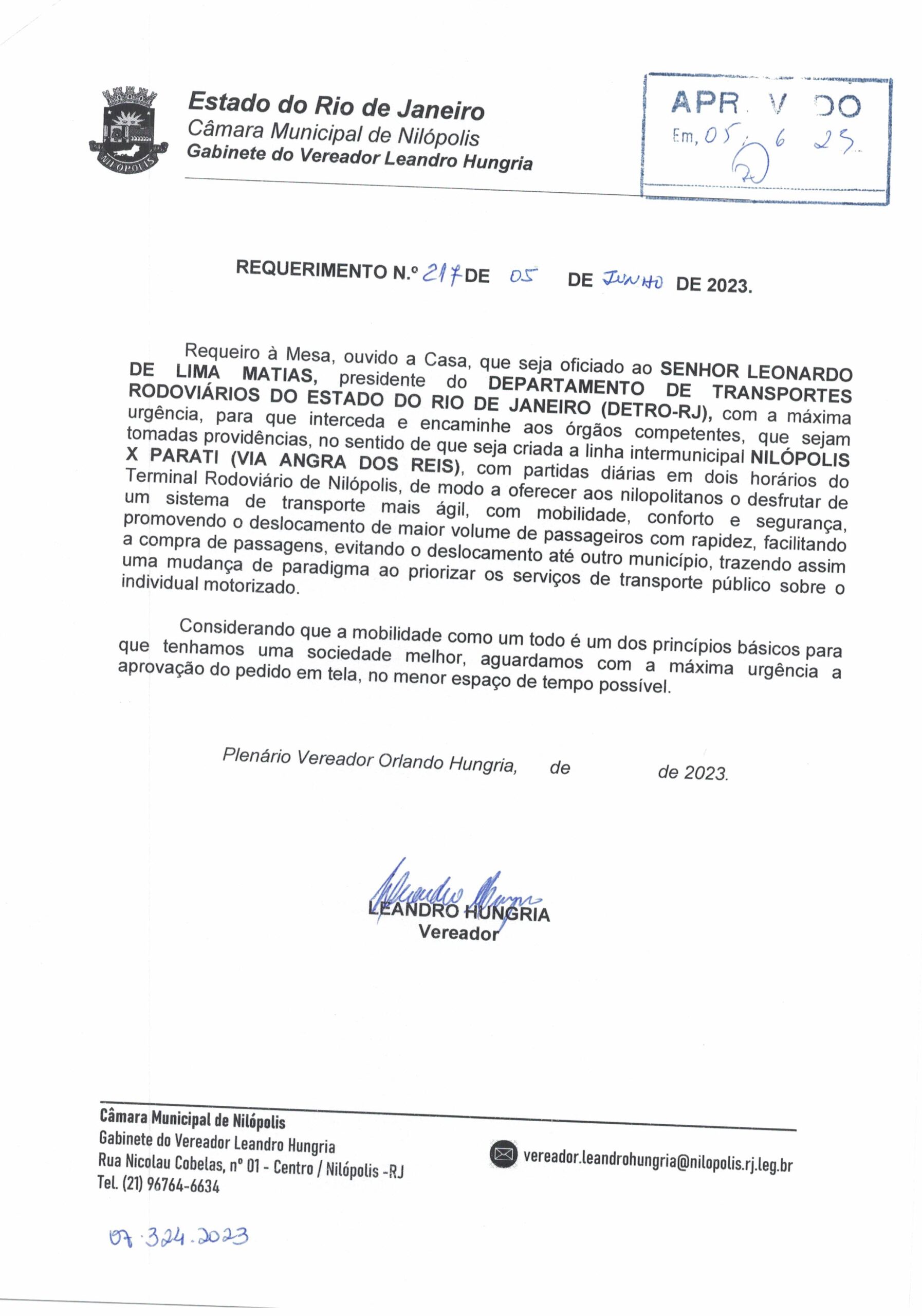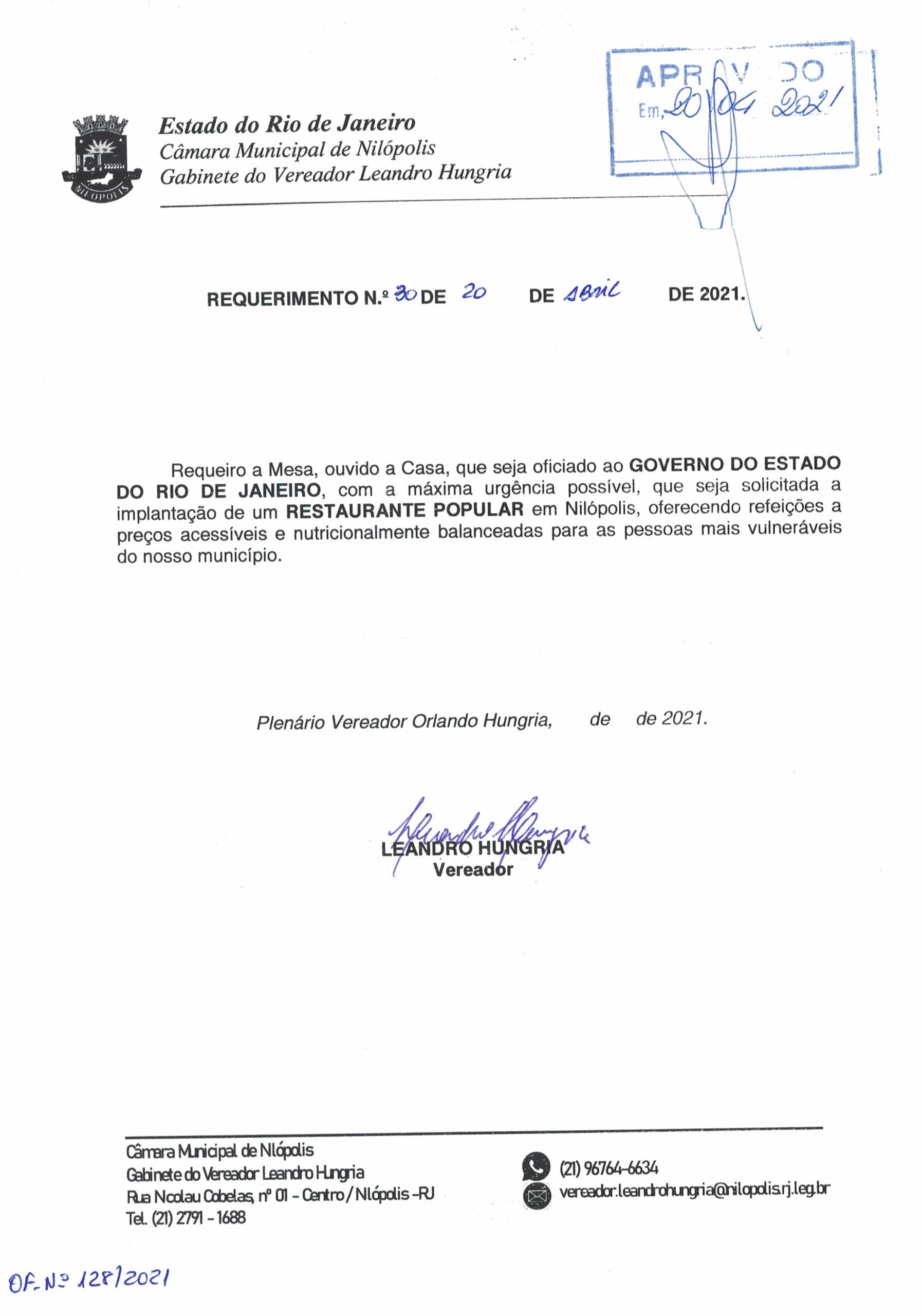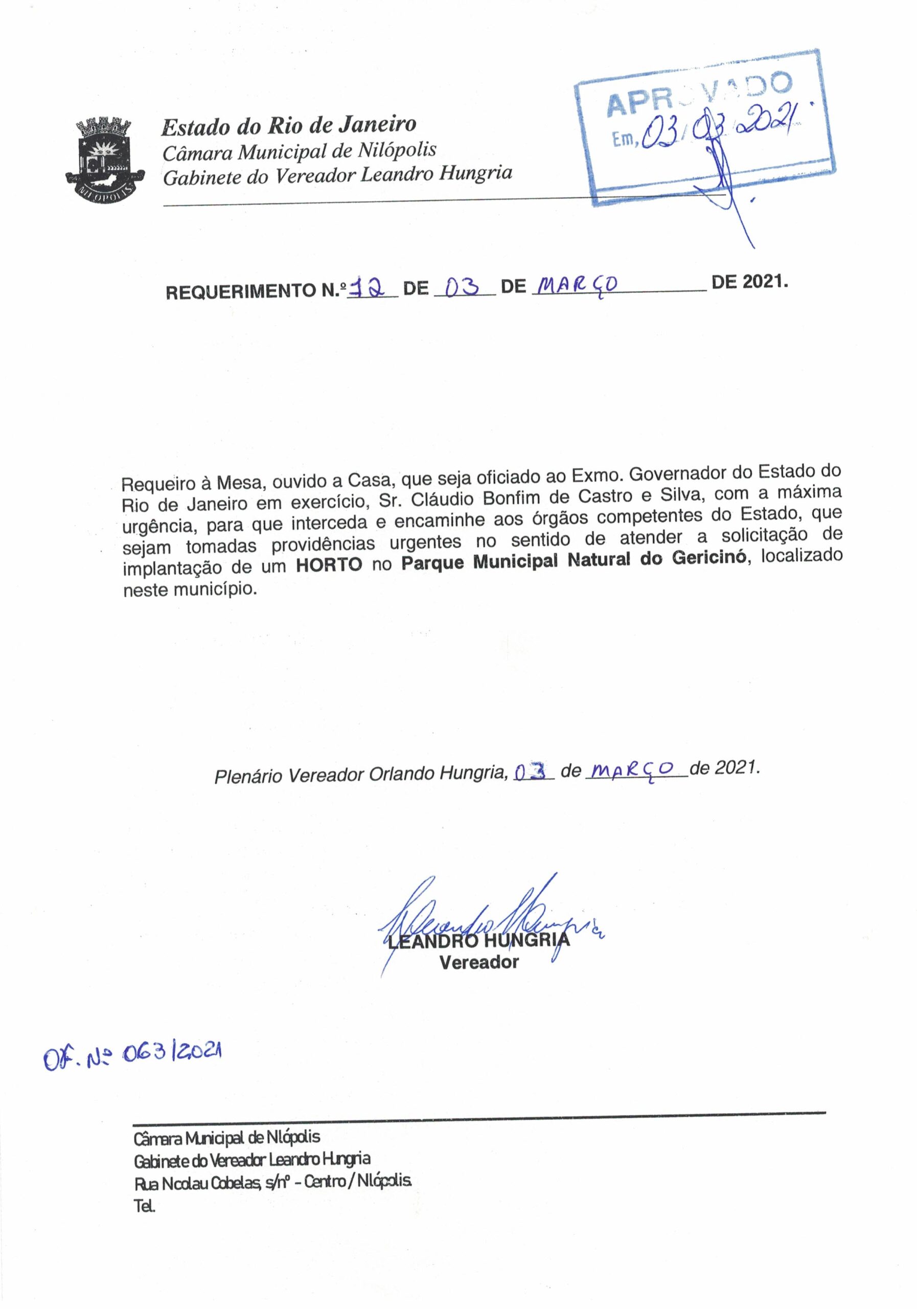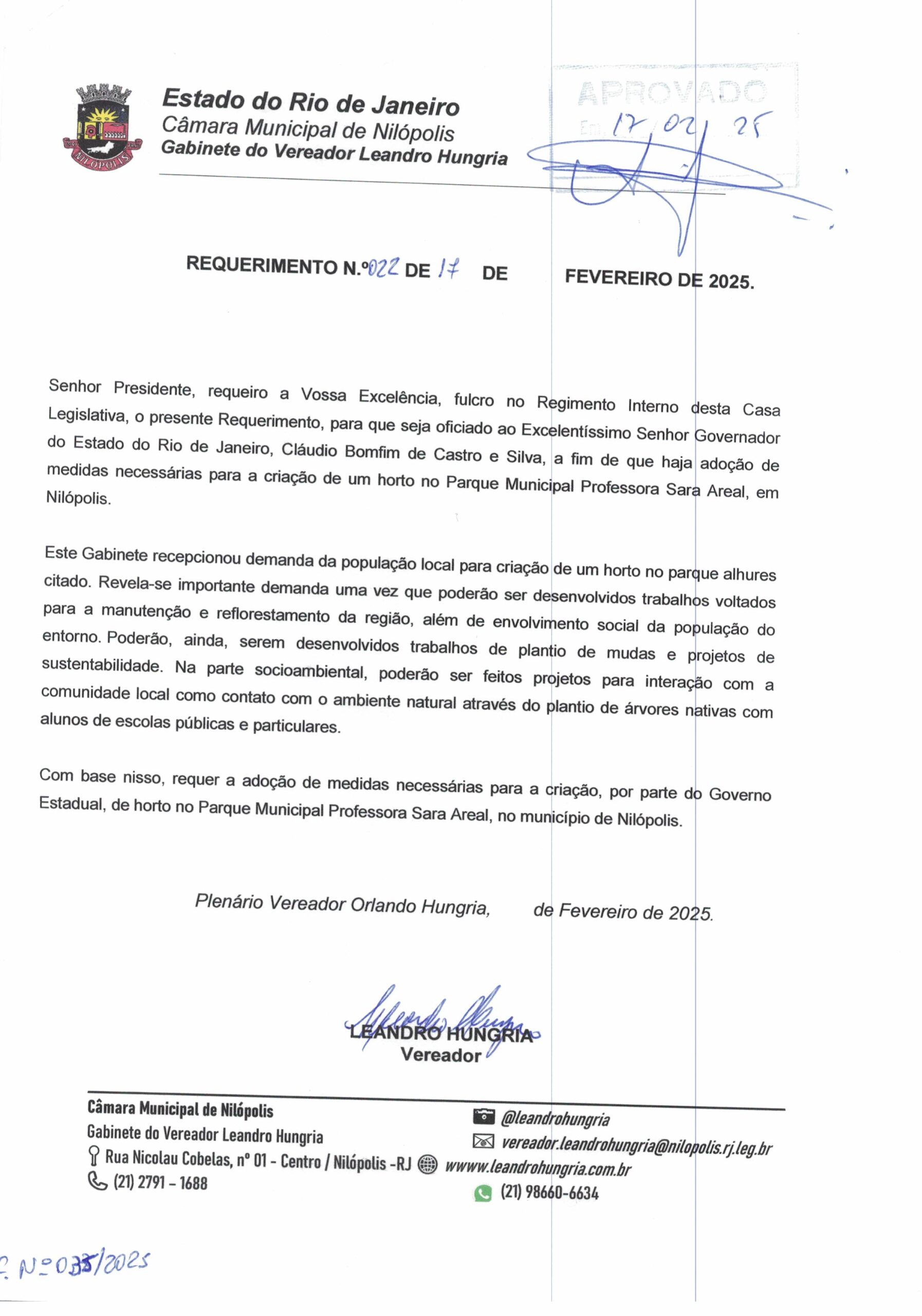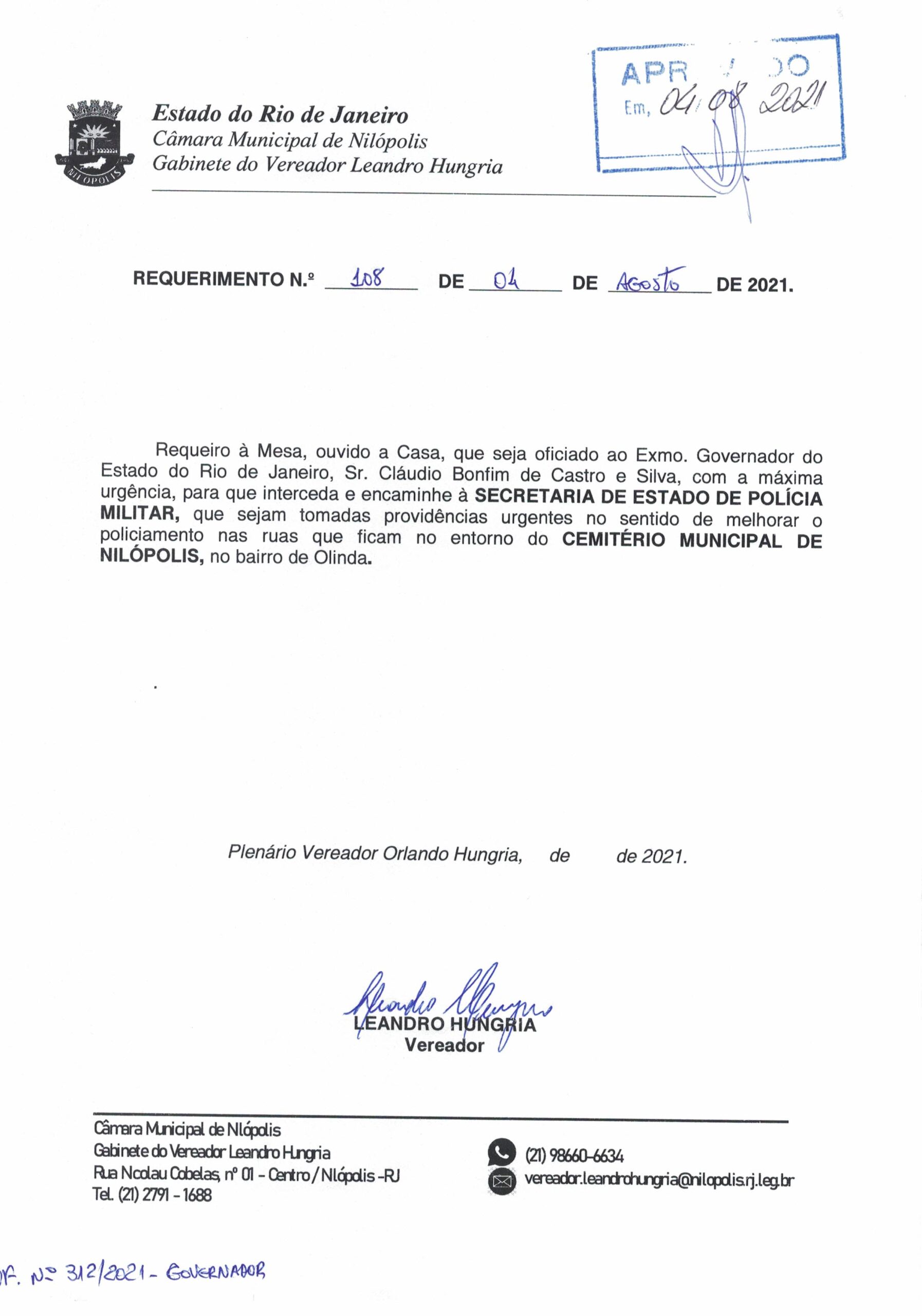 Abaixo apresentamos alguns dos Requerimentos apresentados pelo vereador Leandro Hungria desde o seu primeiro mandato. O arquivo com todos os Requerimentos pode ser encontrado na Câmara Municipal de Nilópolis.