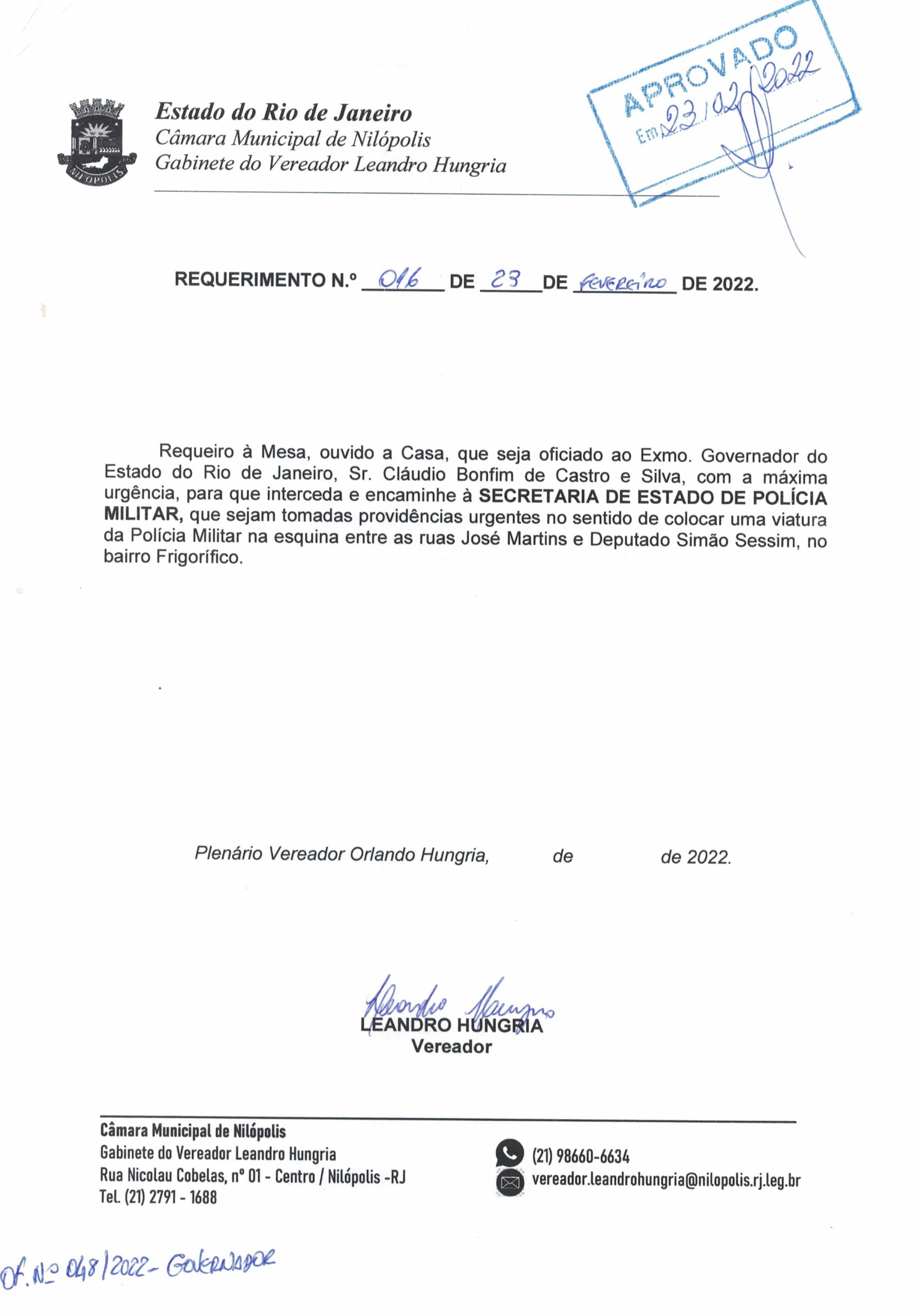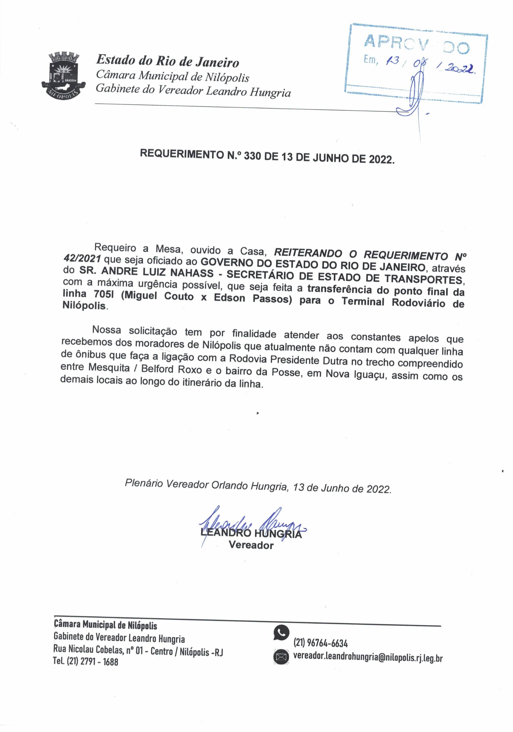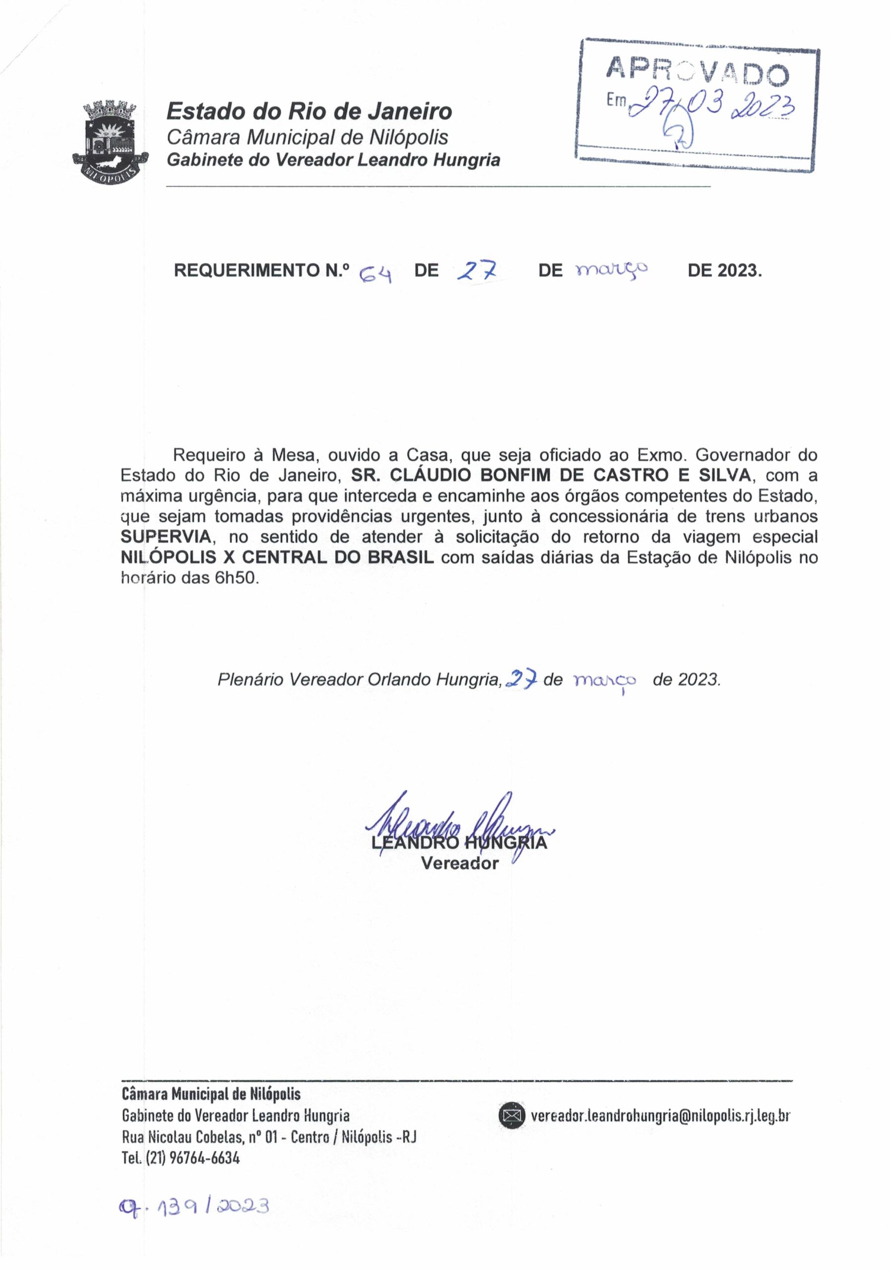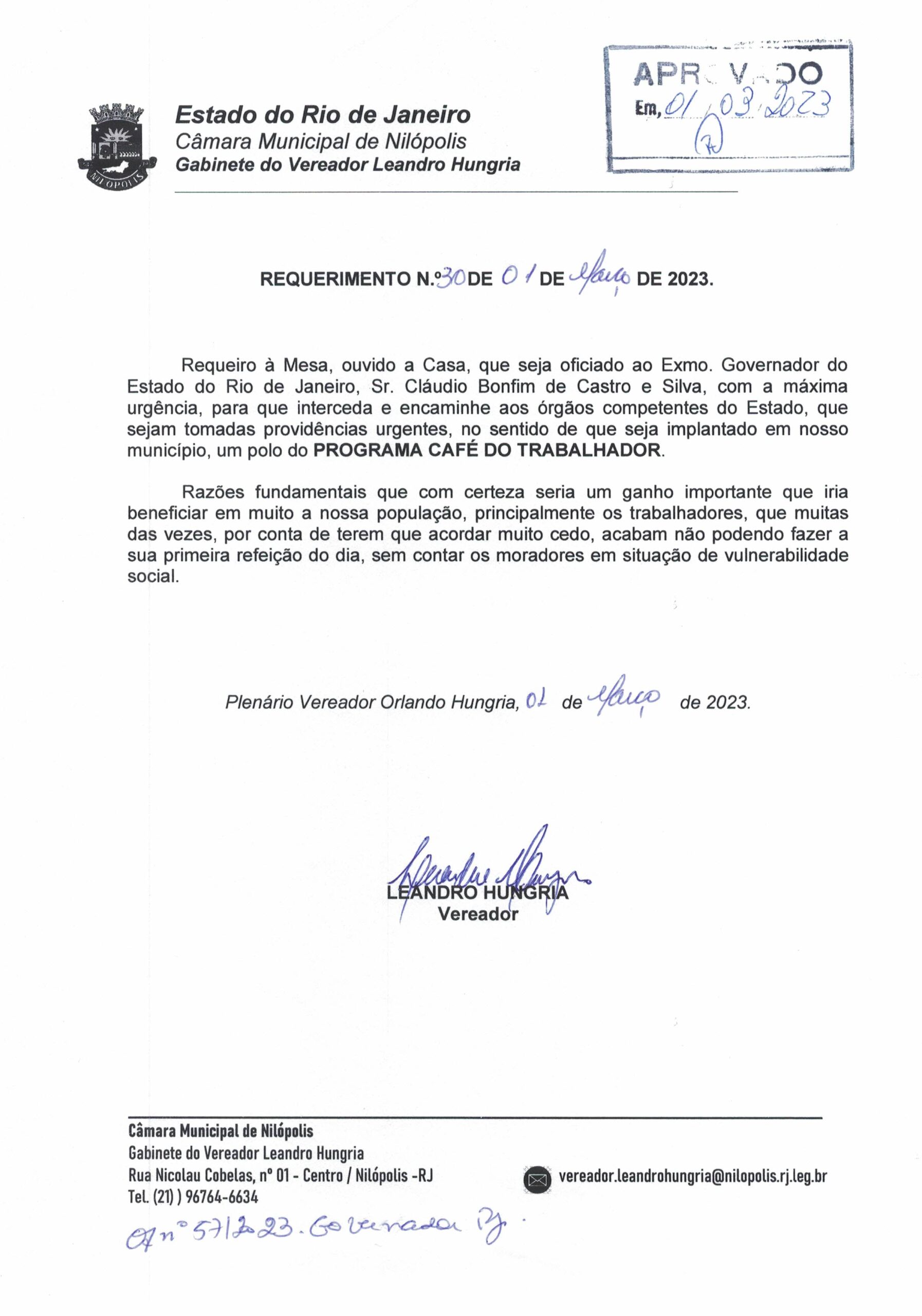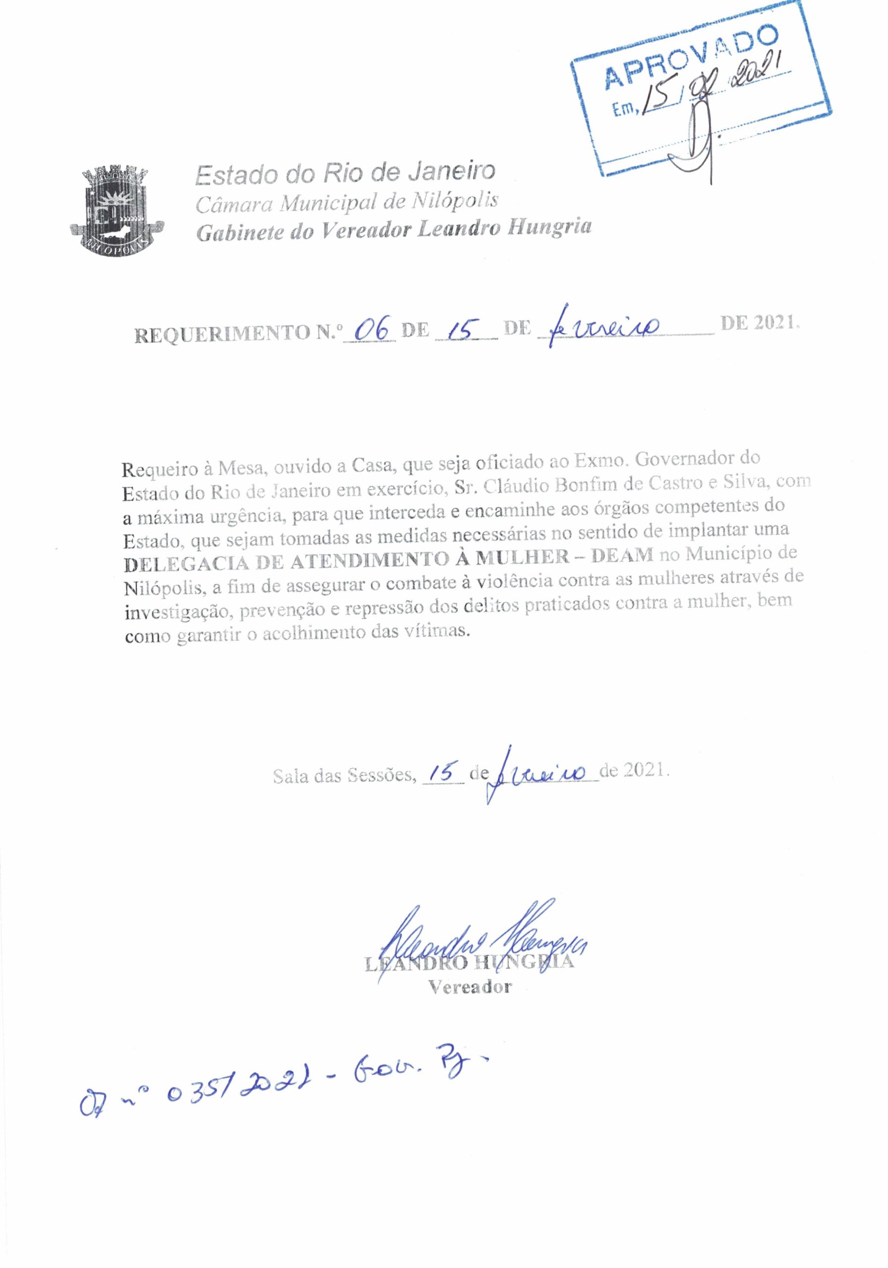 Abaixo apresentamos alguns dos Requerimentos apresentados pelo vereador Leandro Hungria desde o seu primeiro mandato. O arquivo com todos os Requerimentos pode ser encontrado na Câmara Municipal de Nilópolis.