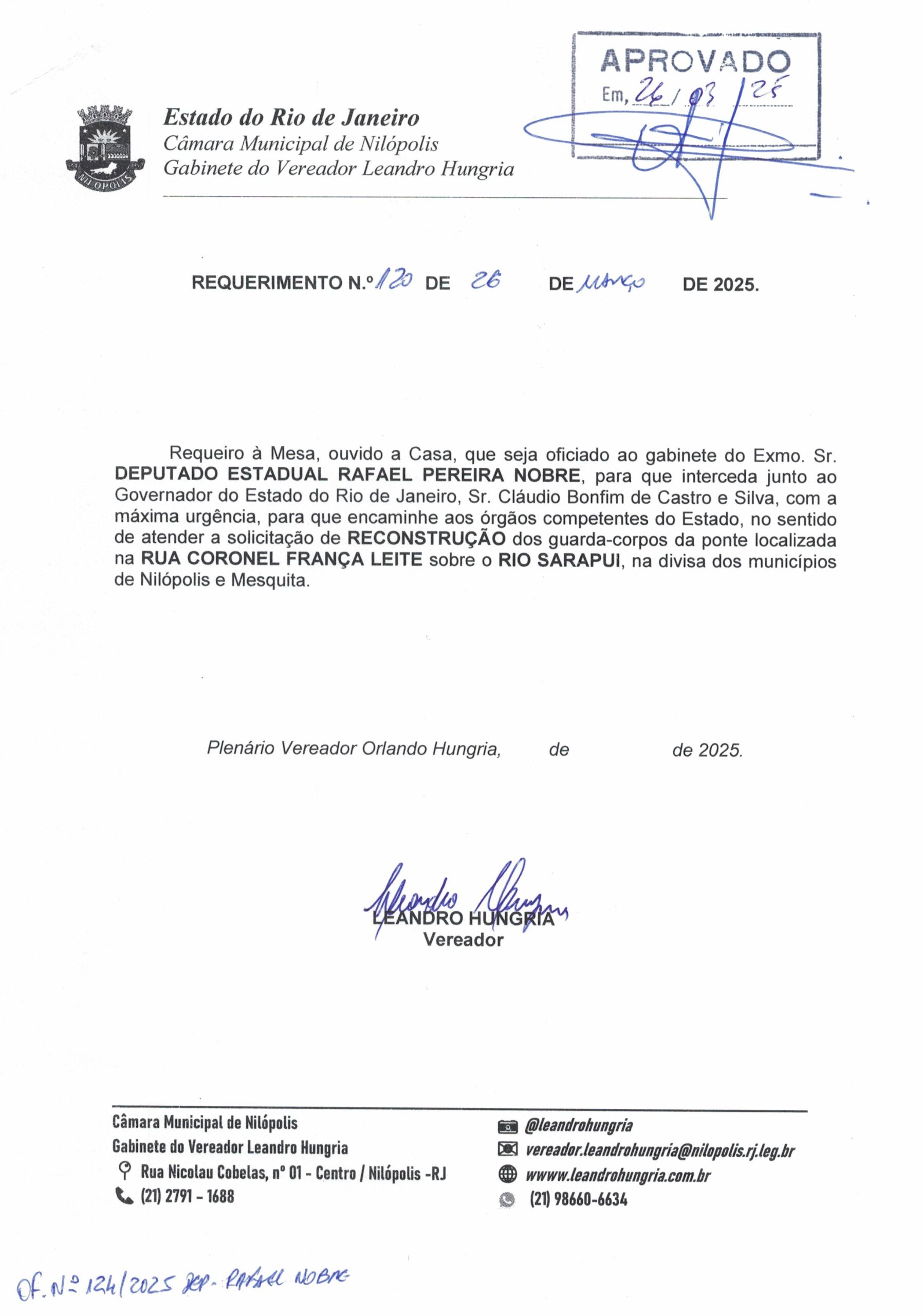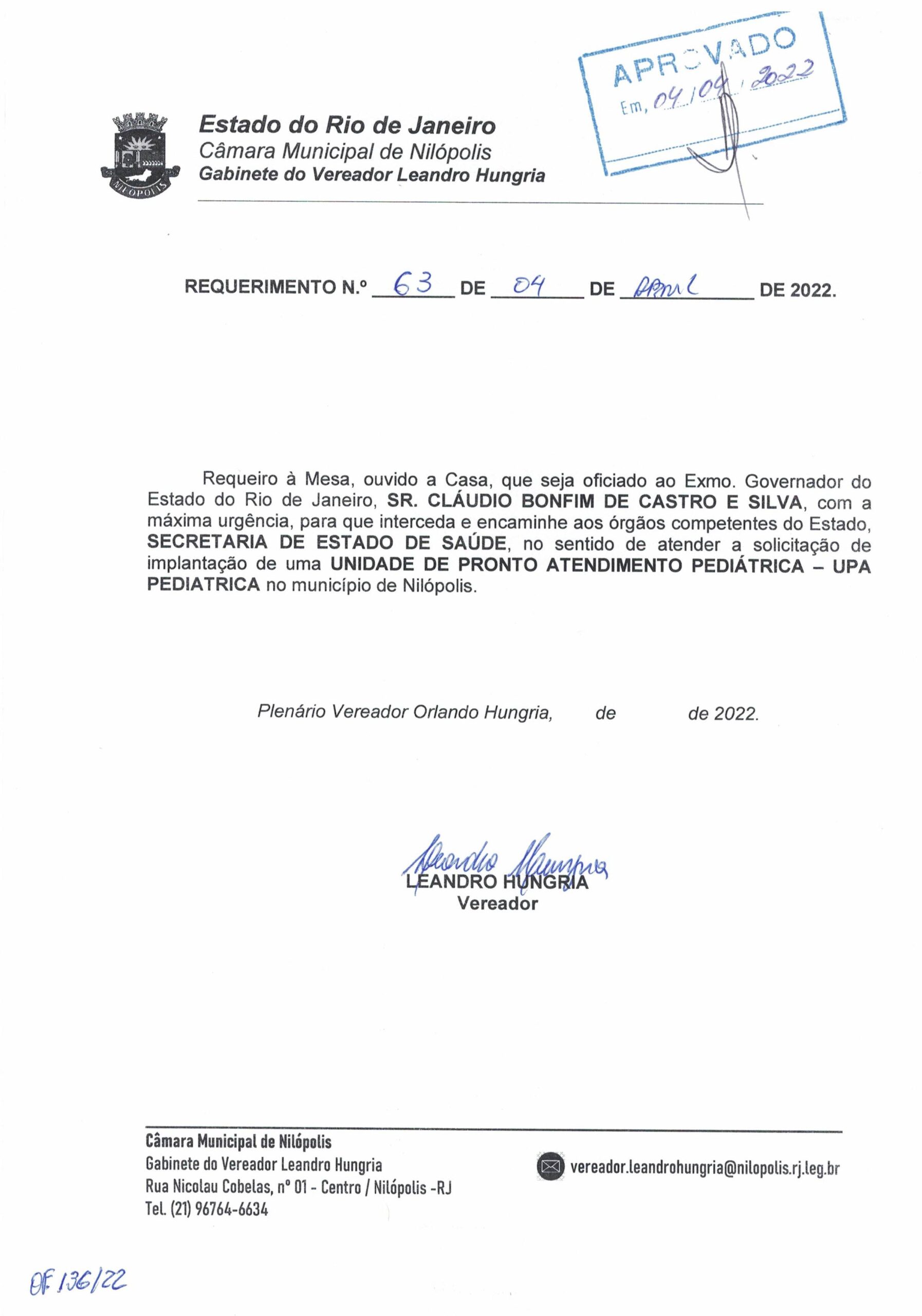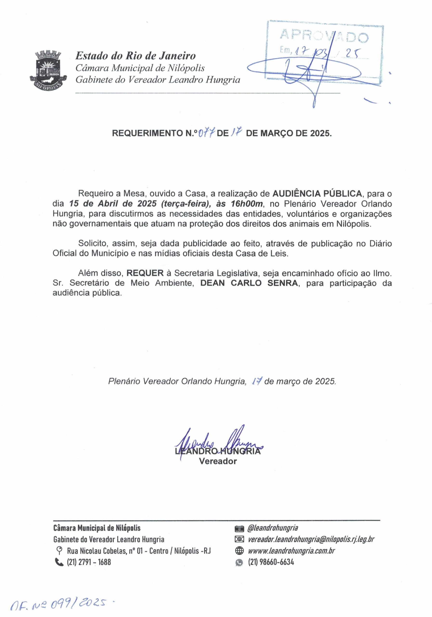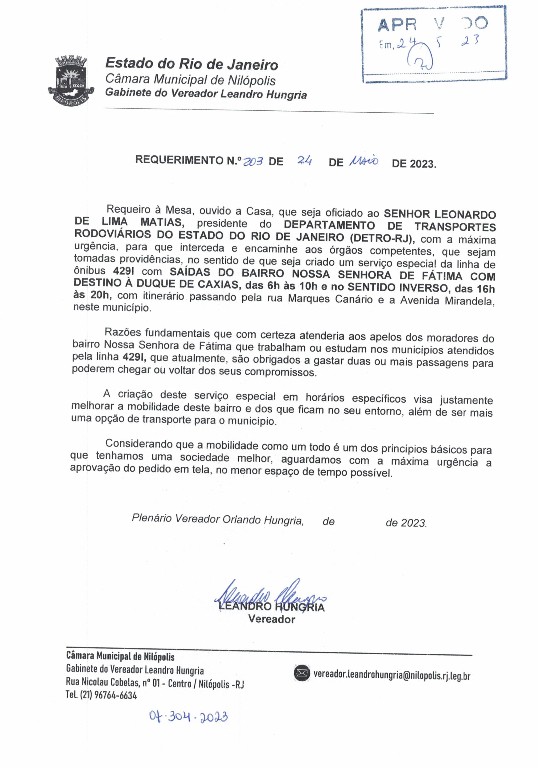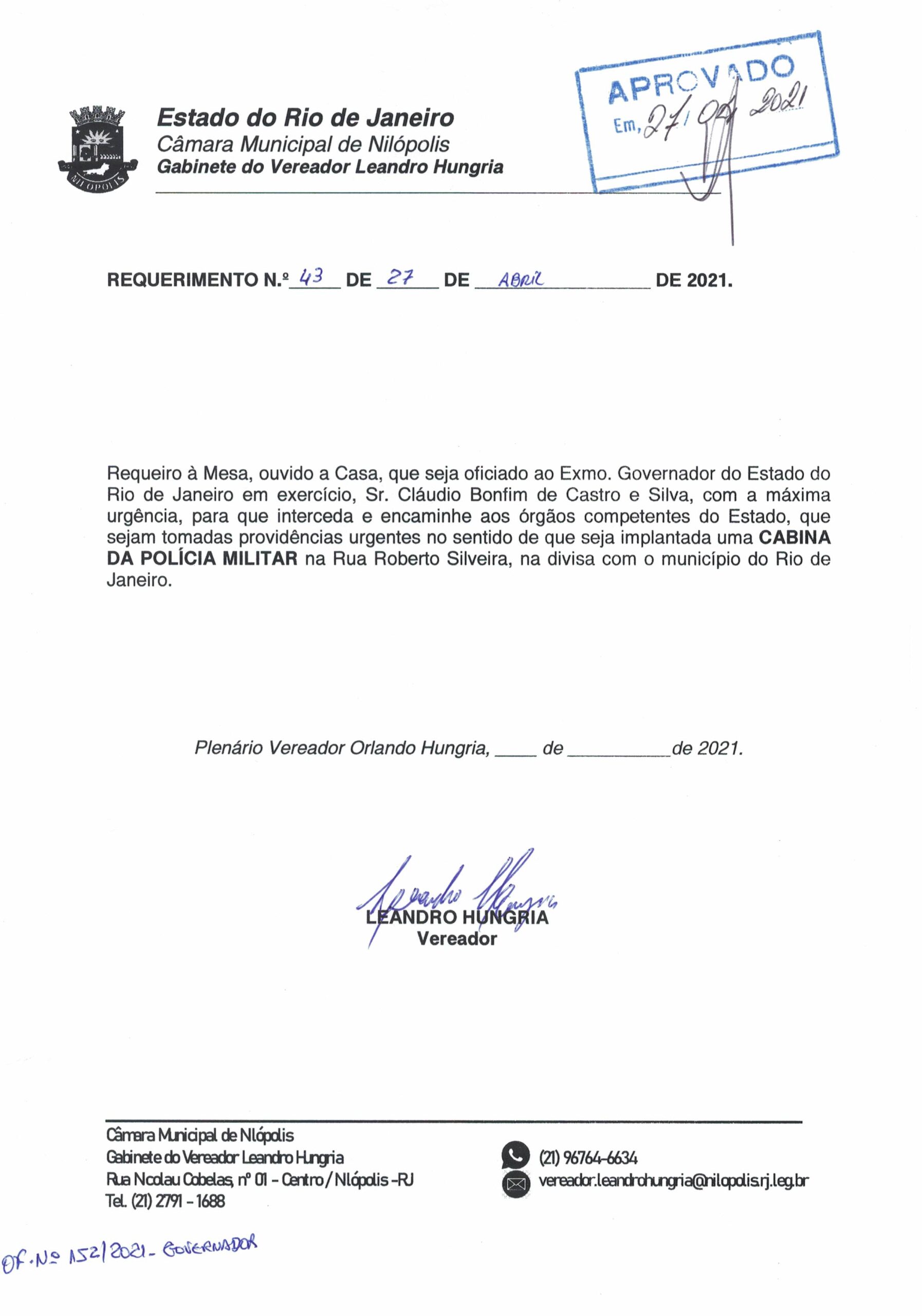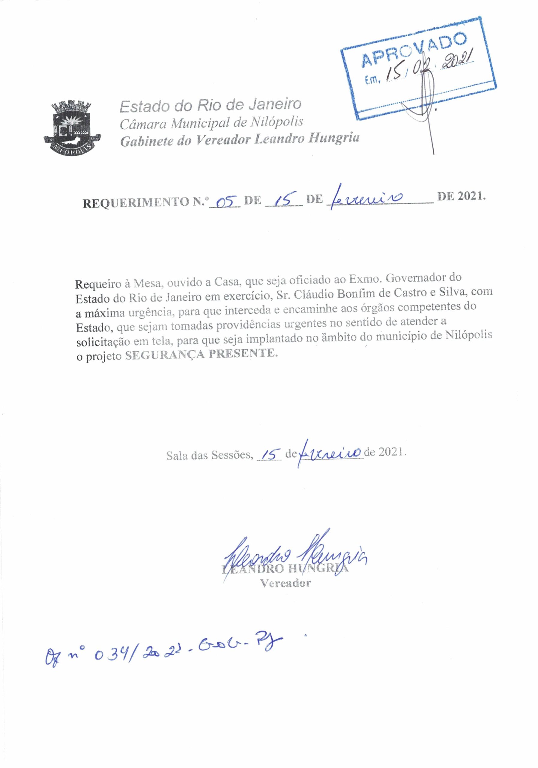 Abaixo apresentamos alguns dos Requerimentos apresentados pelo vereador Leandro Hungria desde o seu primeiro mandato. O arquivo com todos os Requerimentos pode ser encontrado na Câmara Municipal de Nilópolis.