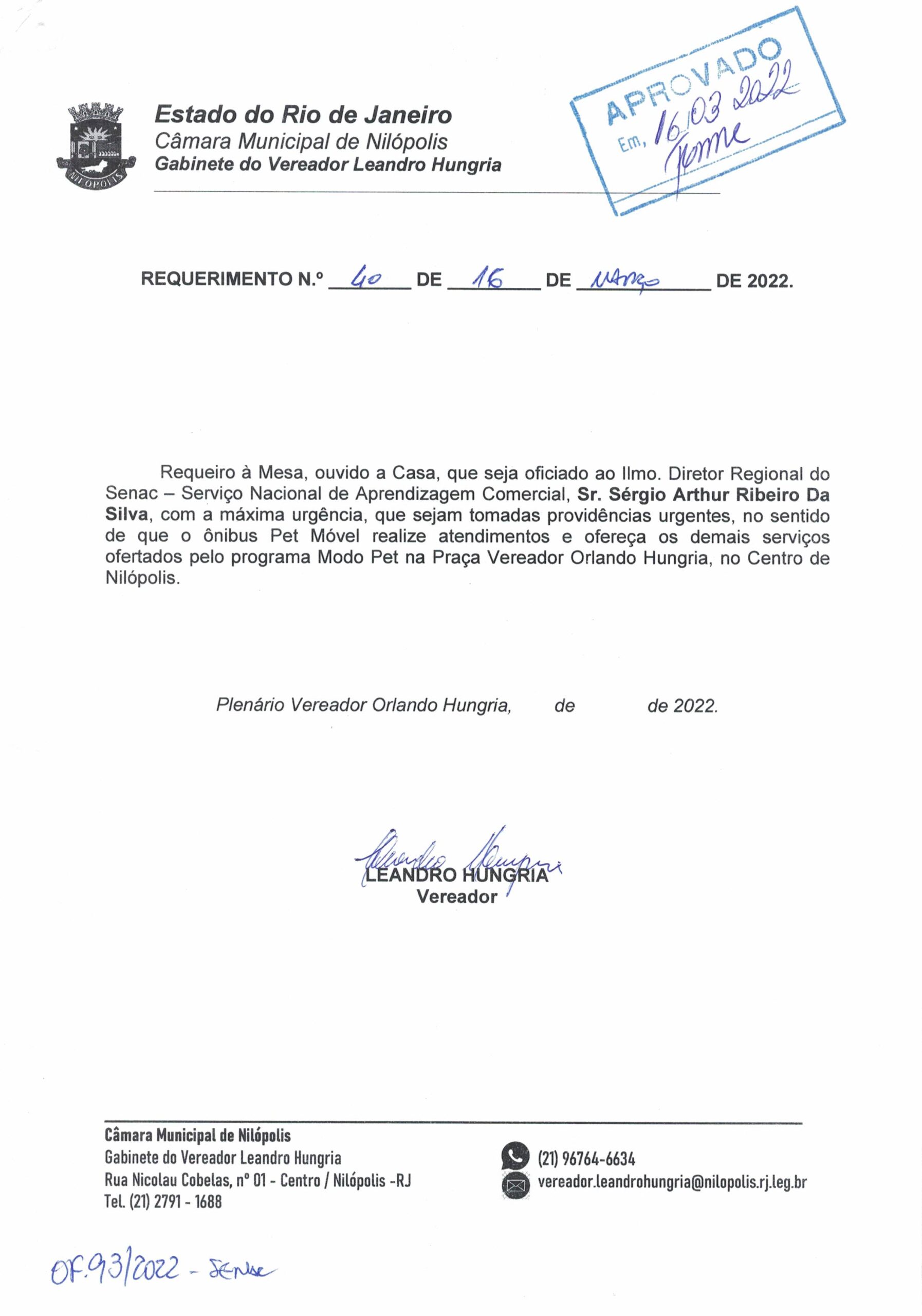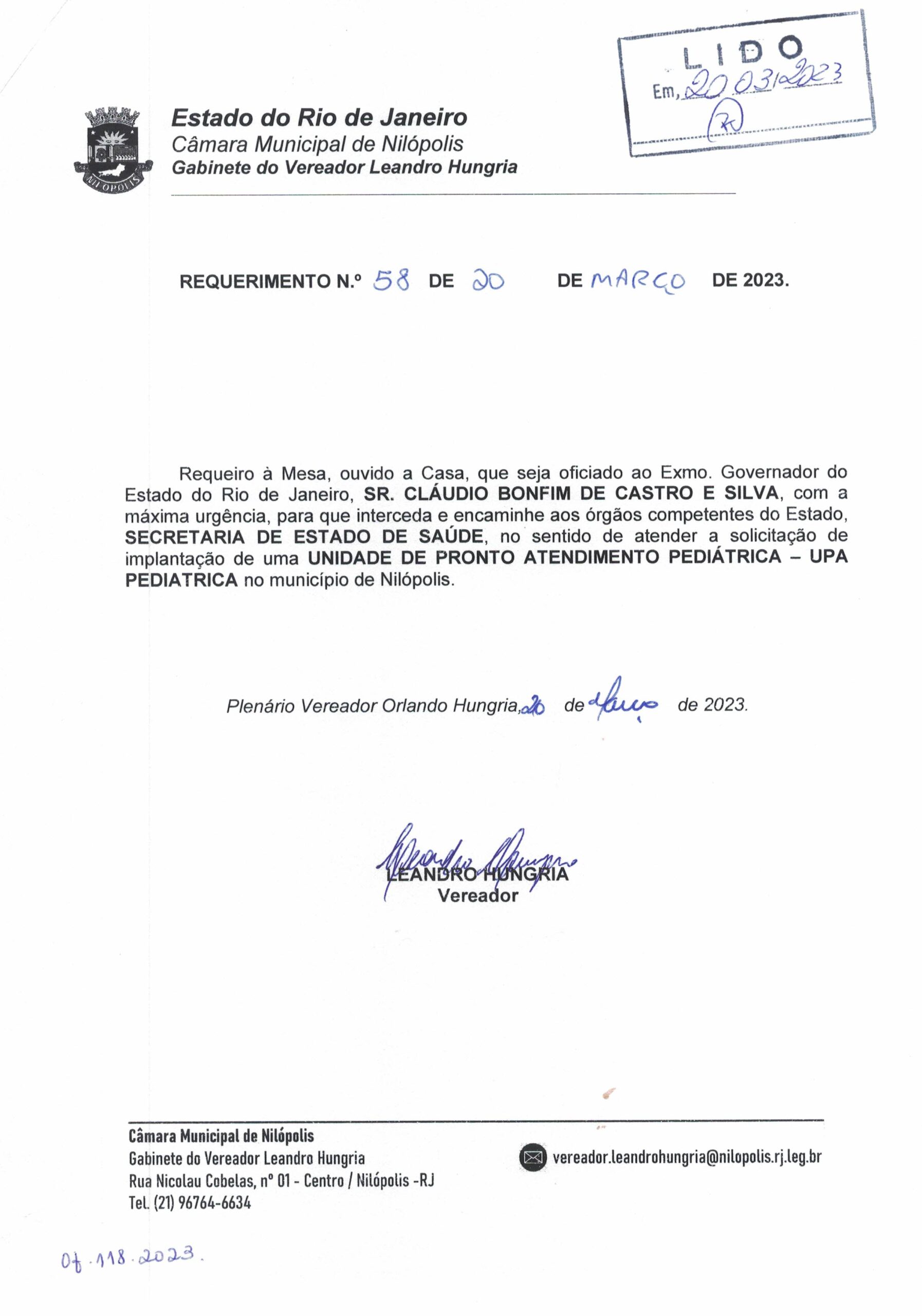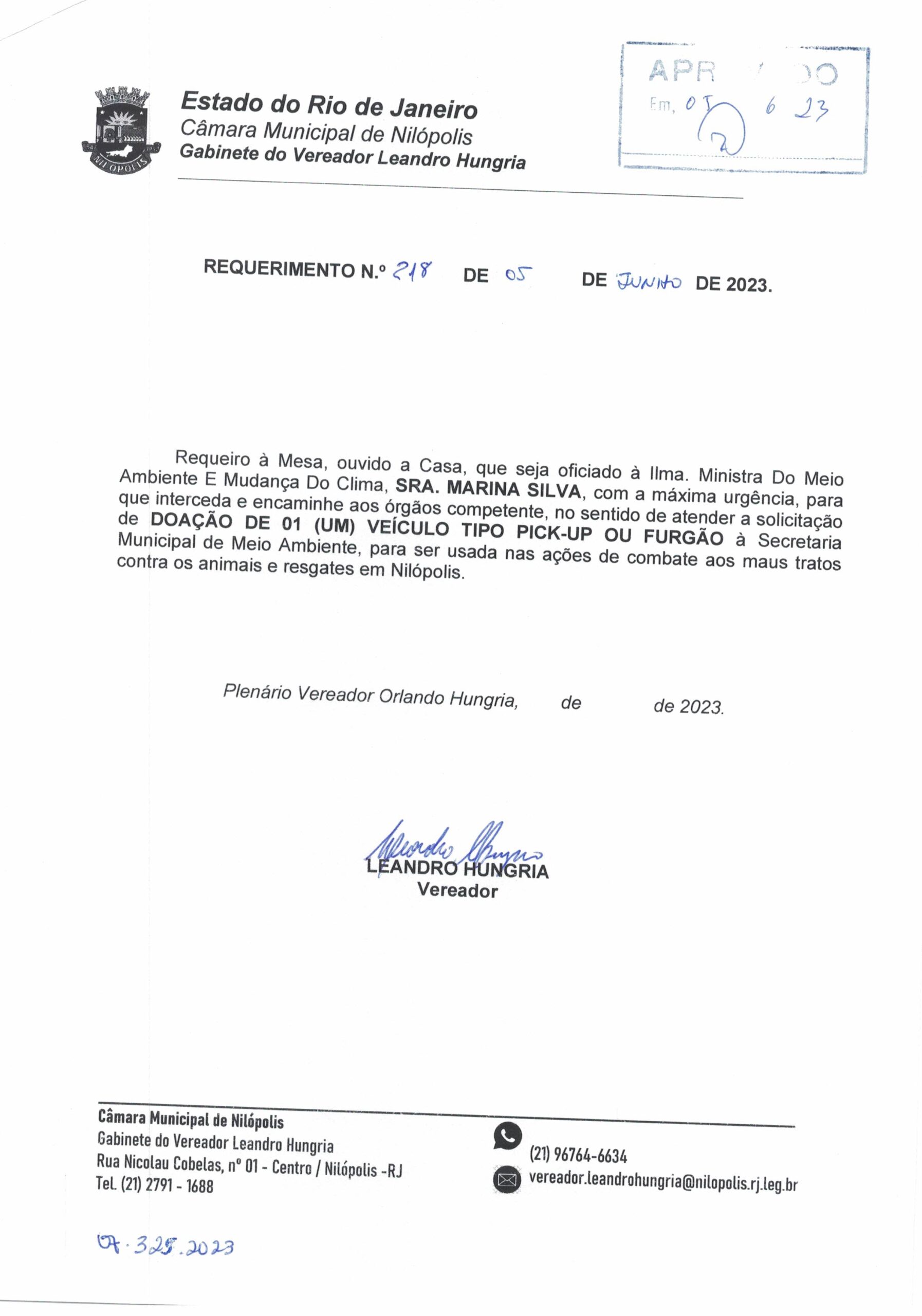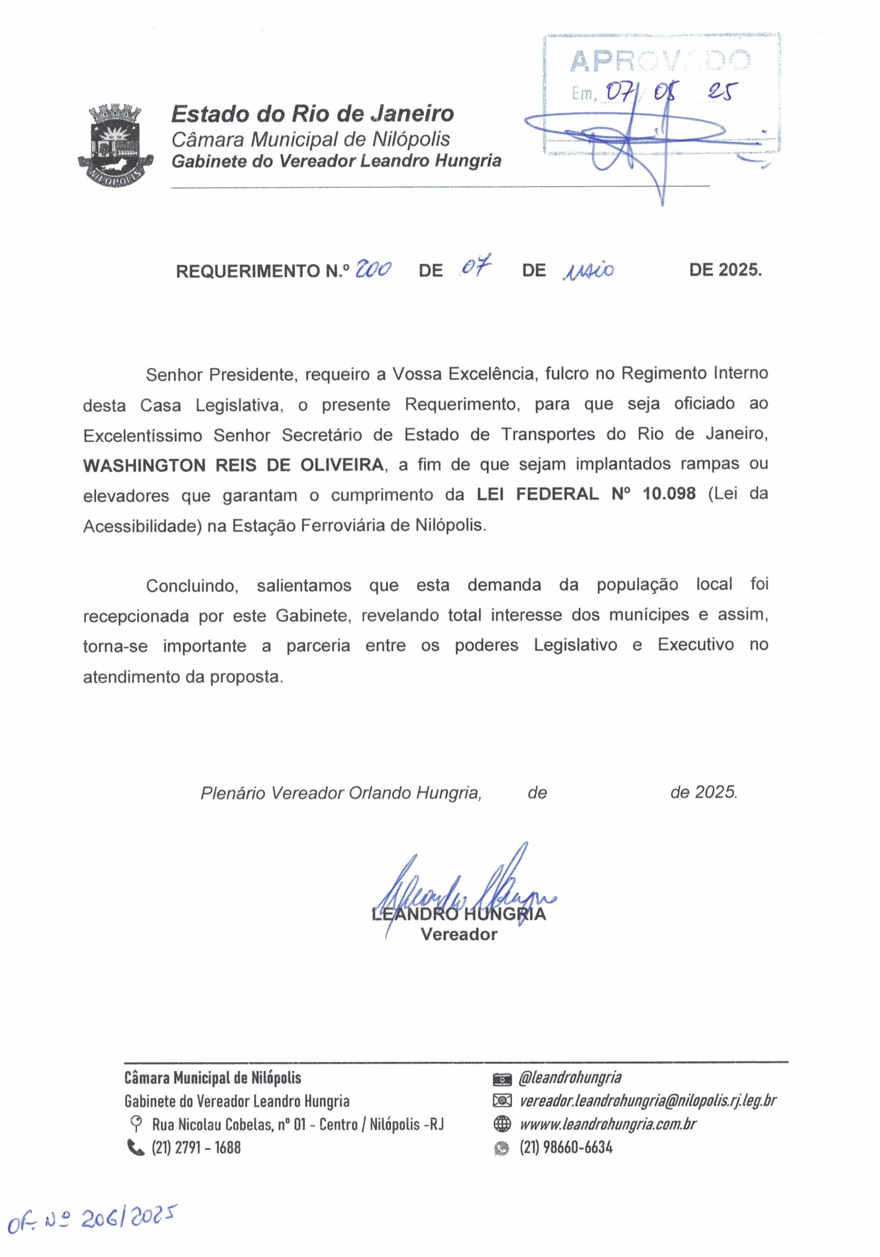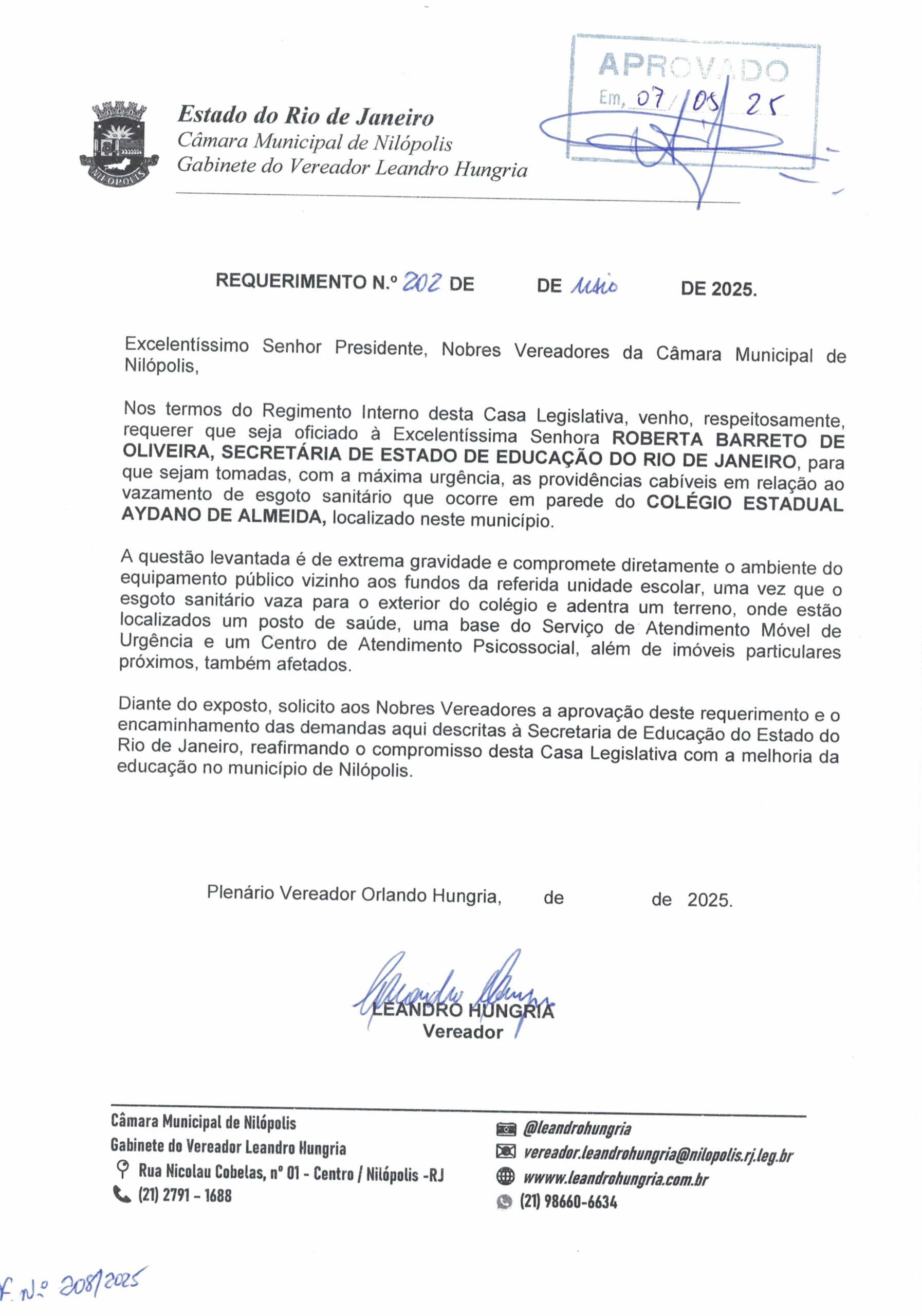 Abaixo apresentamos alguns dos Requerimentos apresentados pelo vereador Leandro Hungria desde o seu primeiro mandato. O arquivo com todos os Requerimentos pode ser encontrado na Câmara Municipal de Nilópolis.