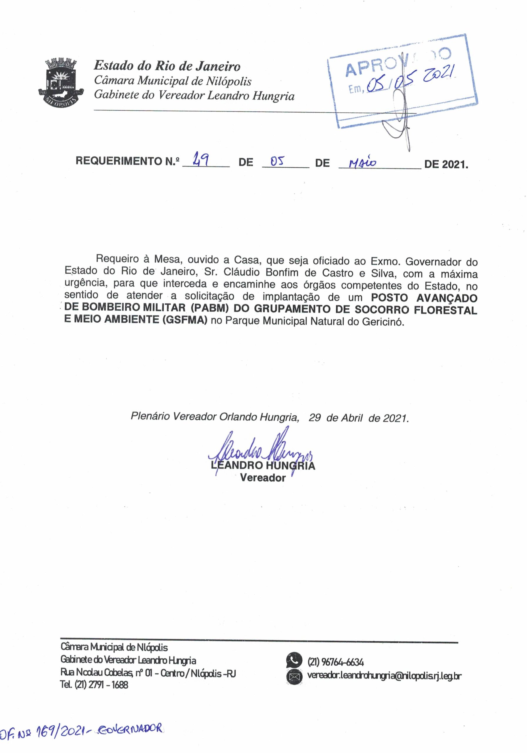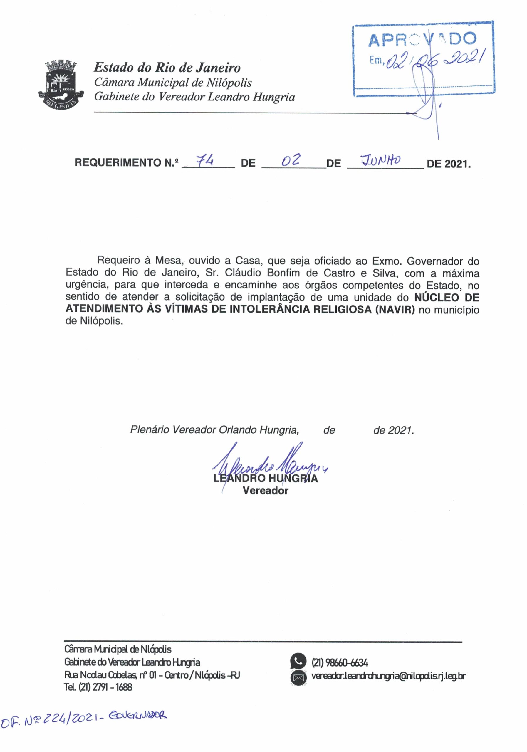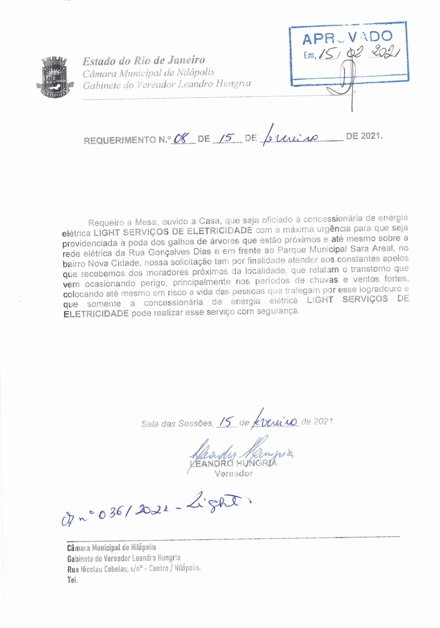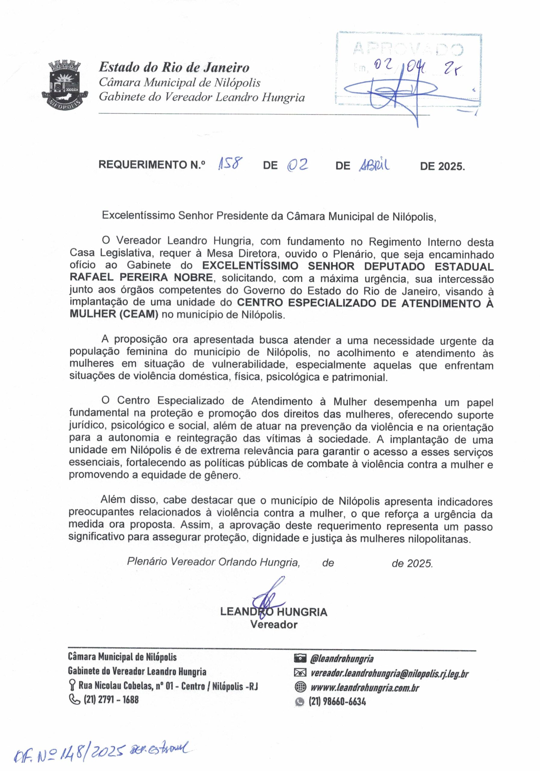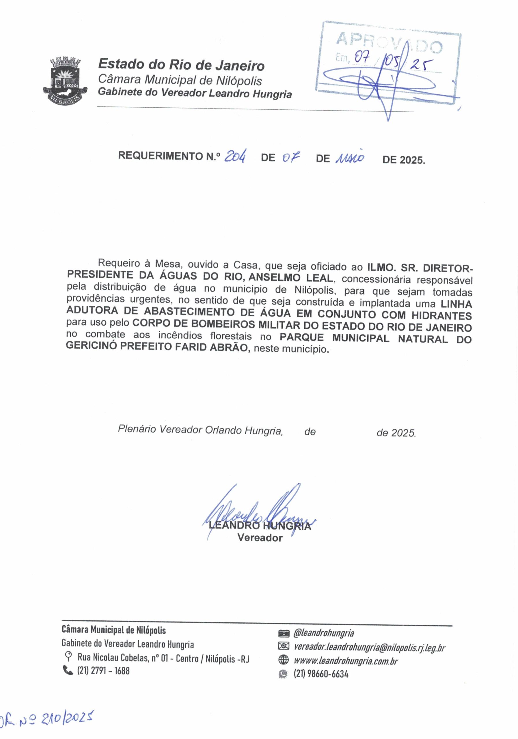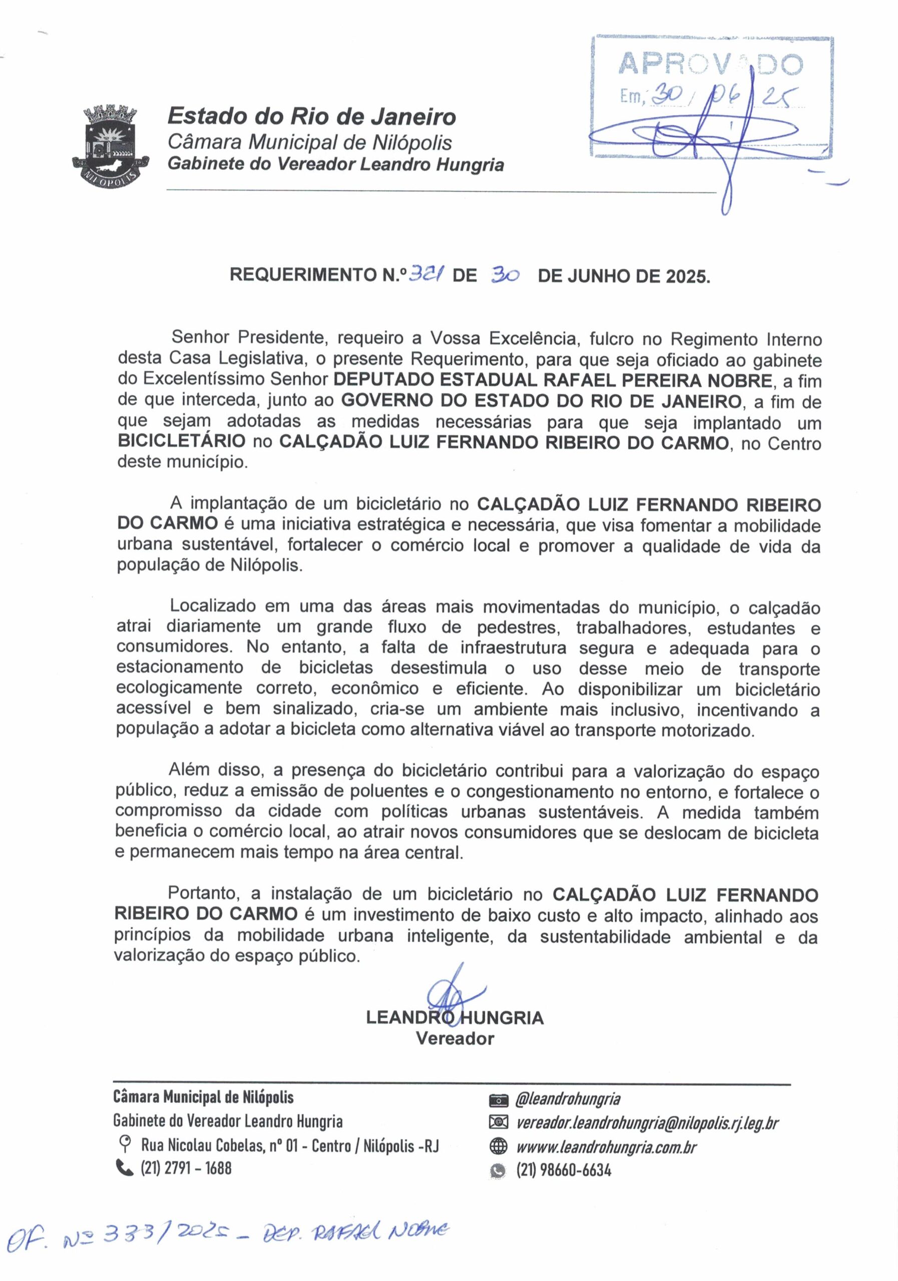 Abaixo apresentamos alguns dos Requerimentos apresentados pelo vereador Leandro Hungria desde o seu primeiro mandato. O arquivo com todos os Requerimentos pode ser encontrado na Câmara Municipal de Nilópolis.