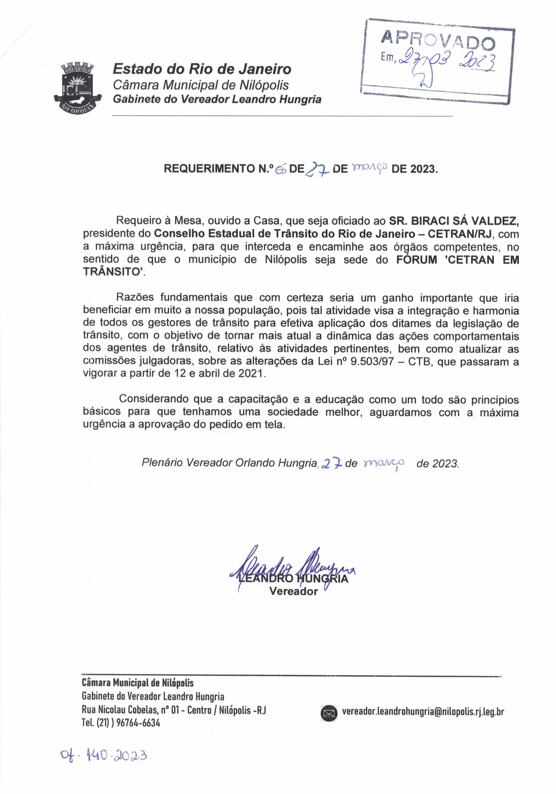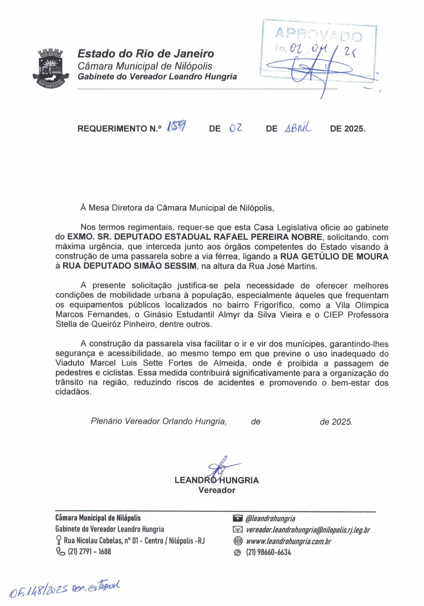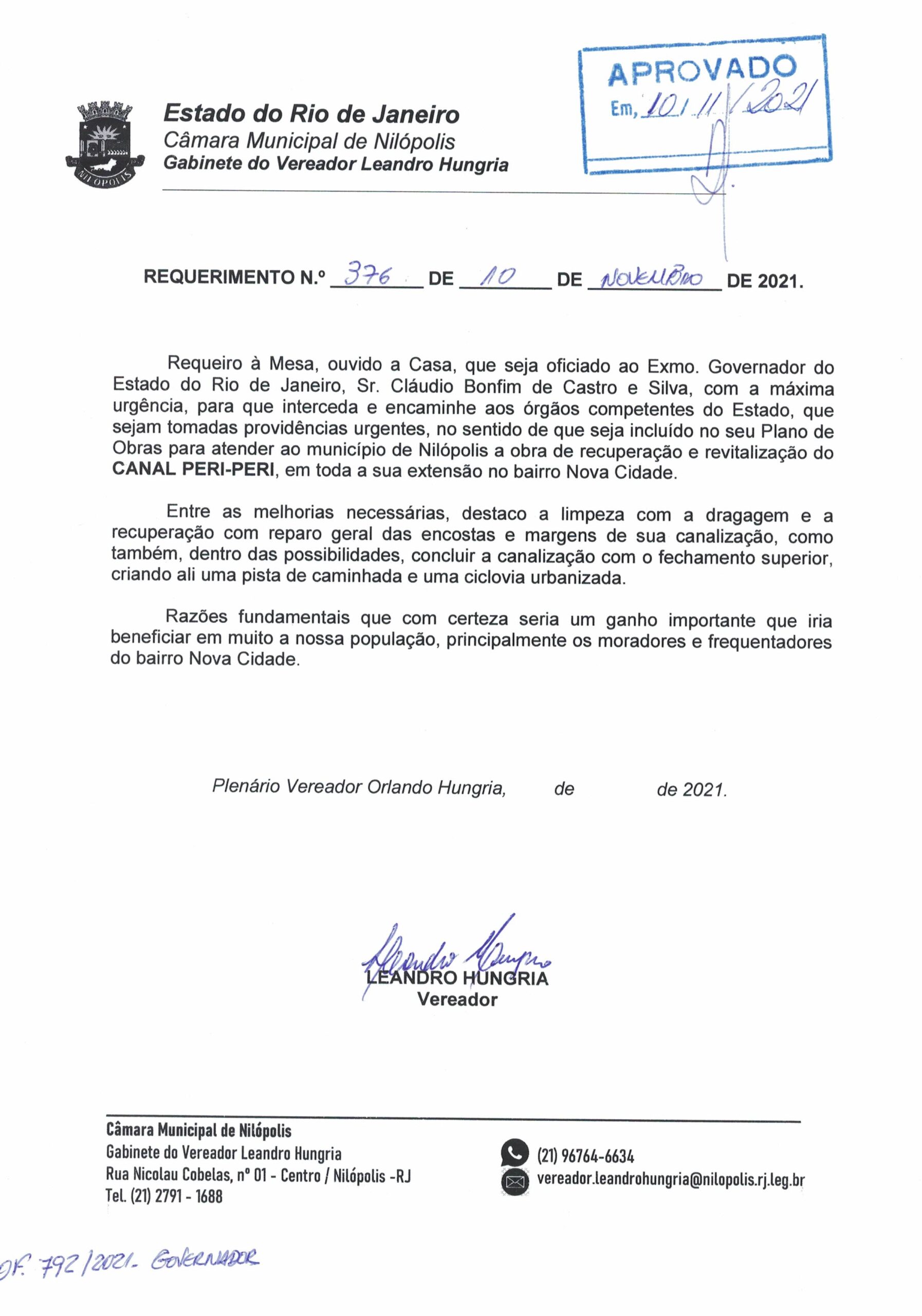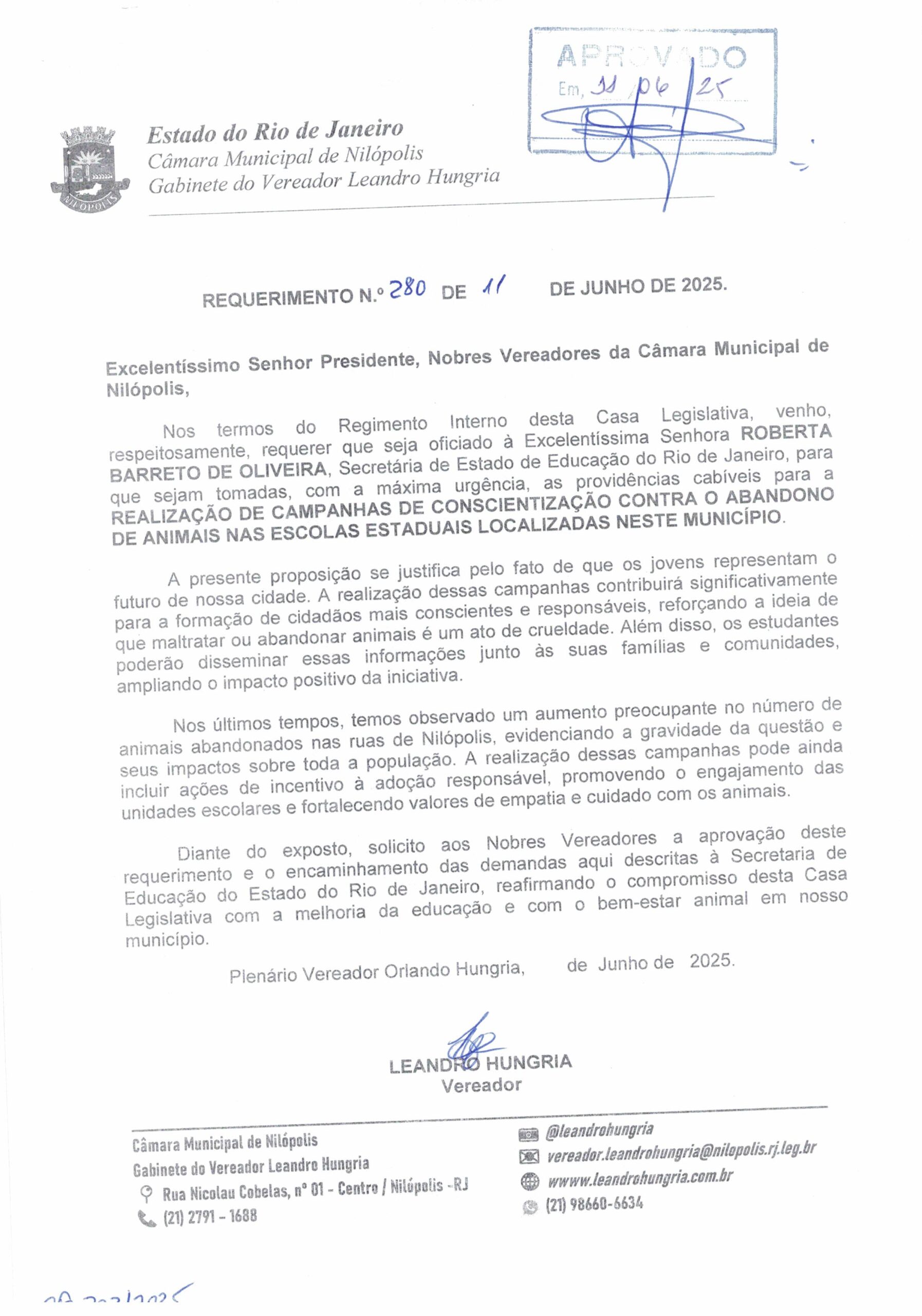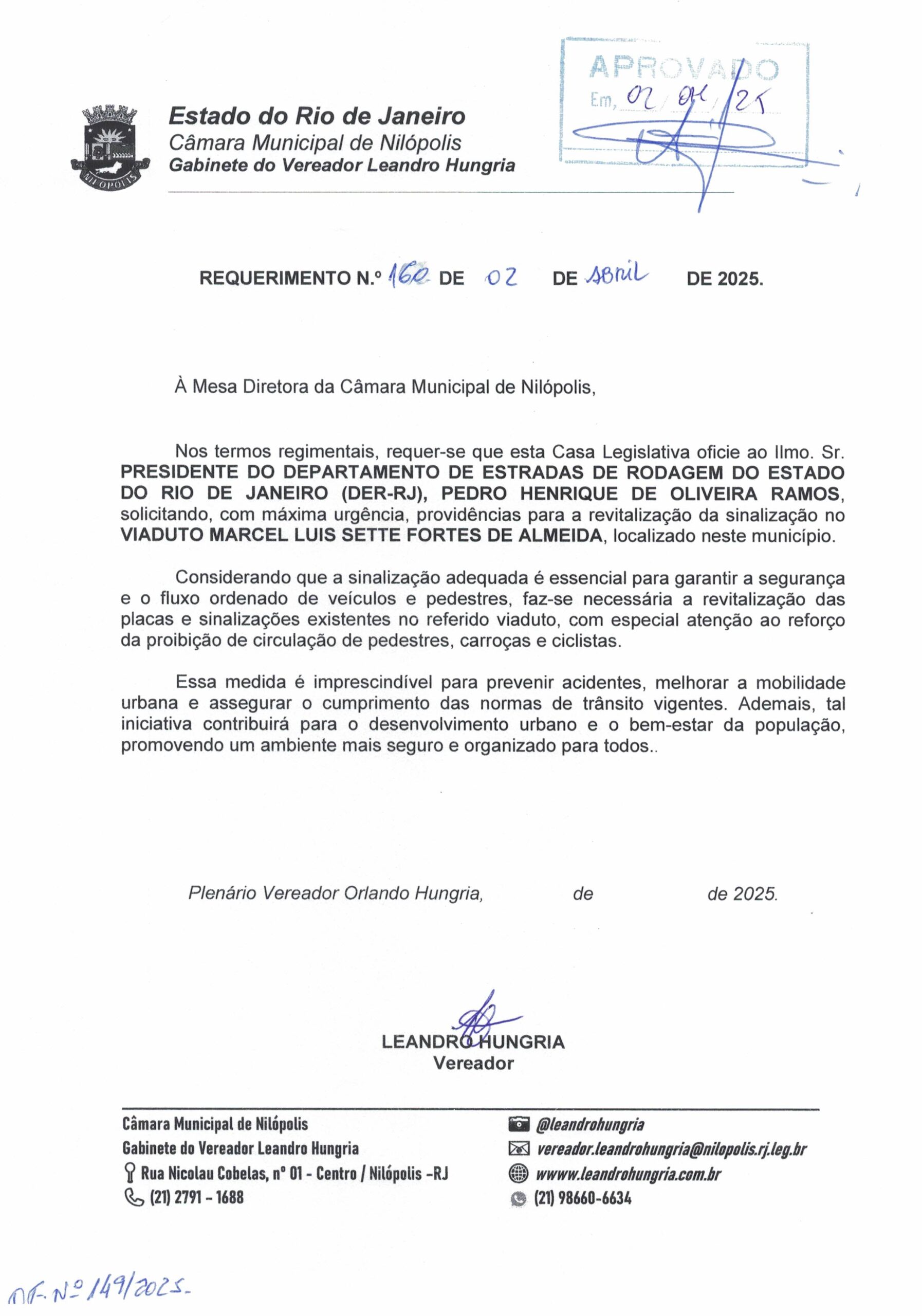 Abaixo apresentamos alguns dos Requerimentos apresentados pelo vereador Leandro Hungria desde o seu primeiro mandato. O arquivo com todos os Requerimentos pode ser encontrado na Câmara Municipal de Nilópolis.