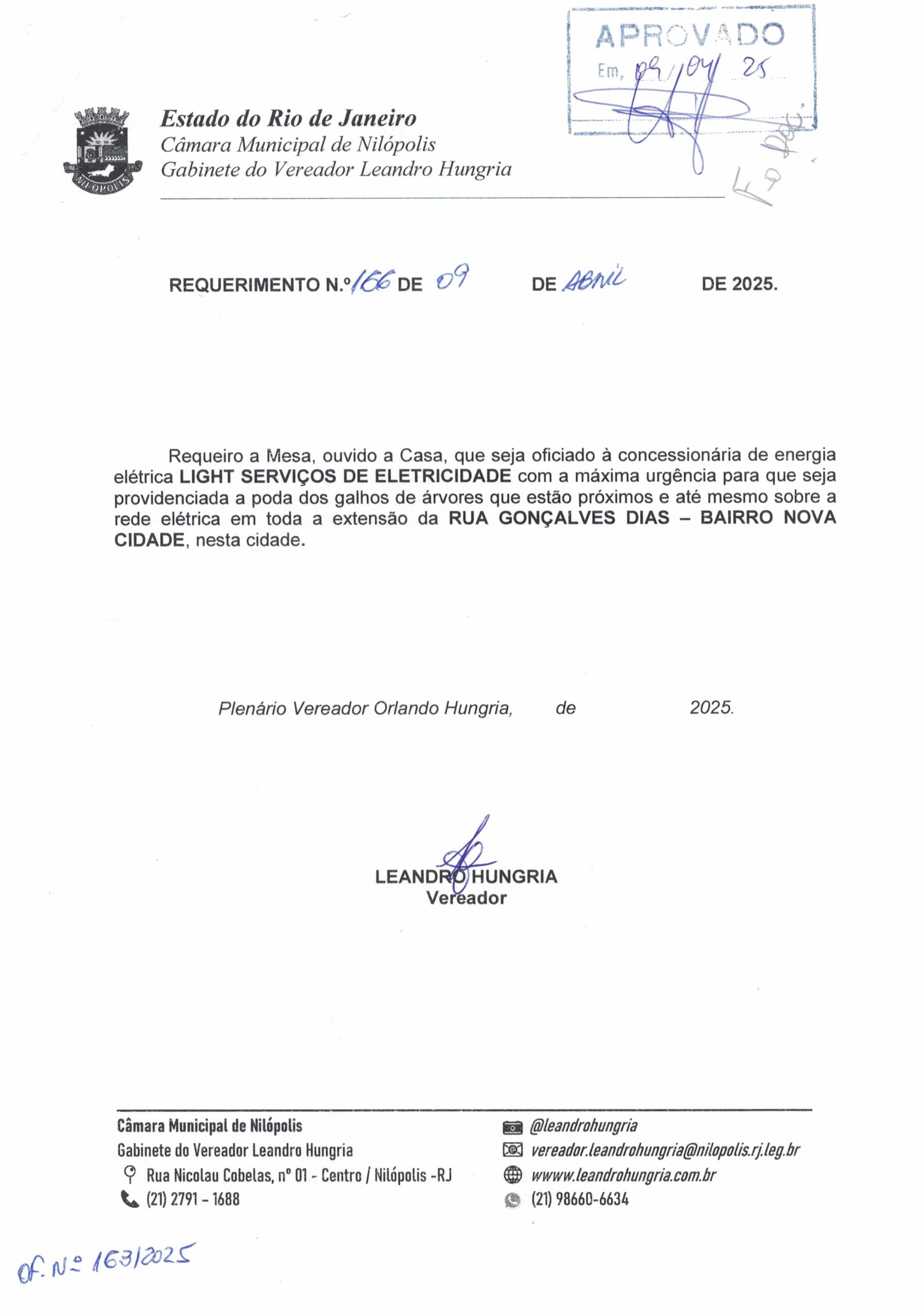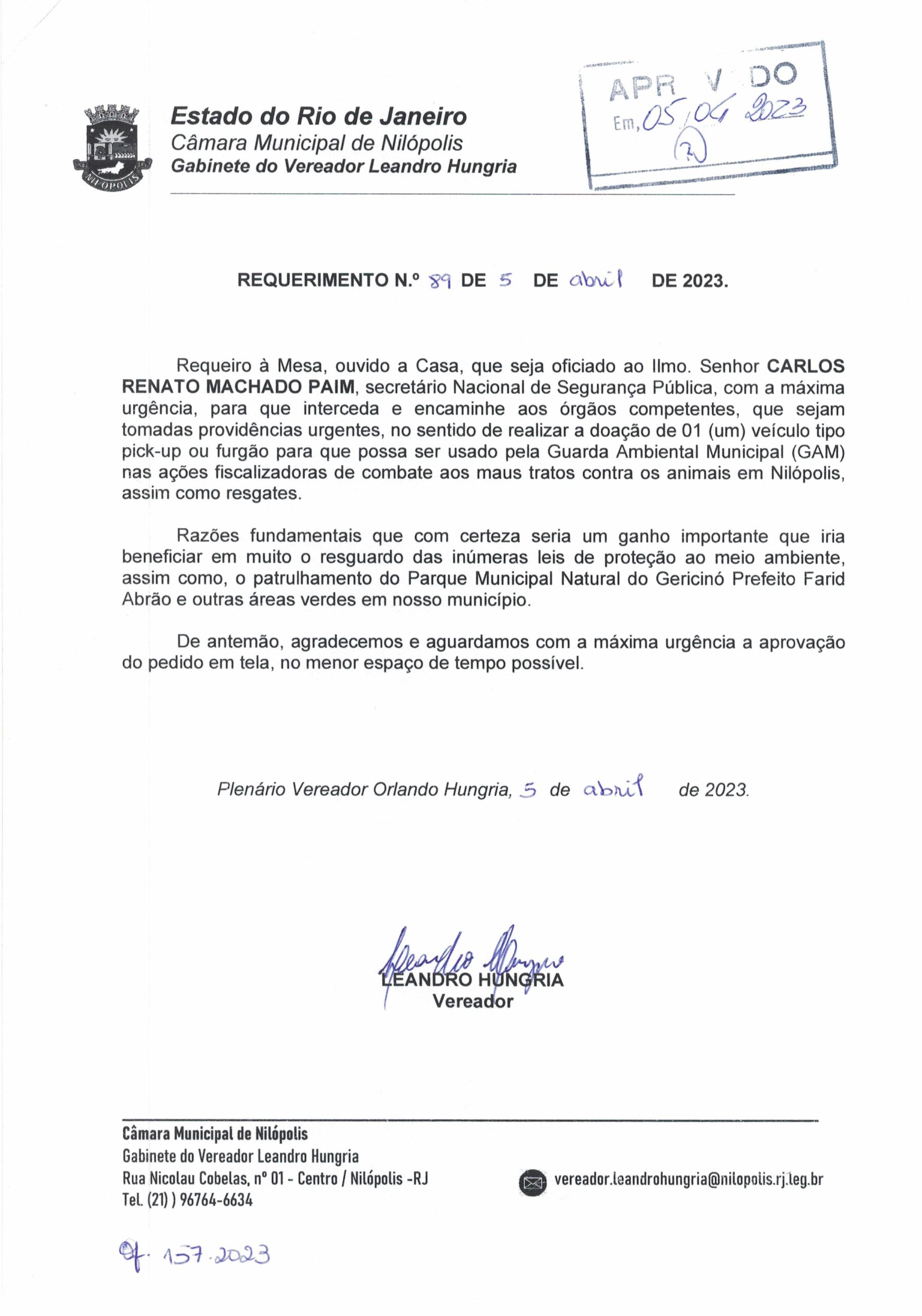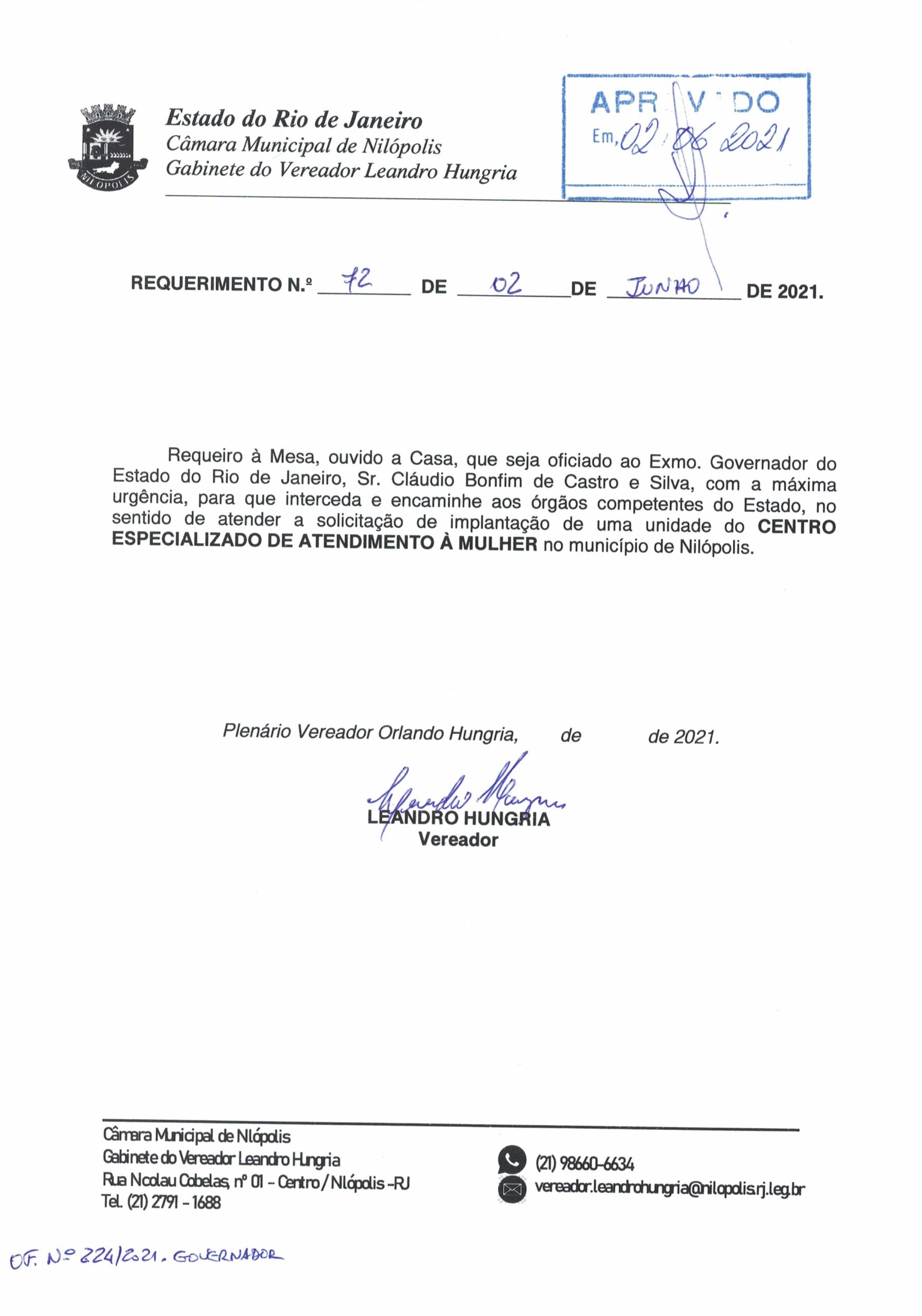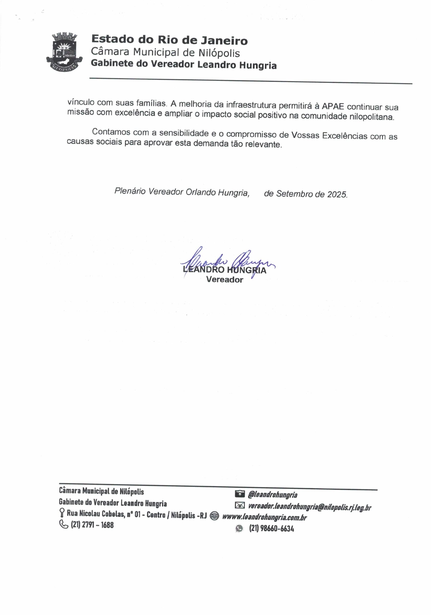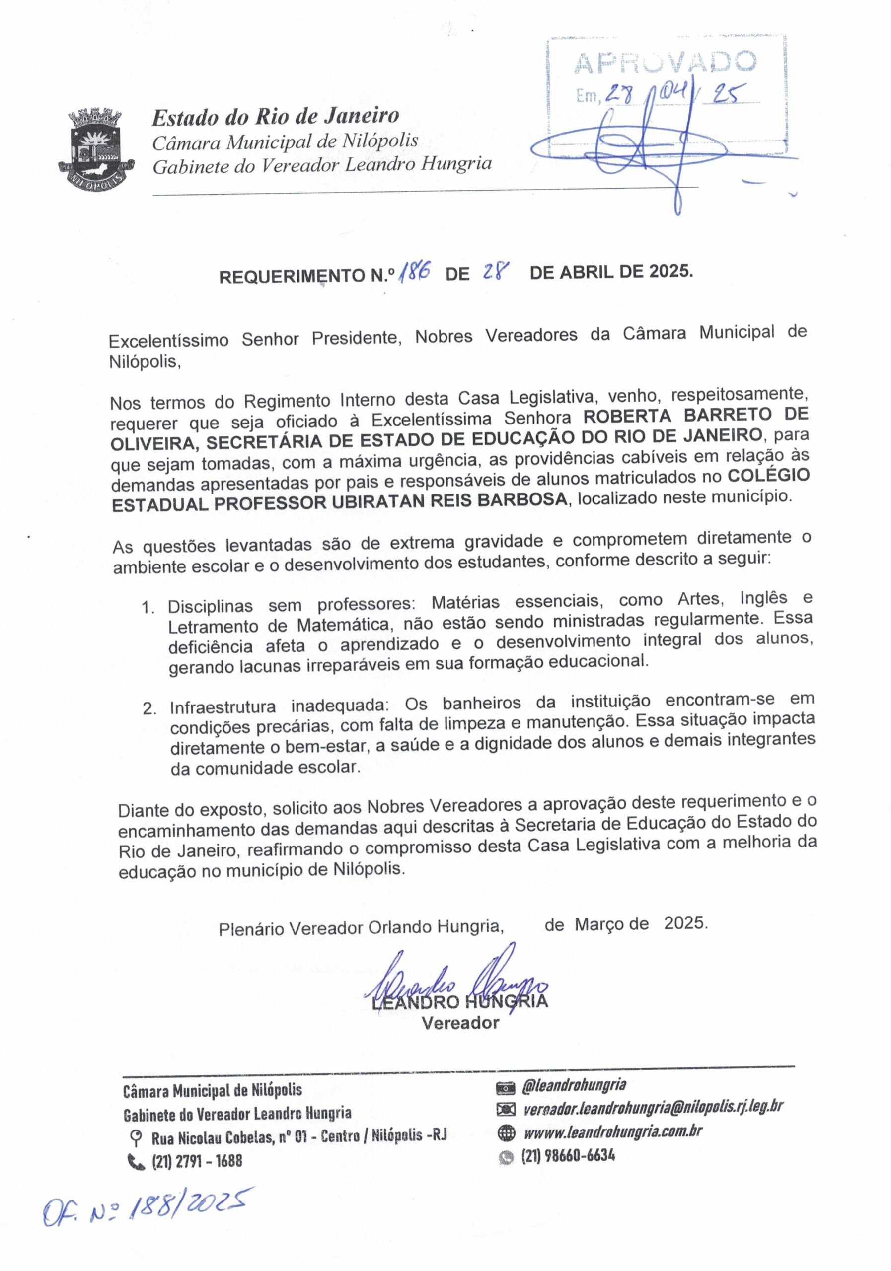Abaixo apresentamos alguns dos Requerimentos apresentados pelo vereador Leandro Hungria desde o seu primeiro mandato. O arquivo com todos os Requerimentos pode ser encontrado na Câmara Municipal de Nilópolis.