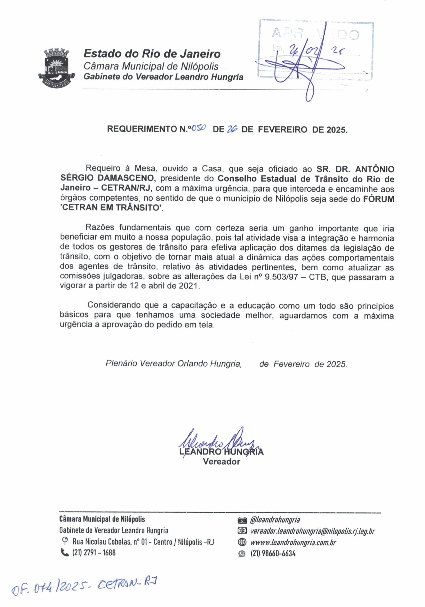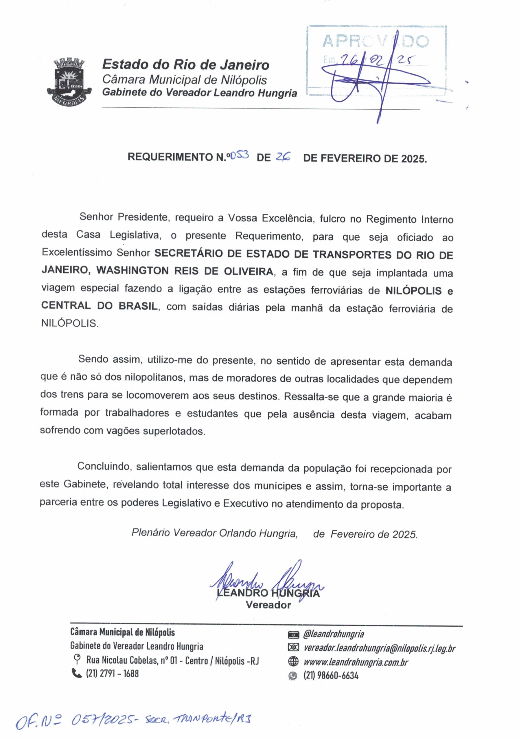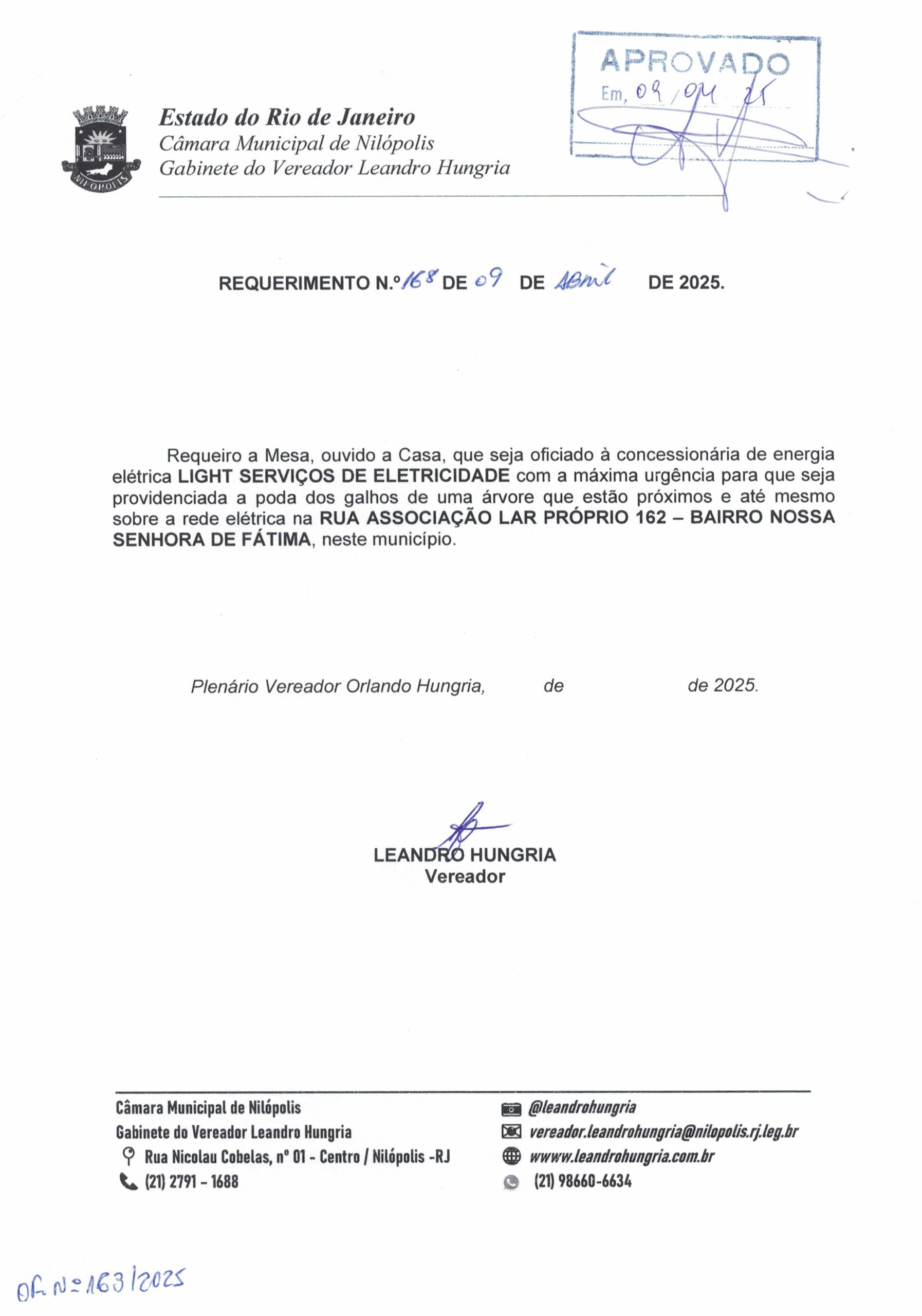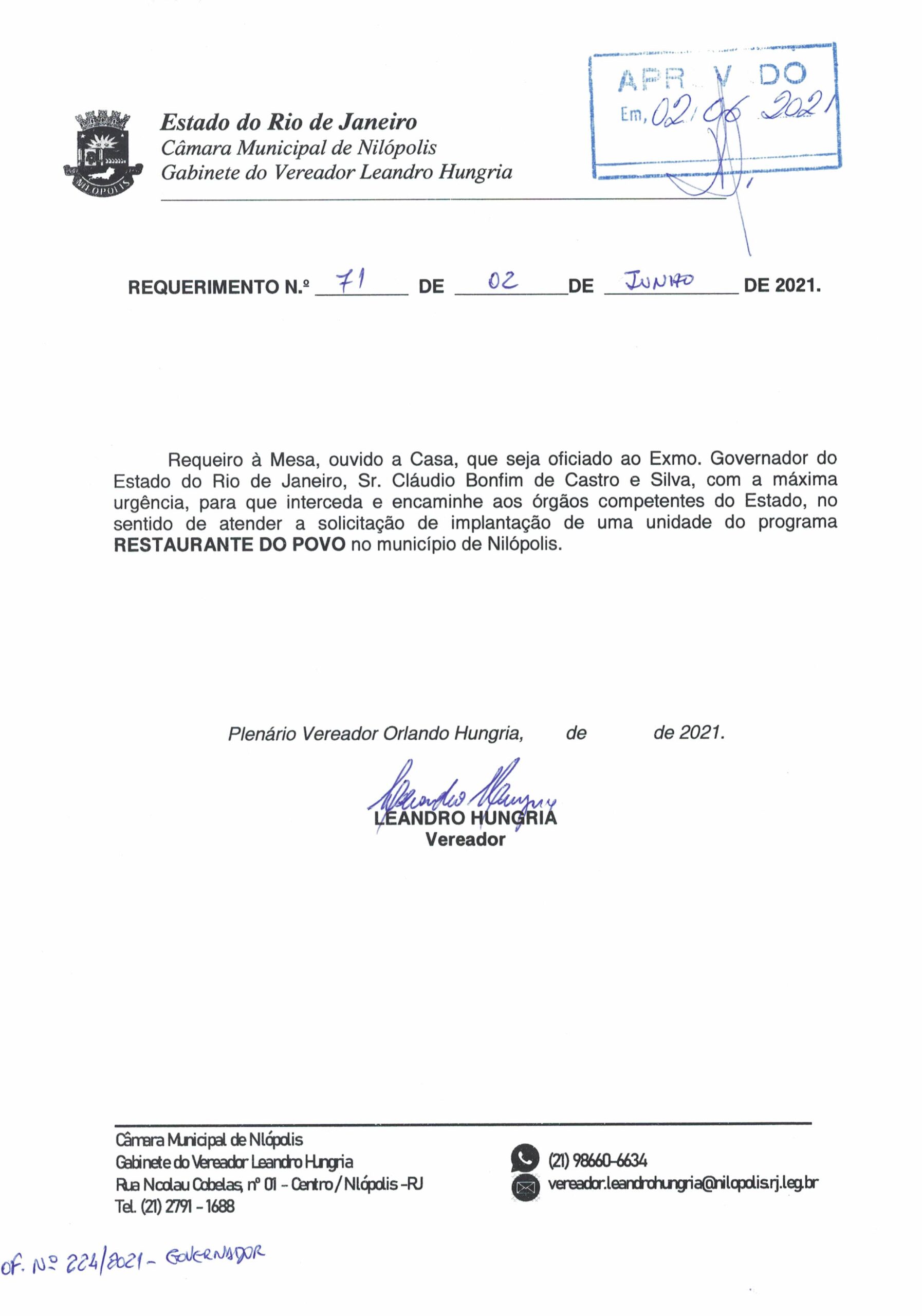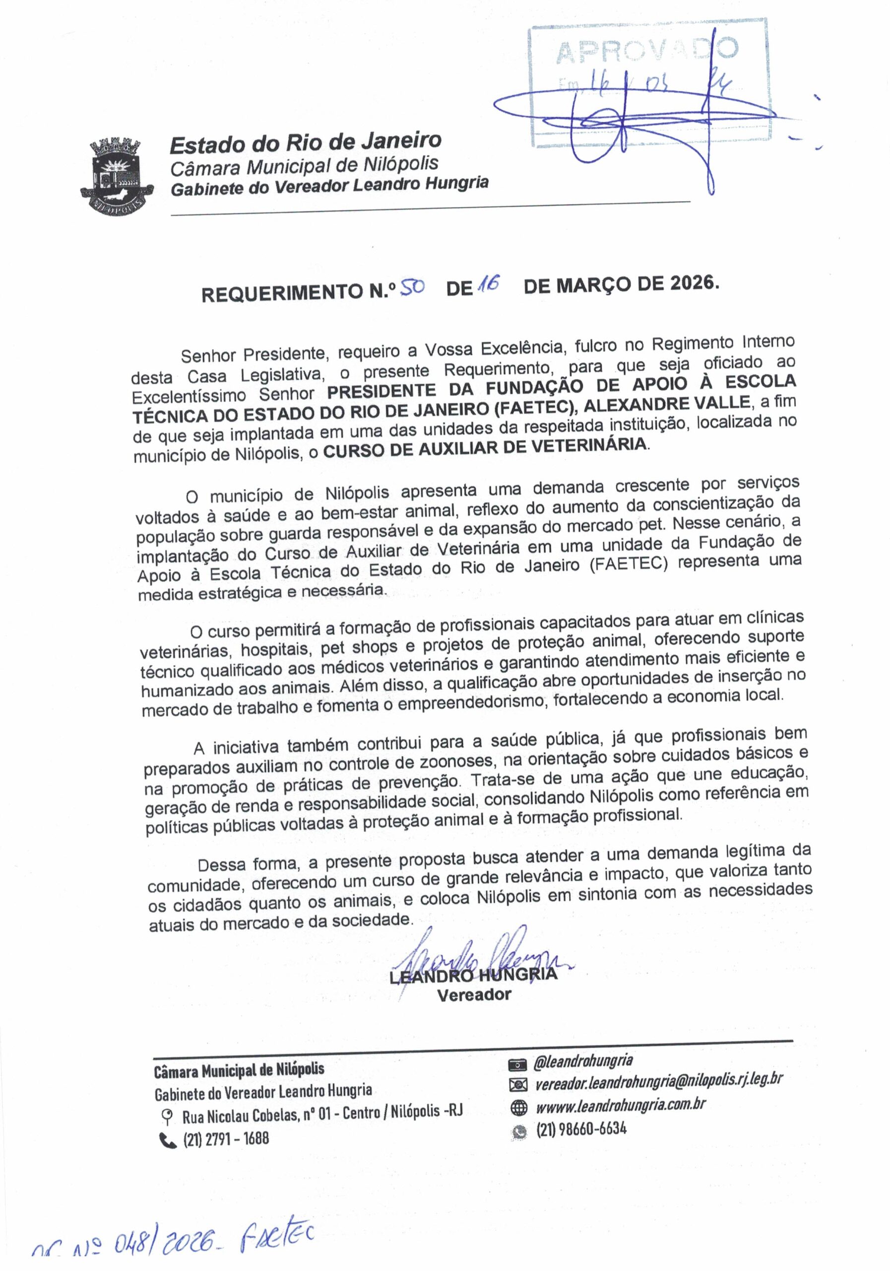 Abaixo apresentamos alguns dos Requerimentos apresentados pelo vereador Leandro Hungria desde o seu primeiro mandato. O arquivo com todos os Requerimentos pode ser encontrado na Câmara Municipal de Nilópolis.