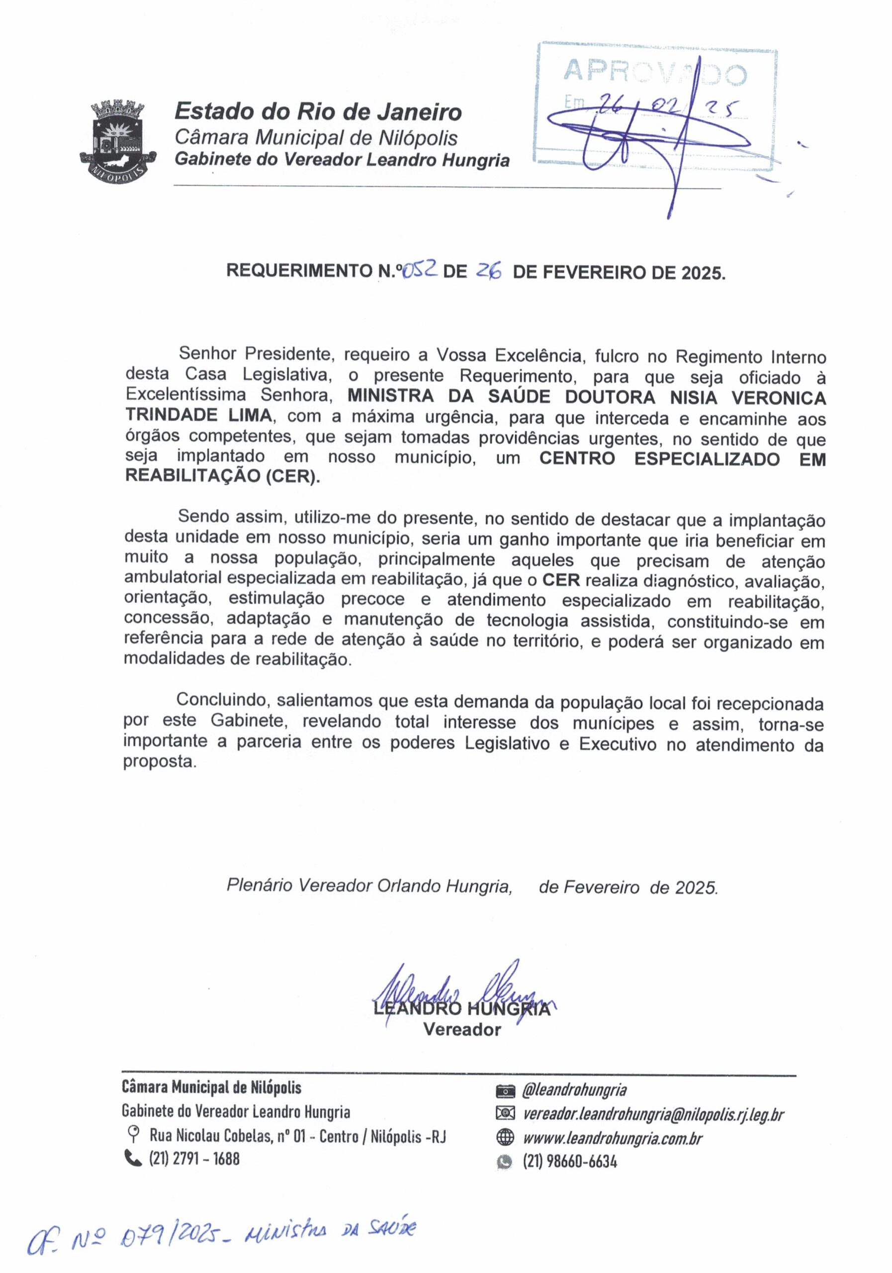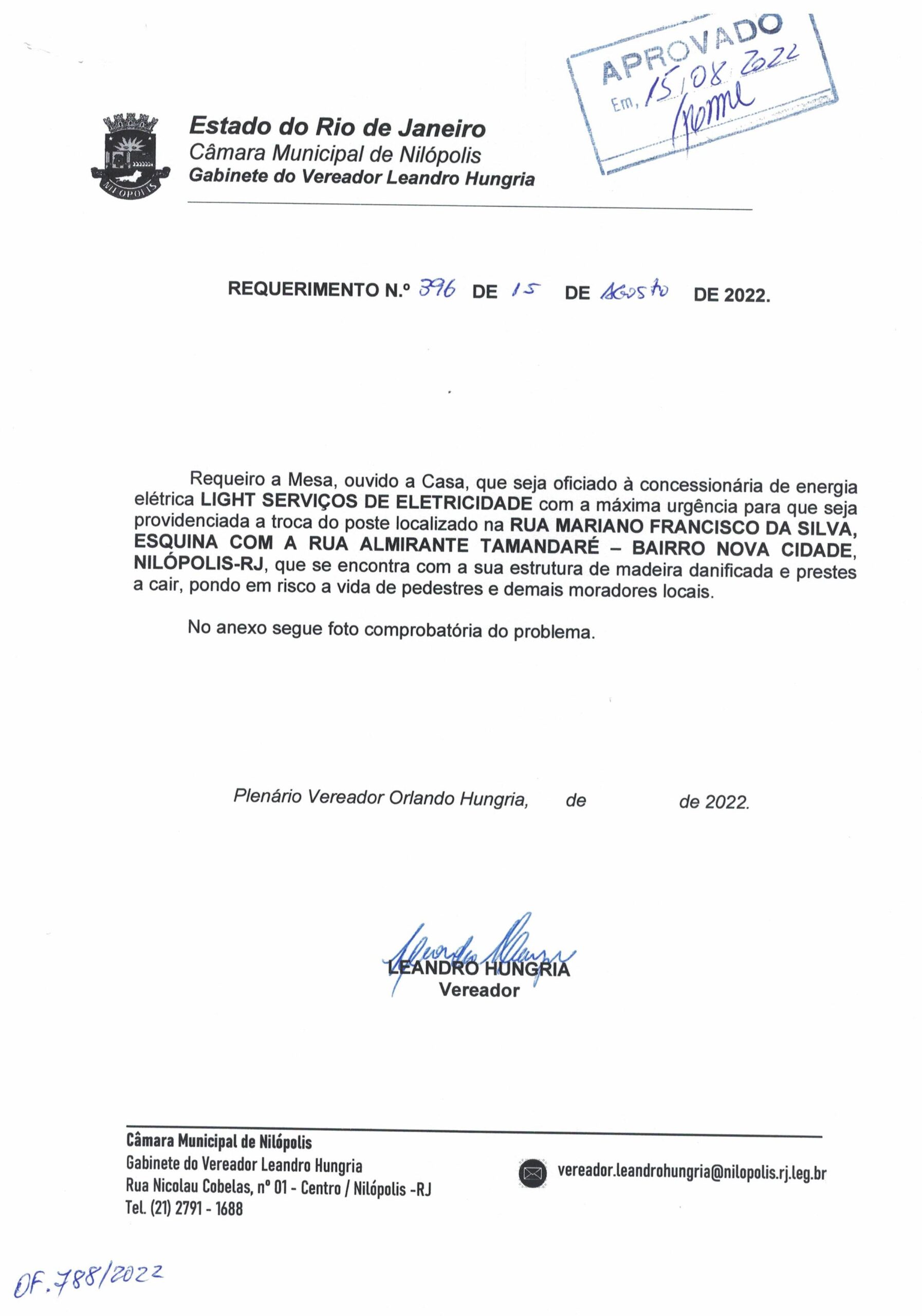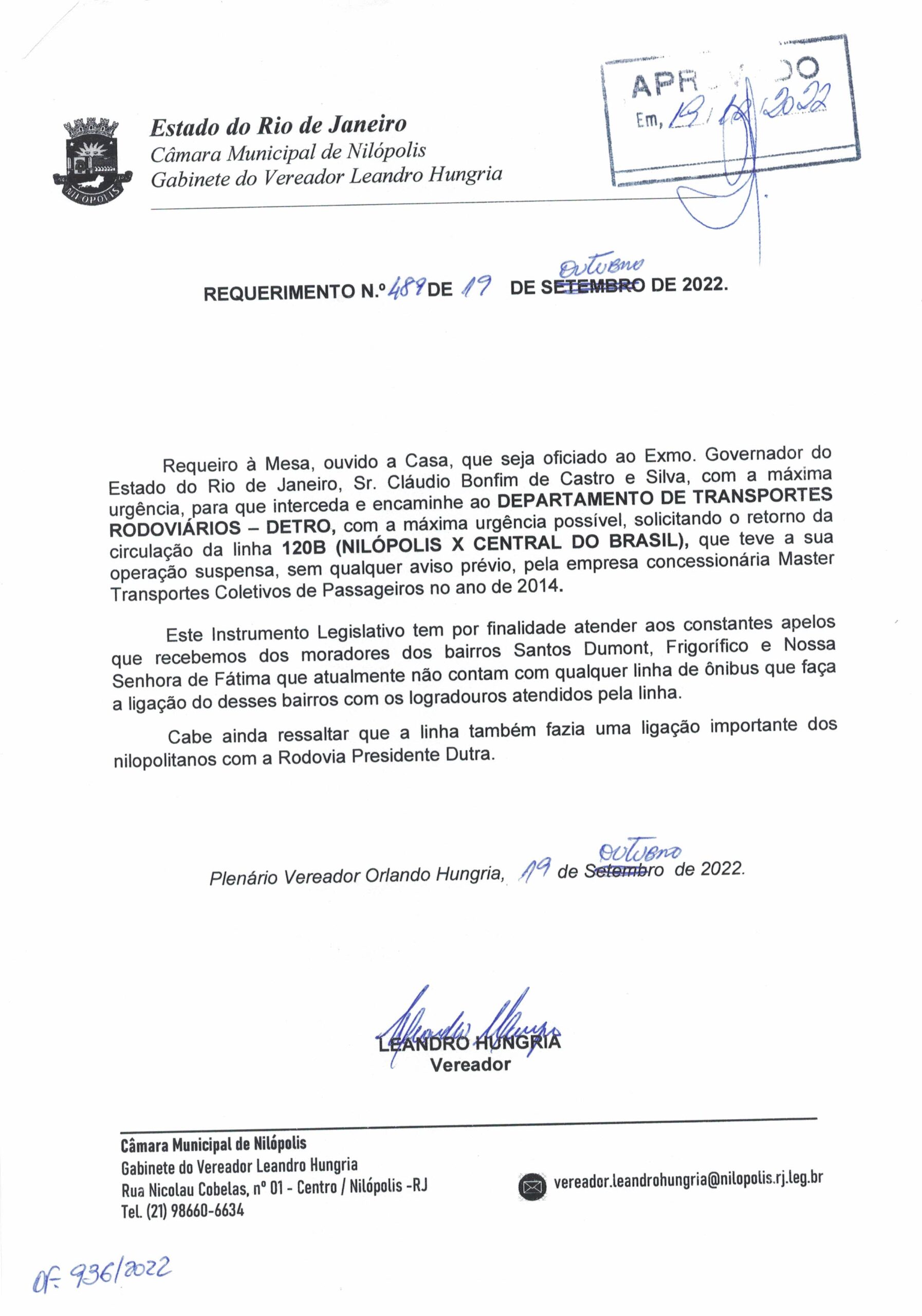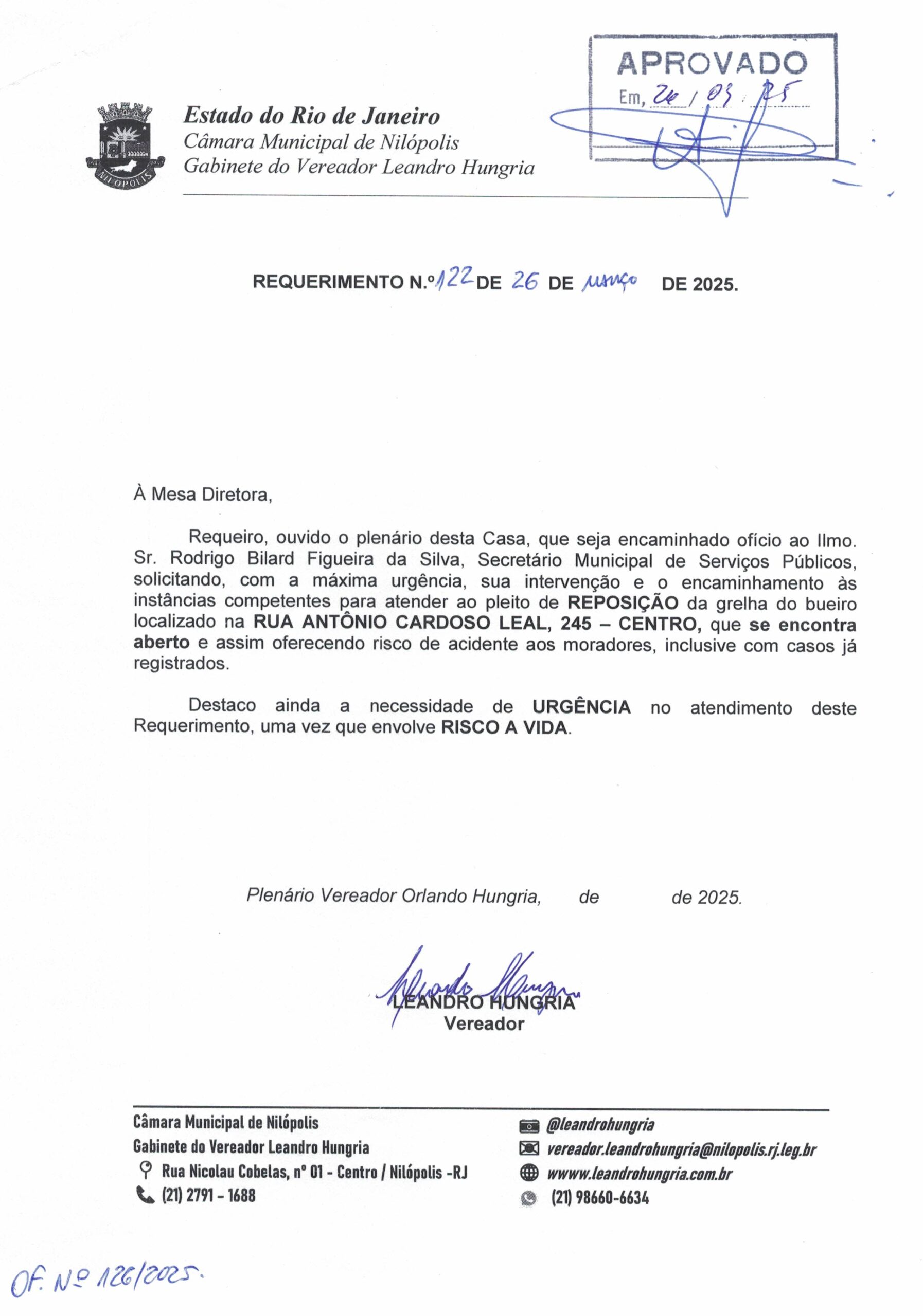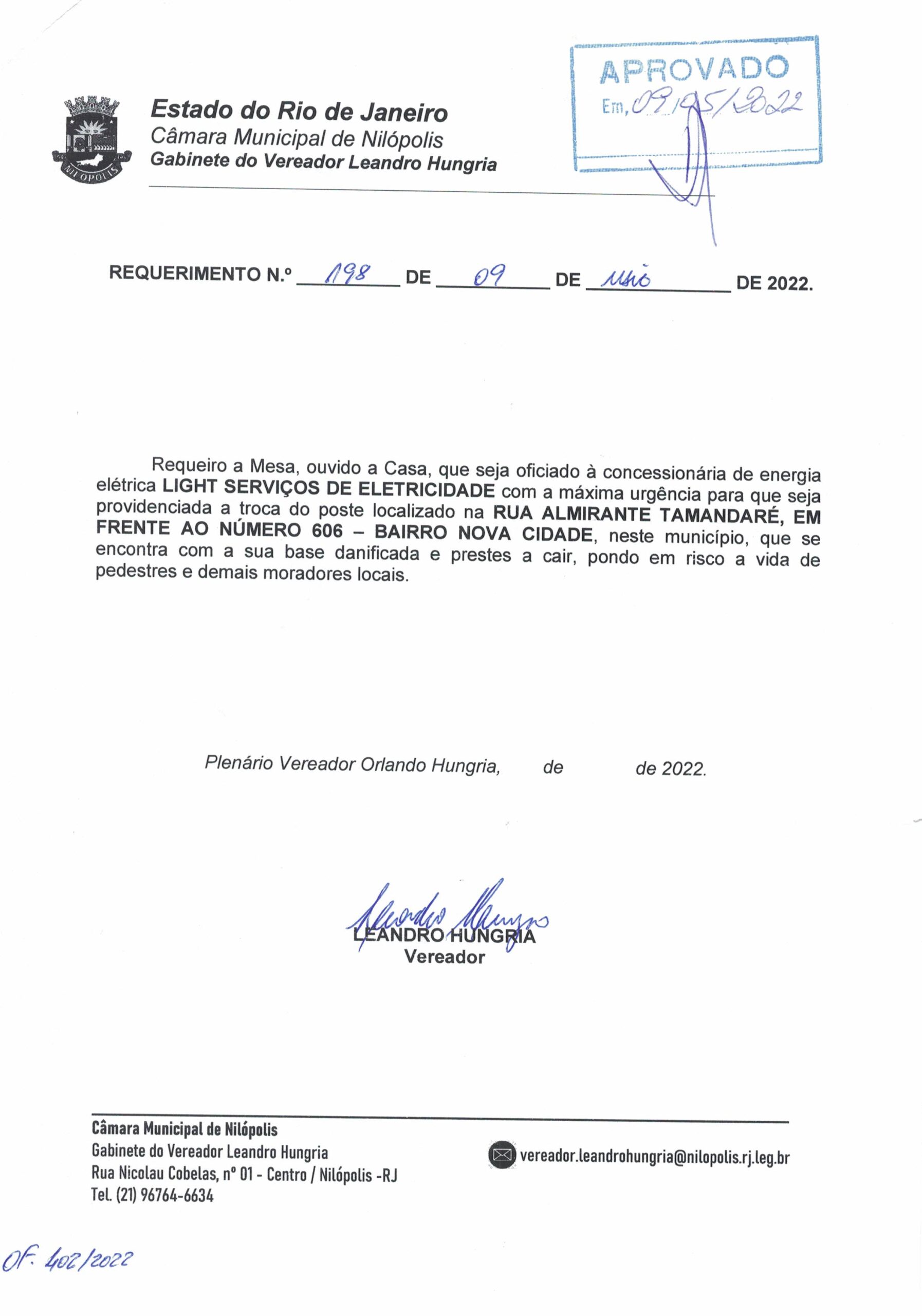 Abaixo apresentamos alguns dos Requerimentos apresentados pelo vereador Leandro Hungria desde o seu primeiro mandato. O arquivo com todos os Requerimentos pode ser encontrado na Câmara Municipal de Nilópolis.