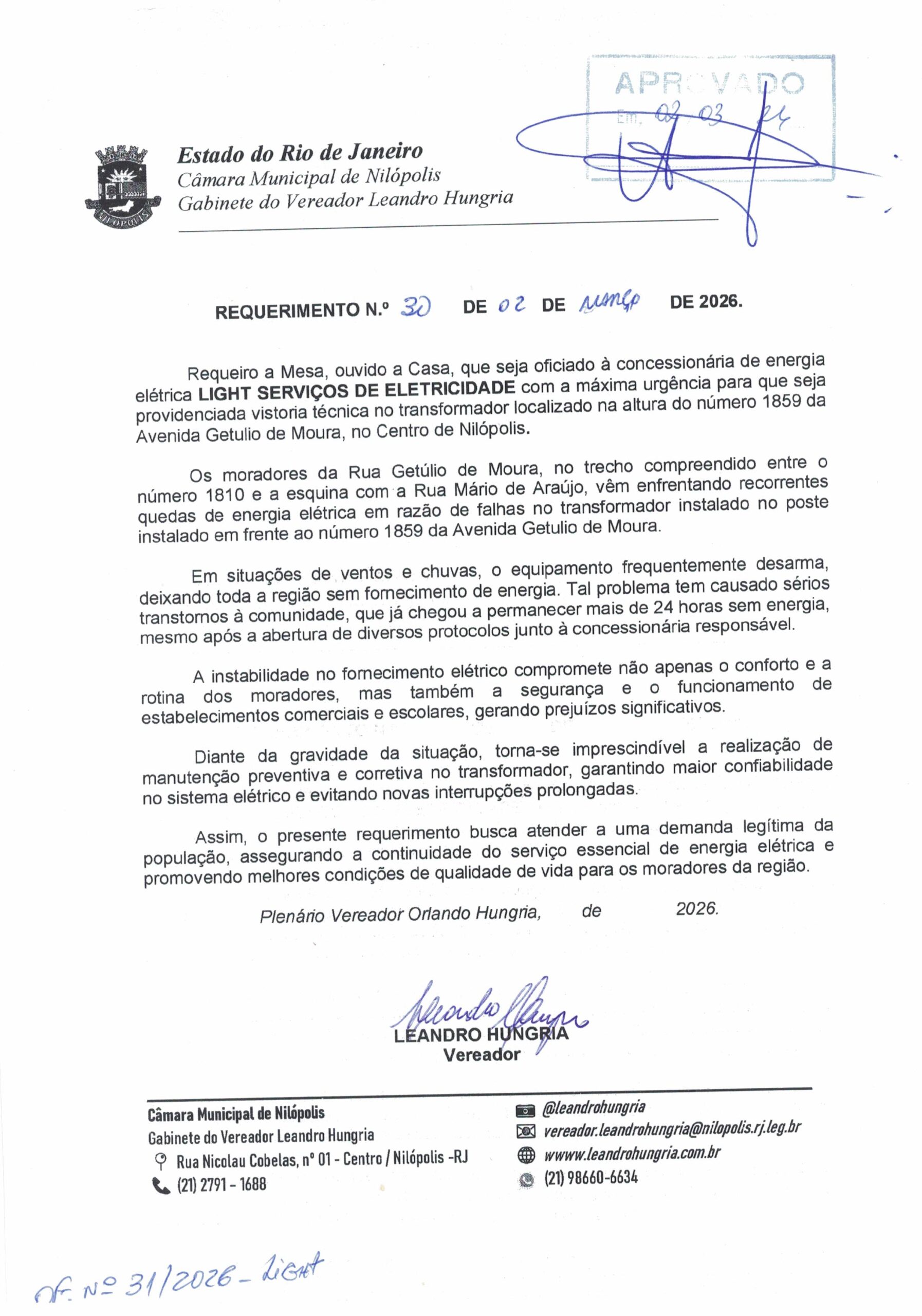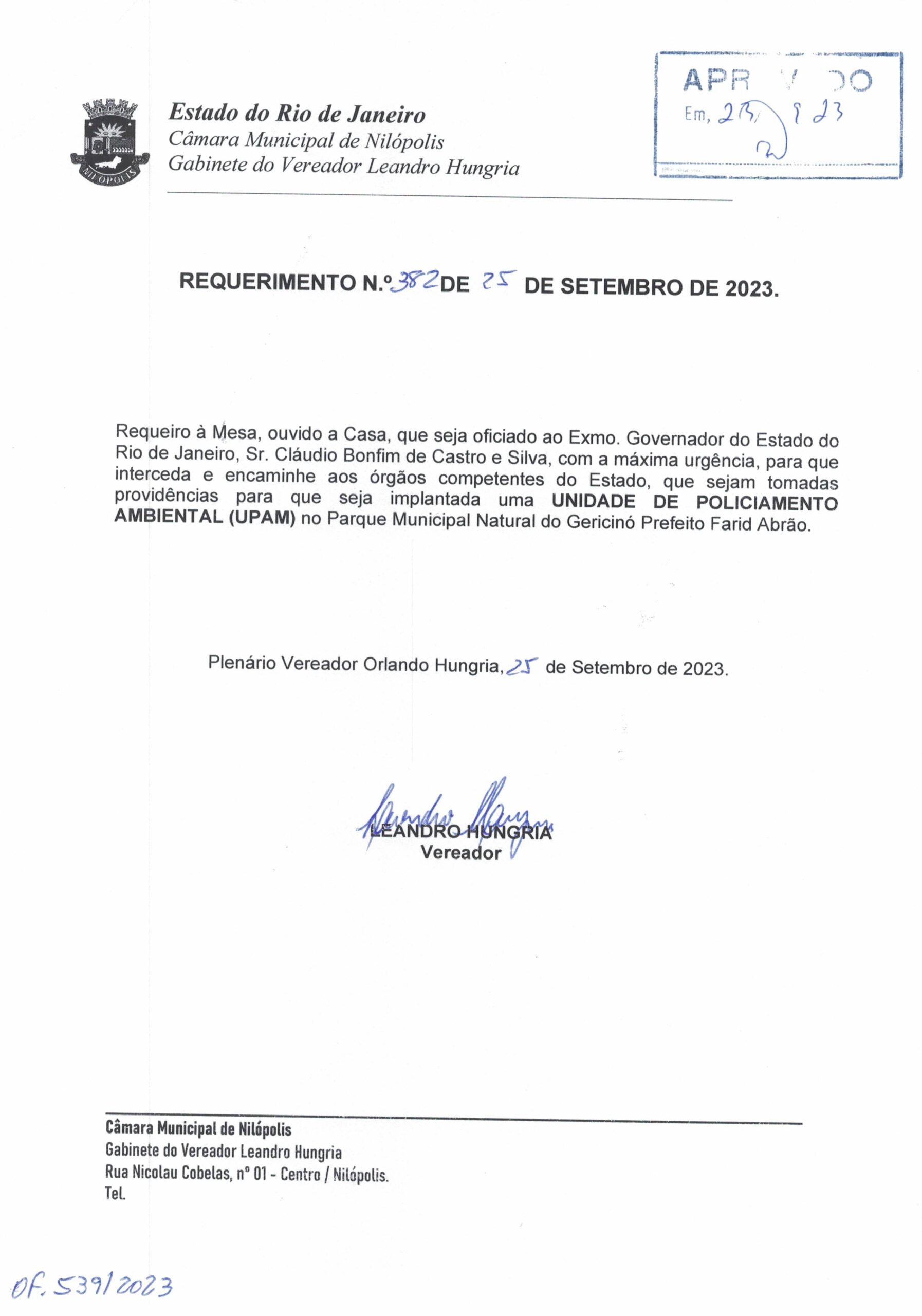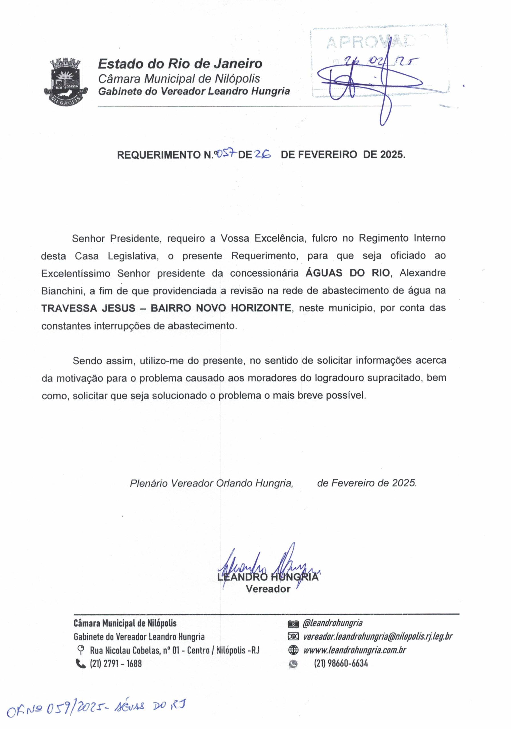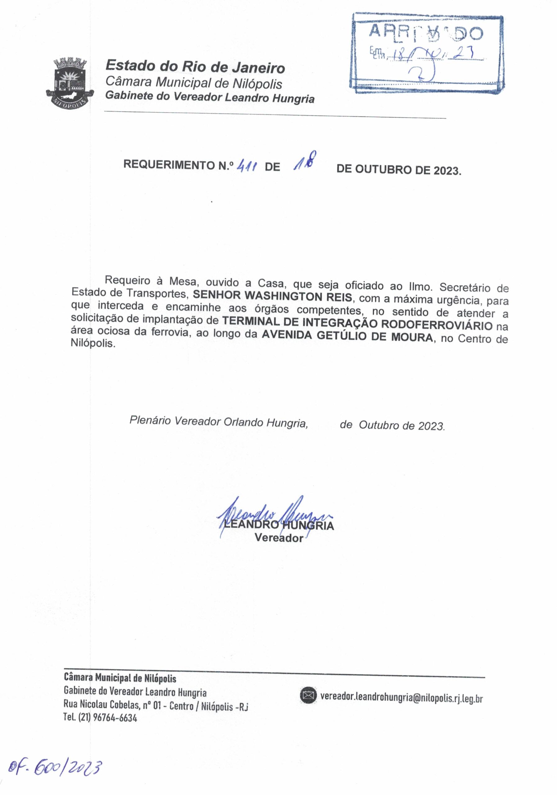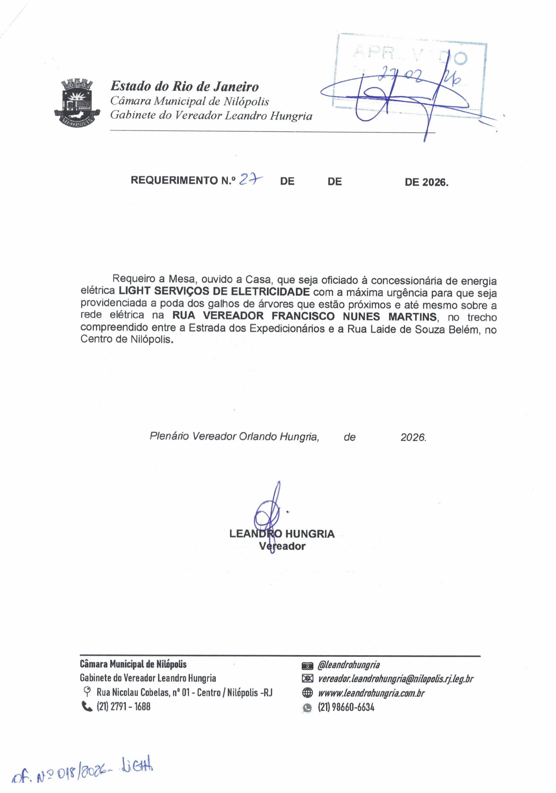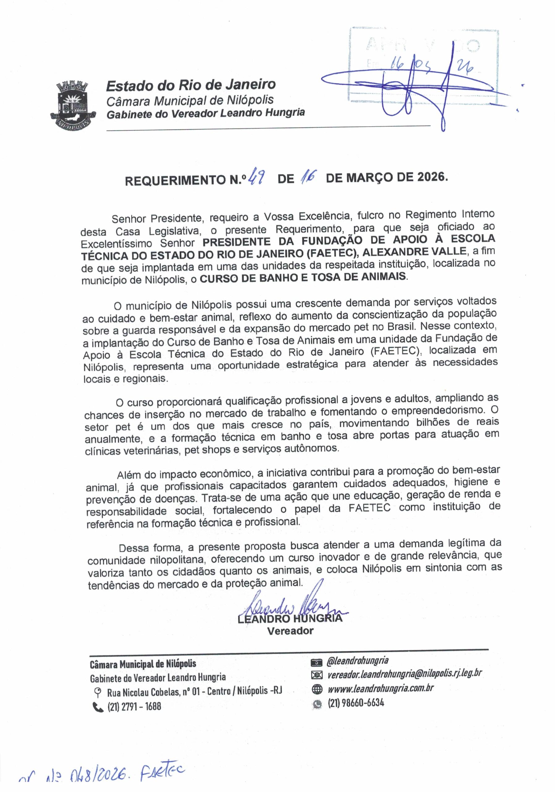 Abaixo apresentamos alguns dos Requerimentos apresentados pelo vereador Leandro Hungria desde o seu primeiro mandato. O arquivo com todos os Requerimentos pode ser encontrado na Câmara Municipal de Nilópolis.