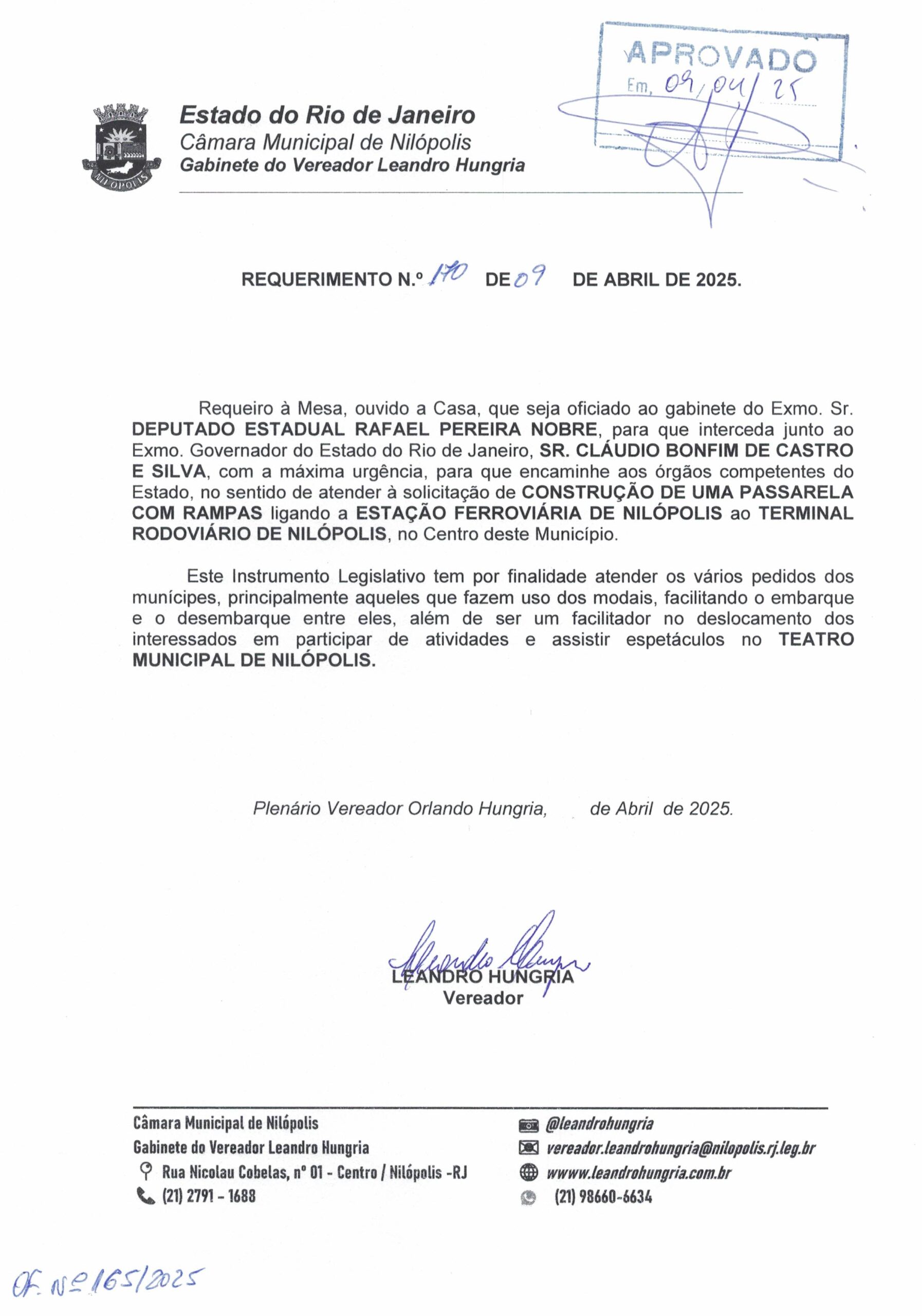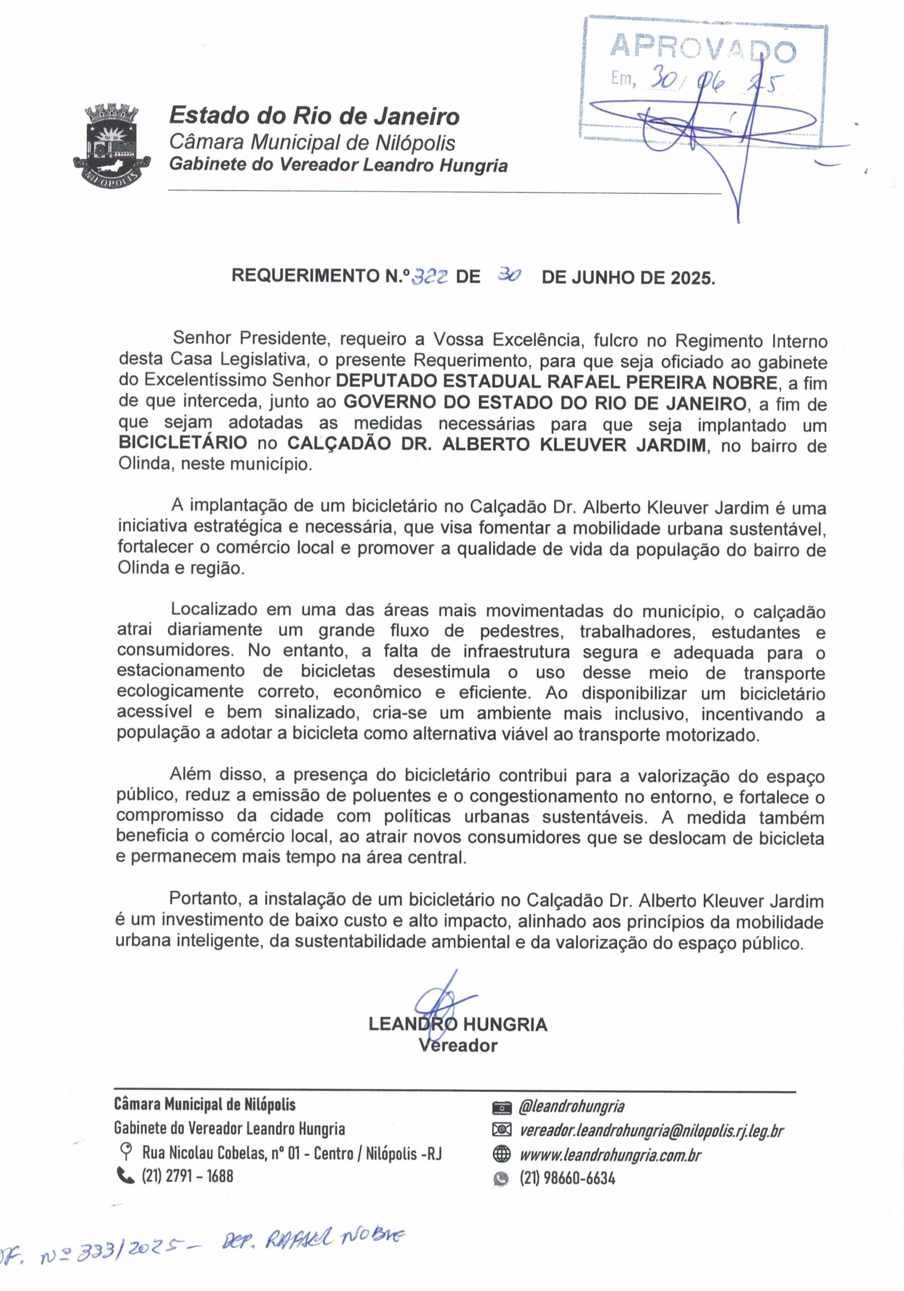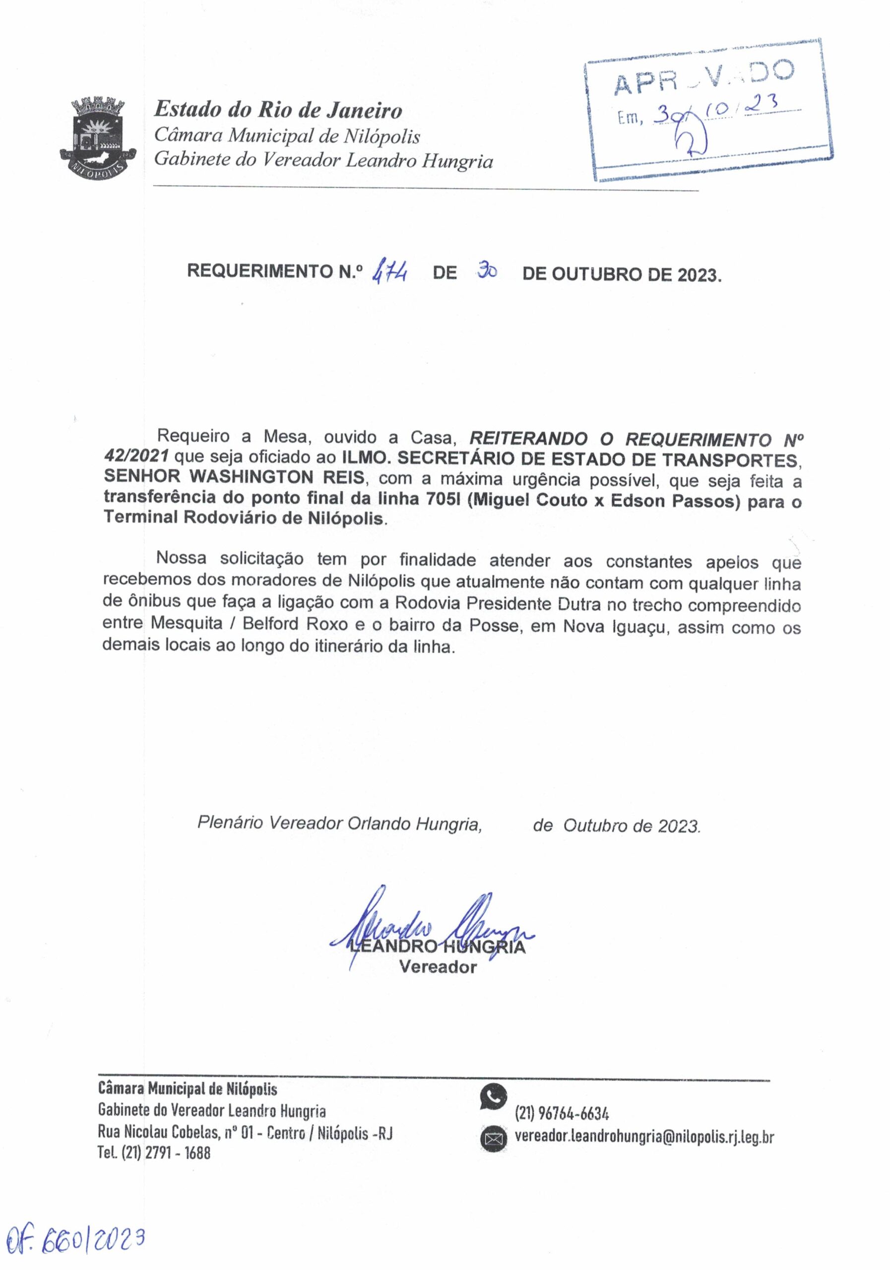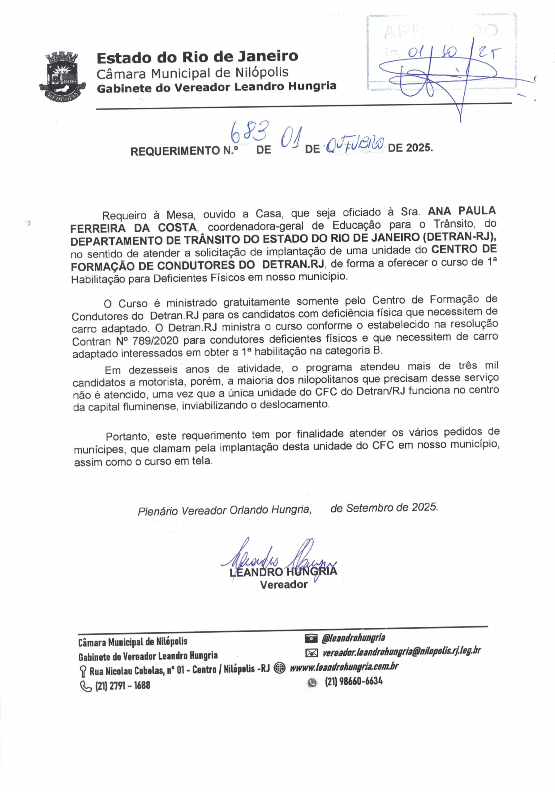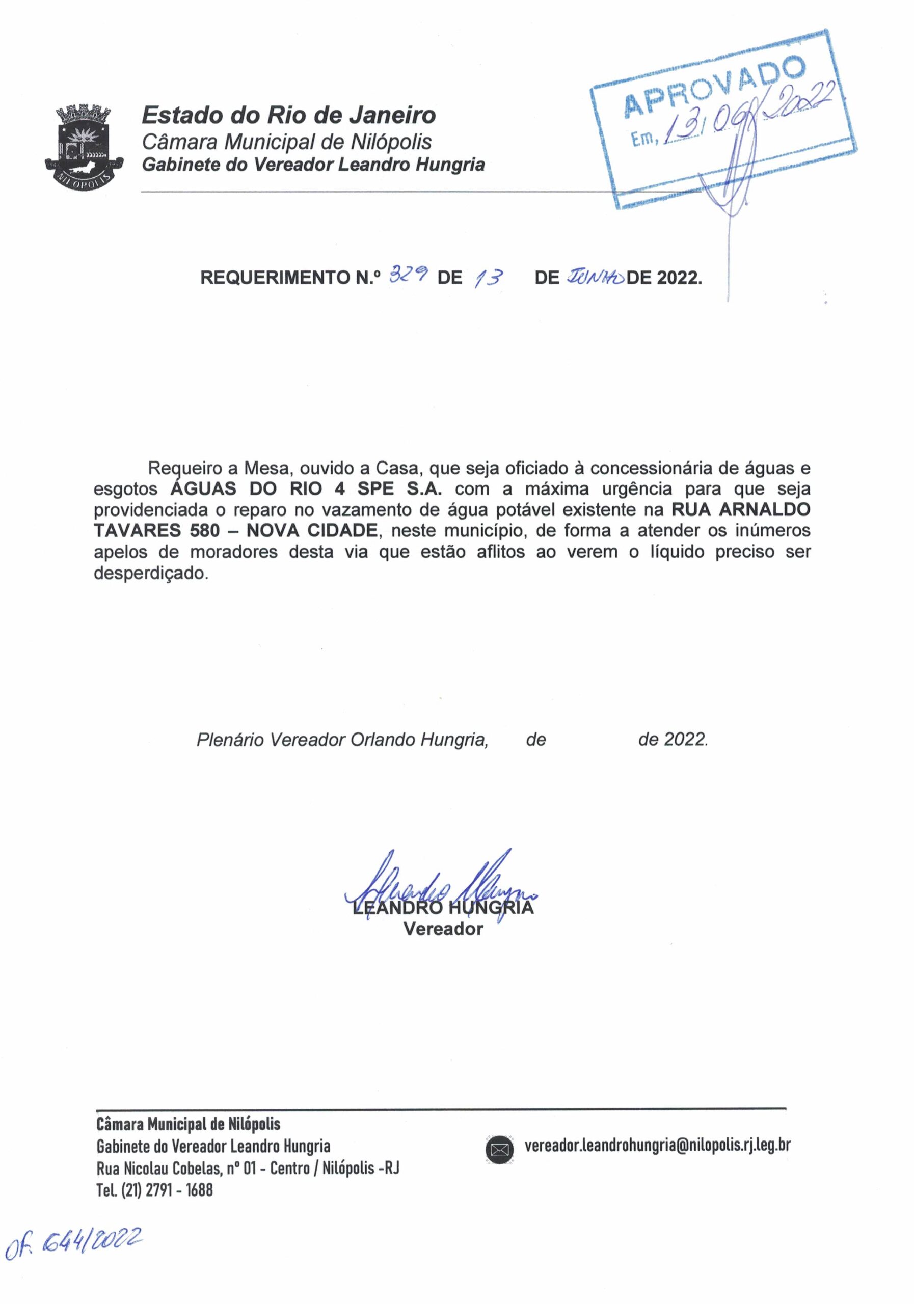 Abaixo apresentamos alguns dos Requerimentos apresentados pelo vereador Leandro Hungria desde o seu primeiro mandato. O arquivo com todos os Requerimentos pode ser encontrado na Câmara Municipal de Nilópolis.