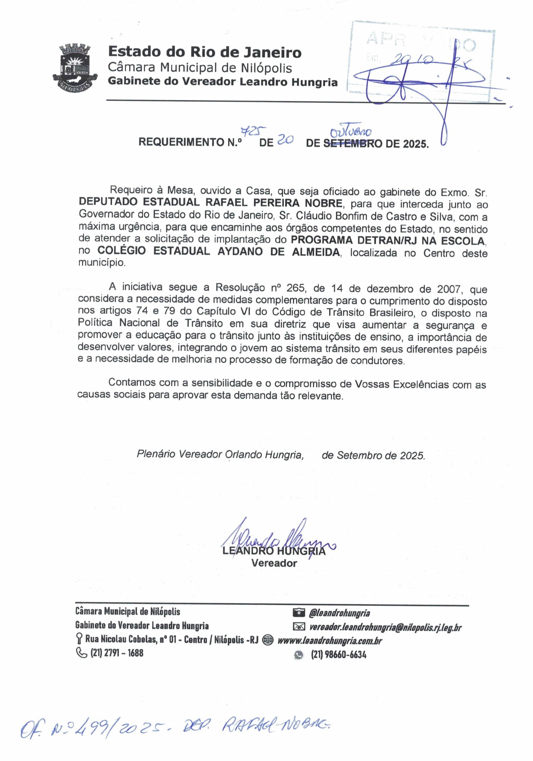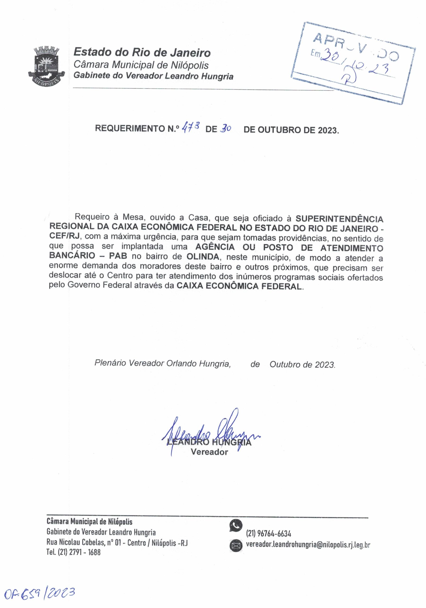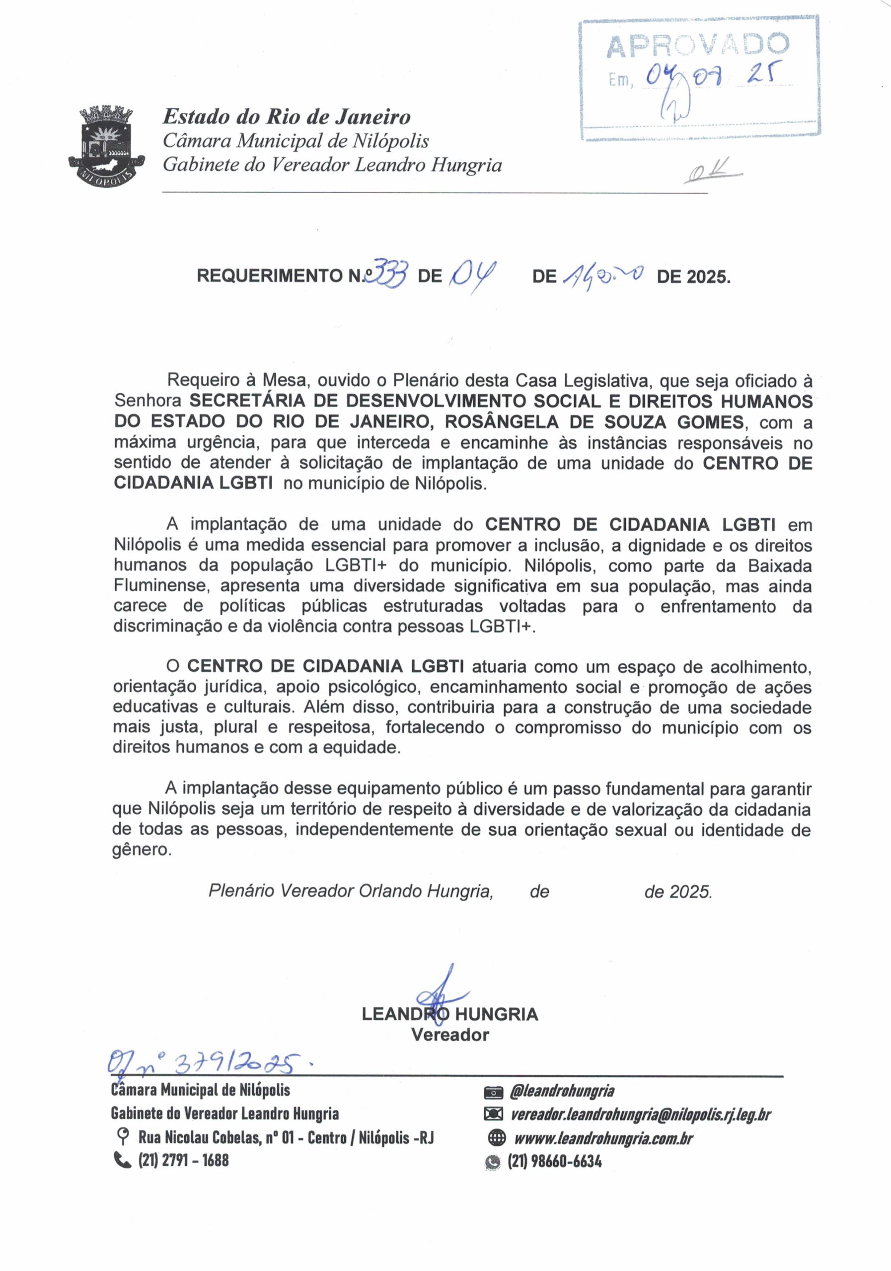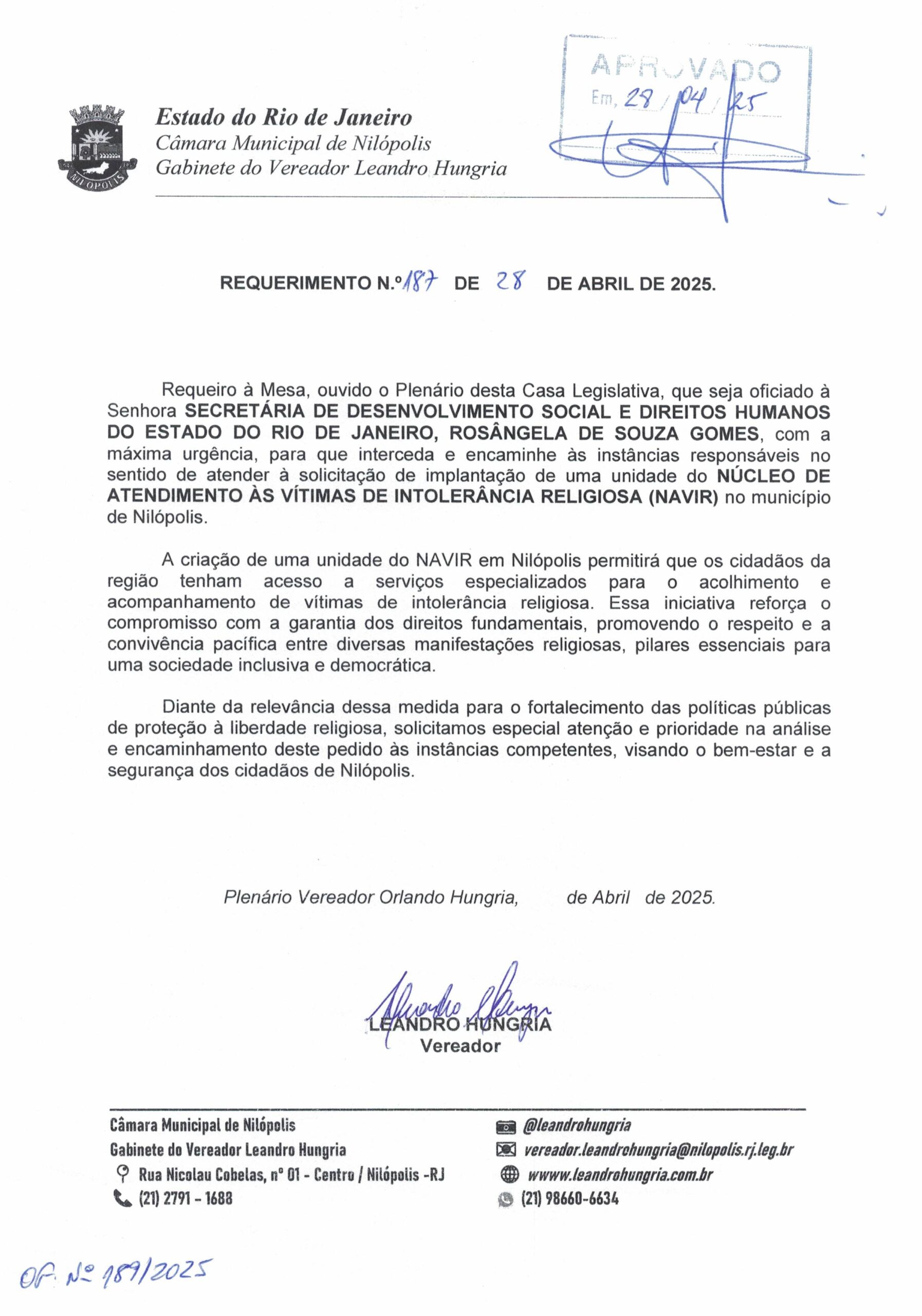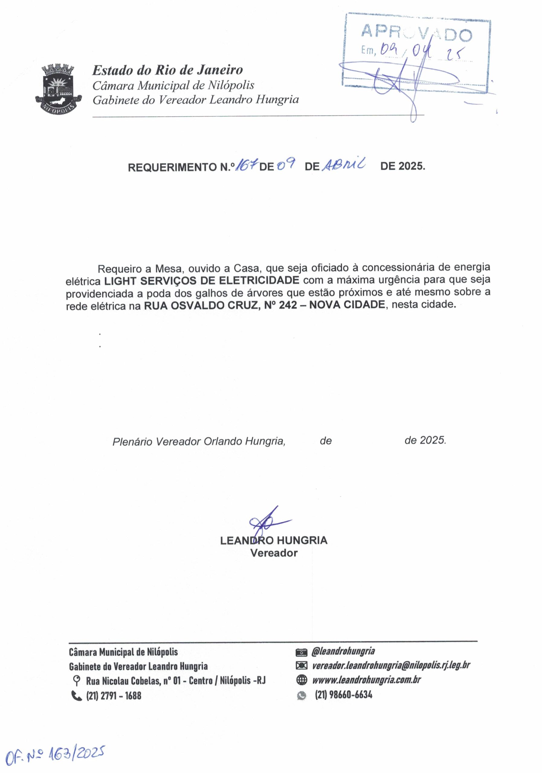 Abaixo apresentamos alguns dos Requerimentos apresentados pelo vereador Leandro Hungria desde o seu primeiro mandato. O arquivo com todos os Requerimentos pode ser encontrado na Câmara Municipal de Nilópolis.