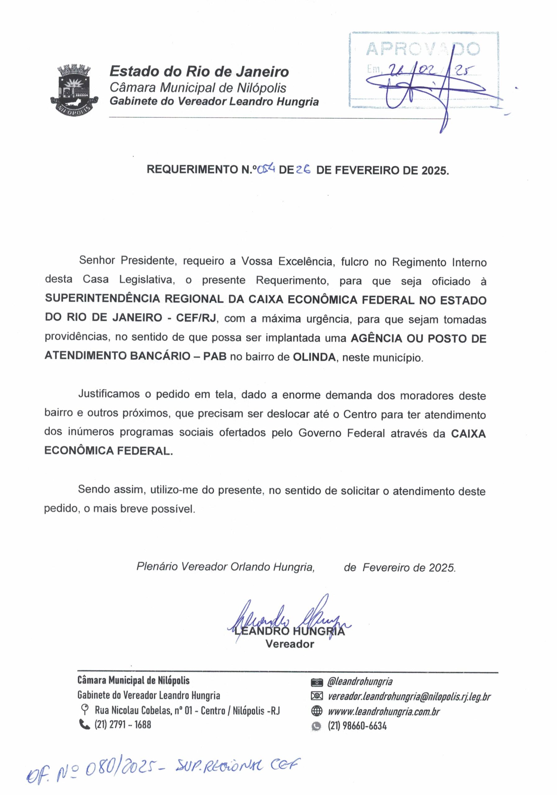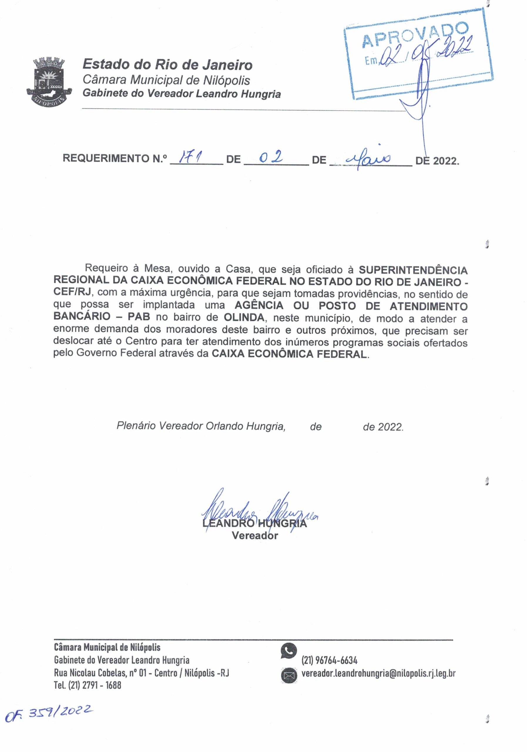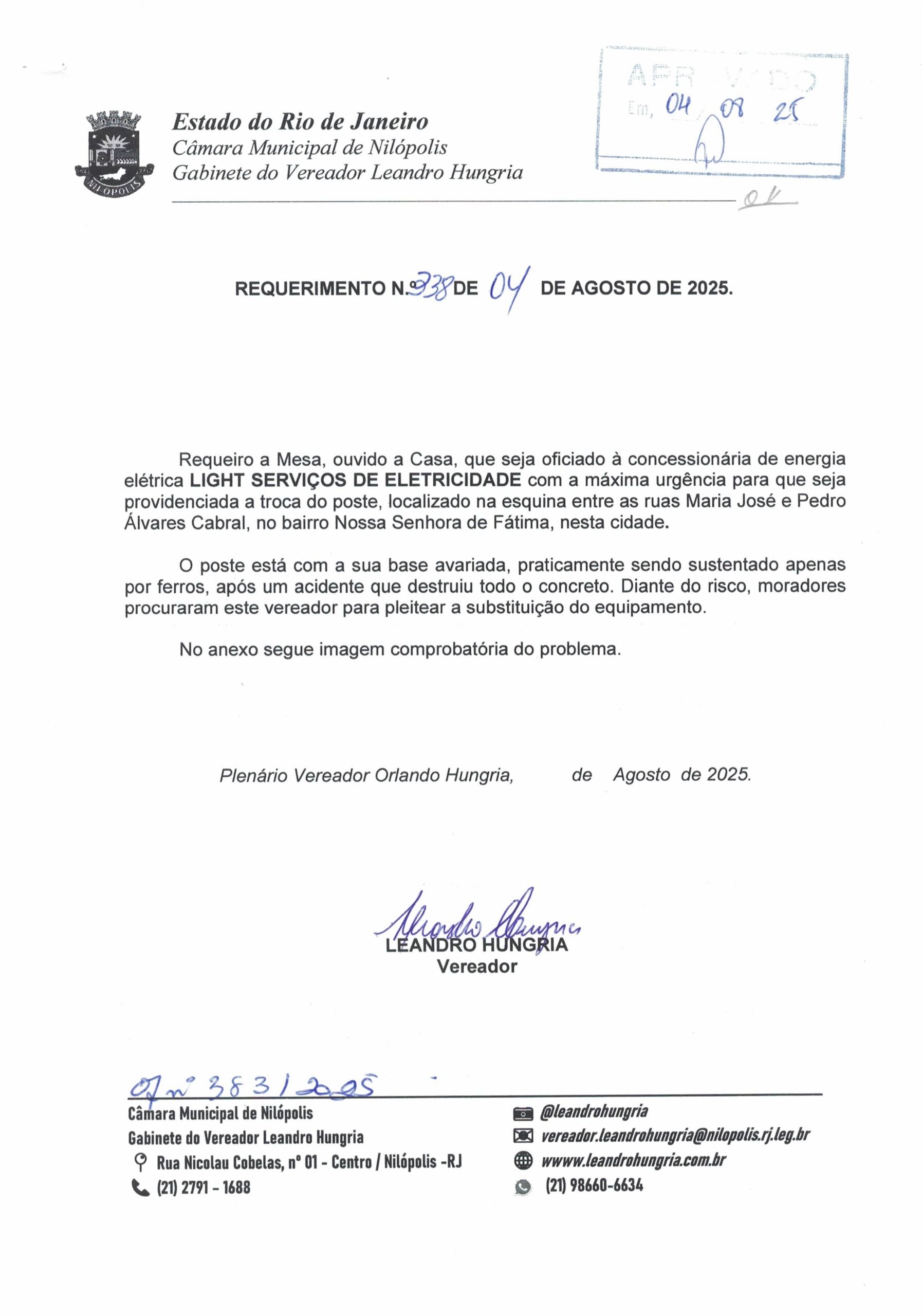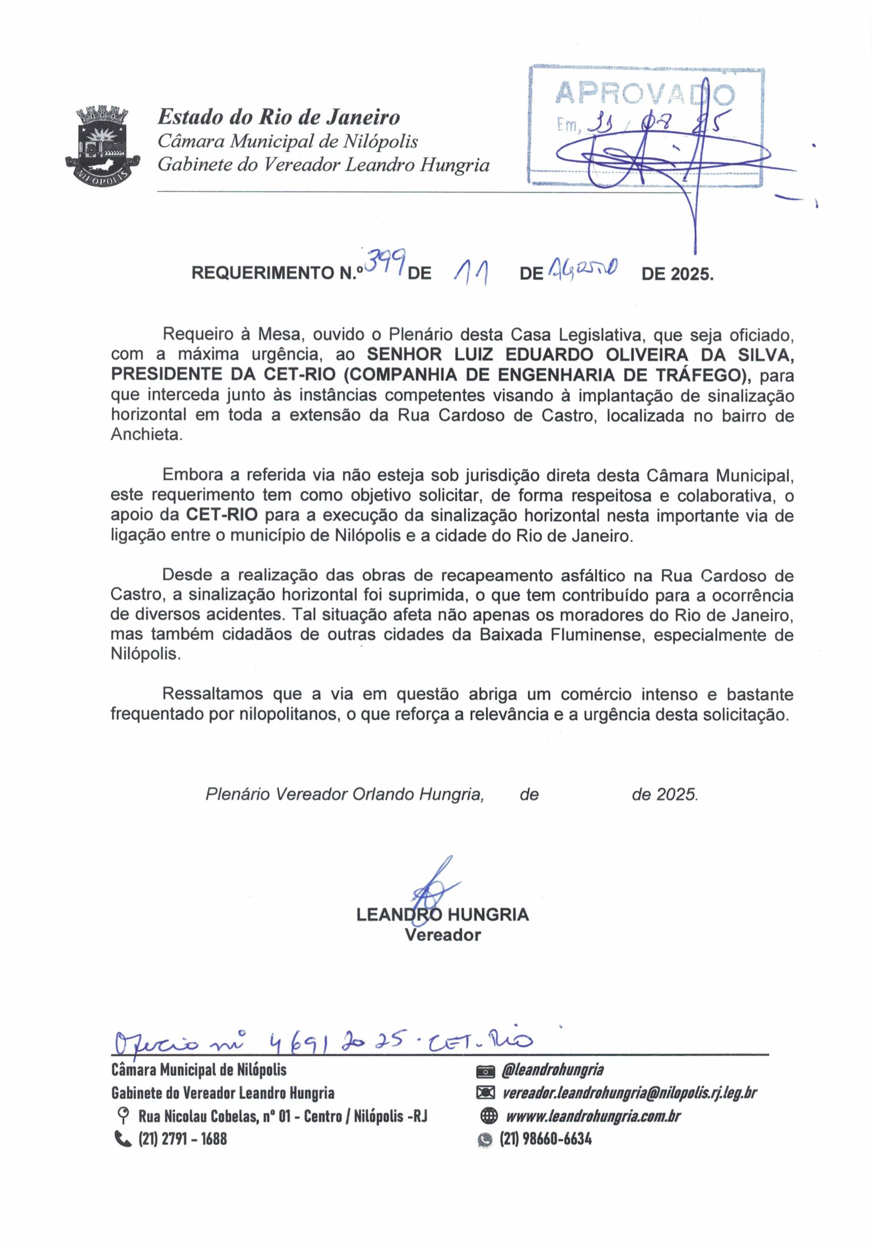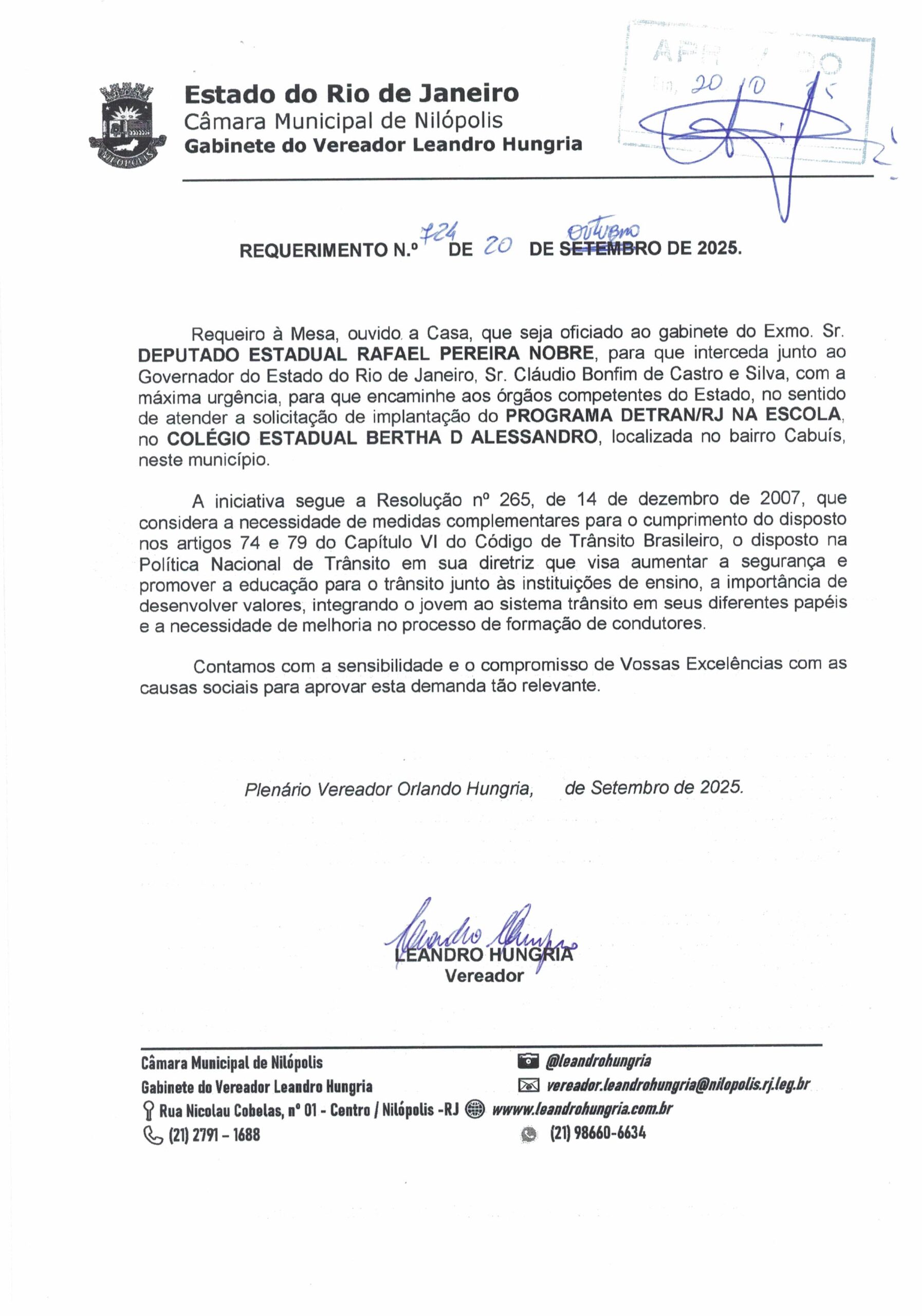 Abaixo apresentamos alguns dos Requerimentos apresentados pelo vereador Leandro Hungria desde o seu primeiro mandato. O arquivo com todos os Requerimentos pode ser encontrado na Câmara Municipal de Nilópolis.