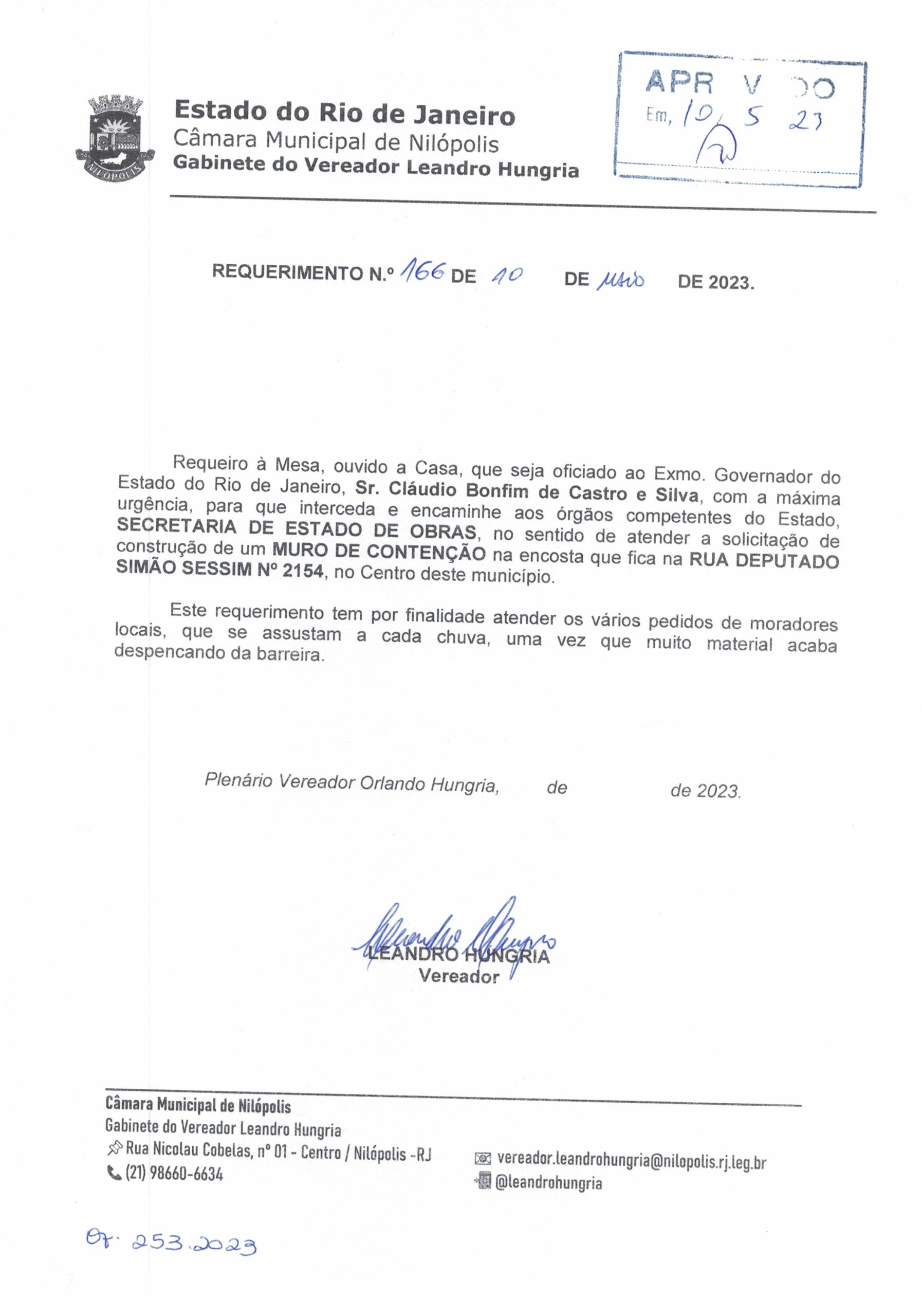 - 166 – REQ ENCOSTA SIMÃO SESSIM 2154