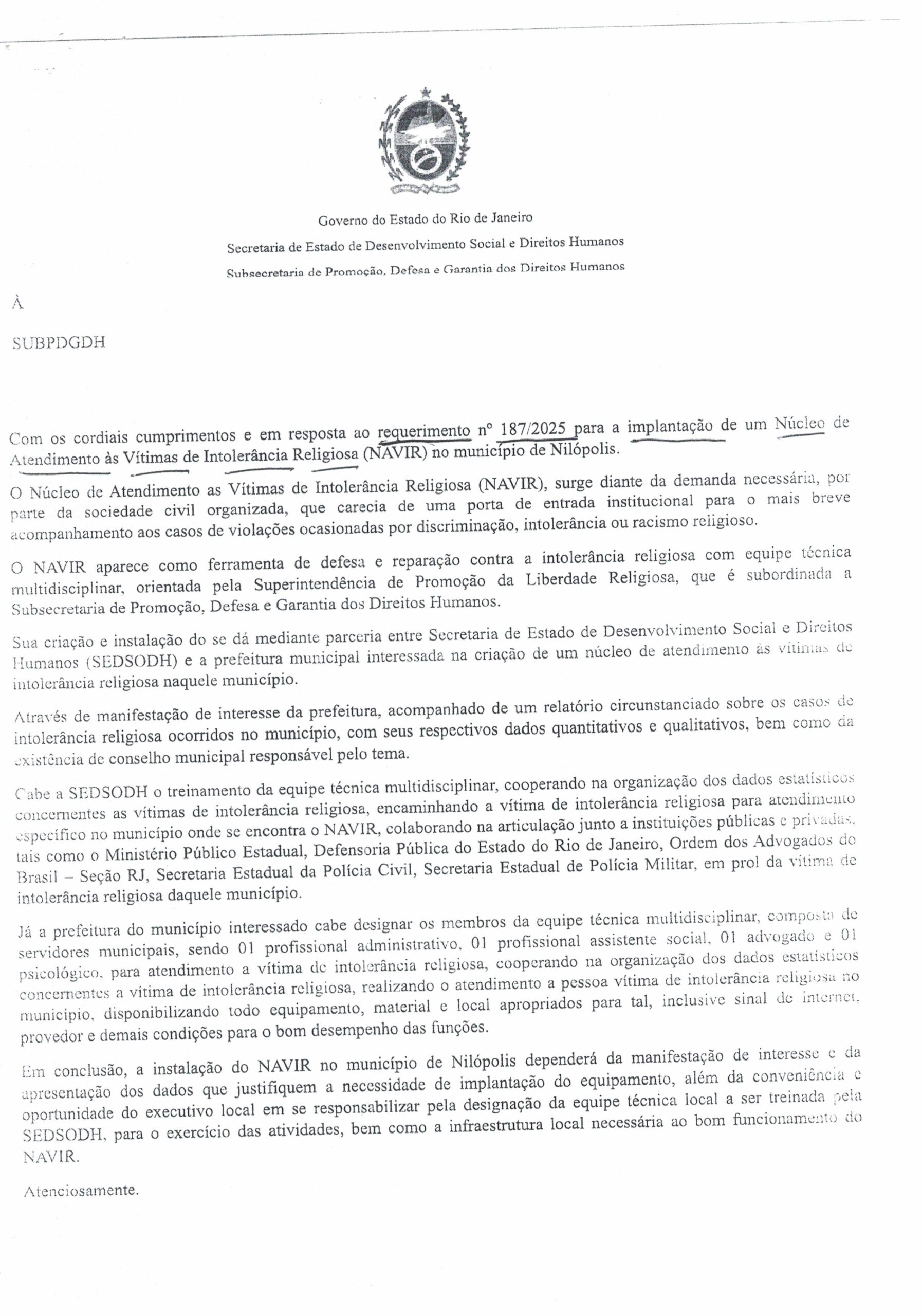 - 187 – NÚCLEO DE ATENDIMENTO ÀS VÍTIMAS DE INTOLERÂNCIA RELIGIOSA (NAVIR)