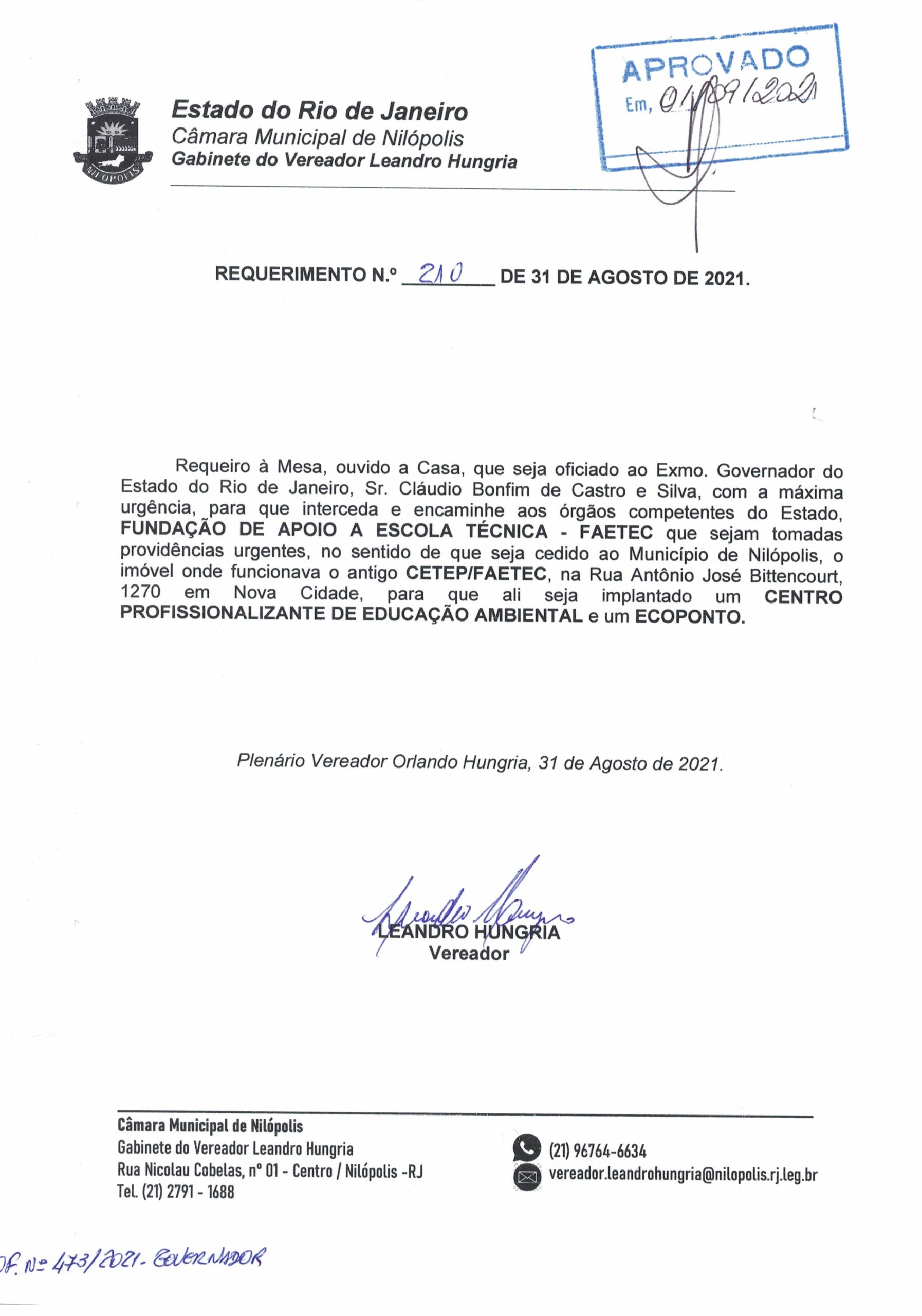 - 210 – REQ CESSÃO IMÓVEL FAETEC