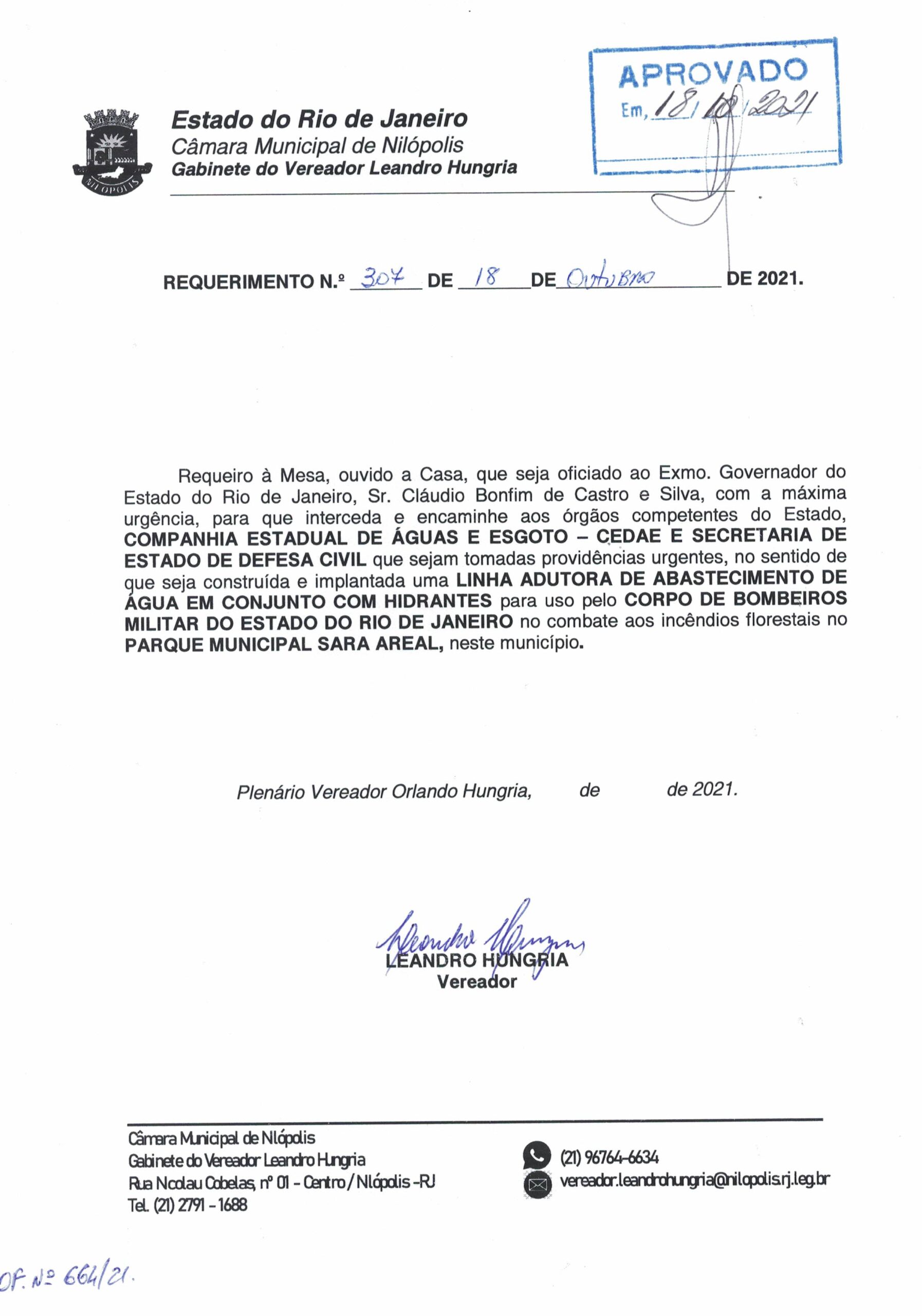 - 307 – REQ ADUTORA E HIDRANTES SARA AREAL