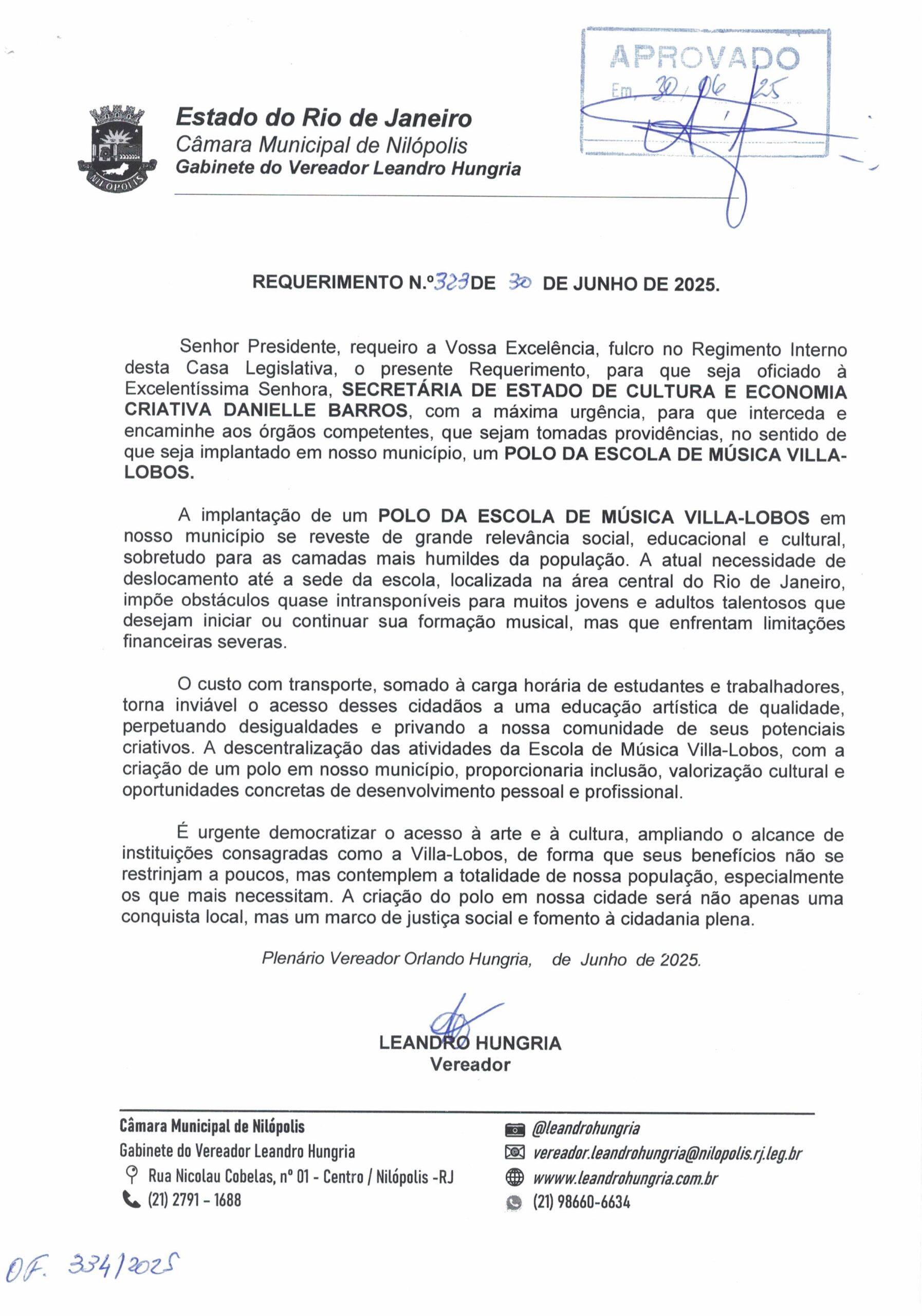 - 323 – IMPLANTAÇÃO DE UM POLO DA ESCOLA DE MÚSICA VILLA LOBOS