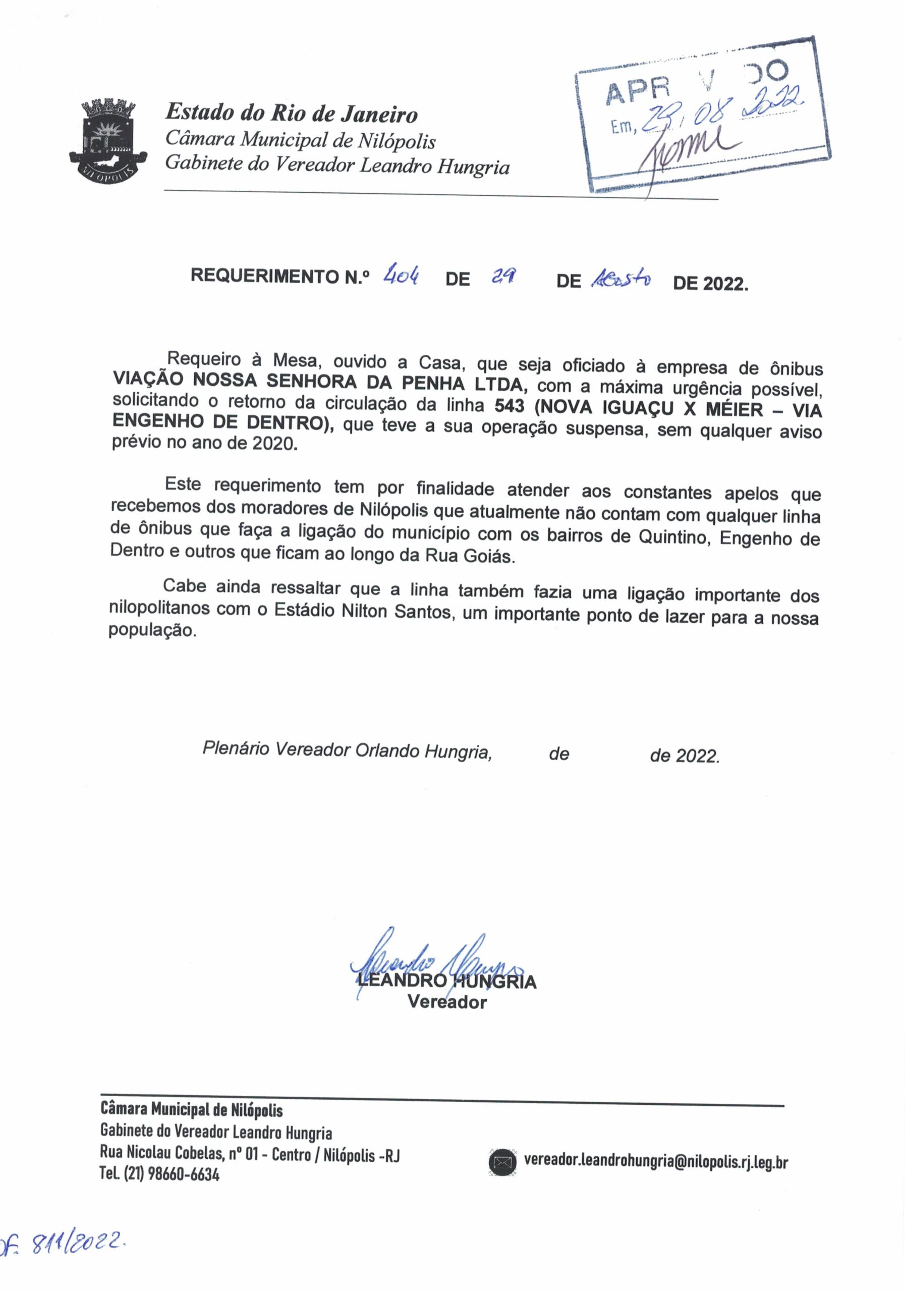 - 404 – RETORNO LINHA 543 NOSSA SENHORA DA PENHA