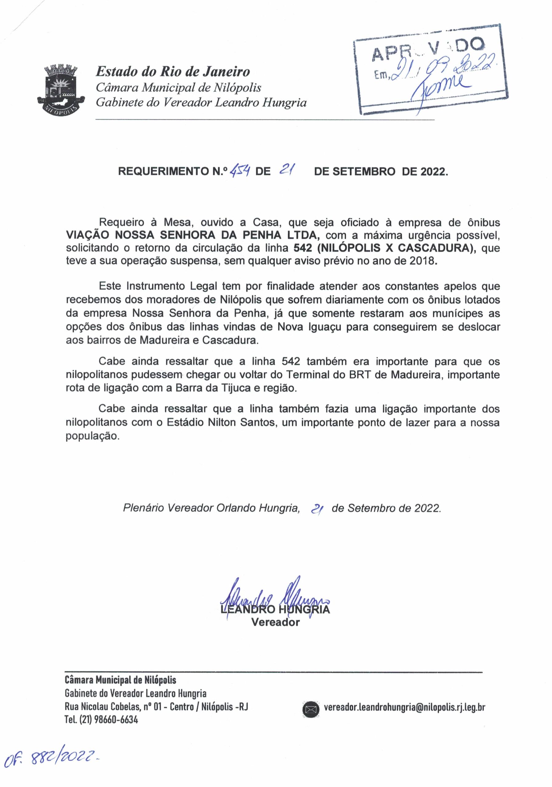 - 454 – RETORNO LINHA 542 NOSSA SENHORA DA PENHA