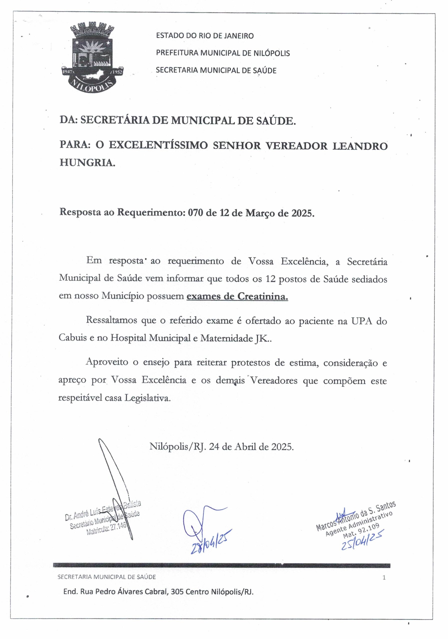 - 70 – EXAME DE CREATININA NOS POSTOS DE SAÚDE