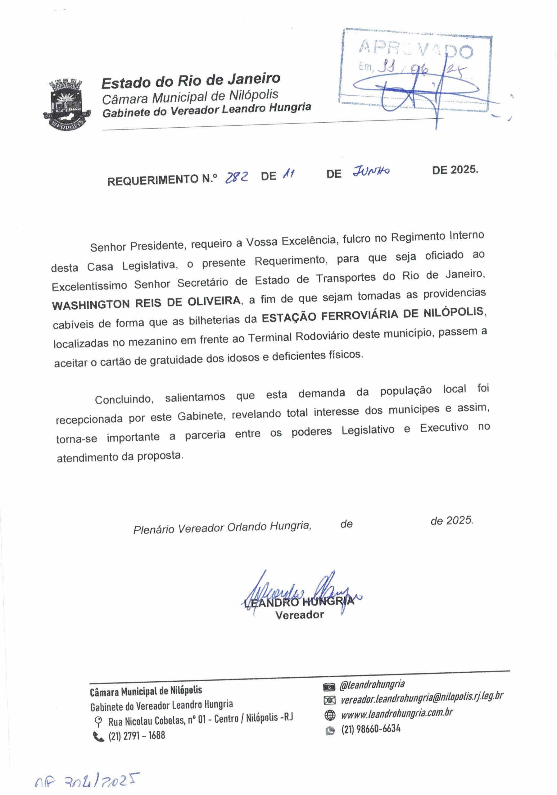 - 282 – ACESSO IDOSOS NA ESTAÇÃO FERROVIÁRIA DE NILÓPOLIS