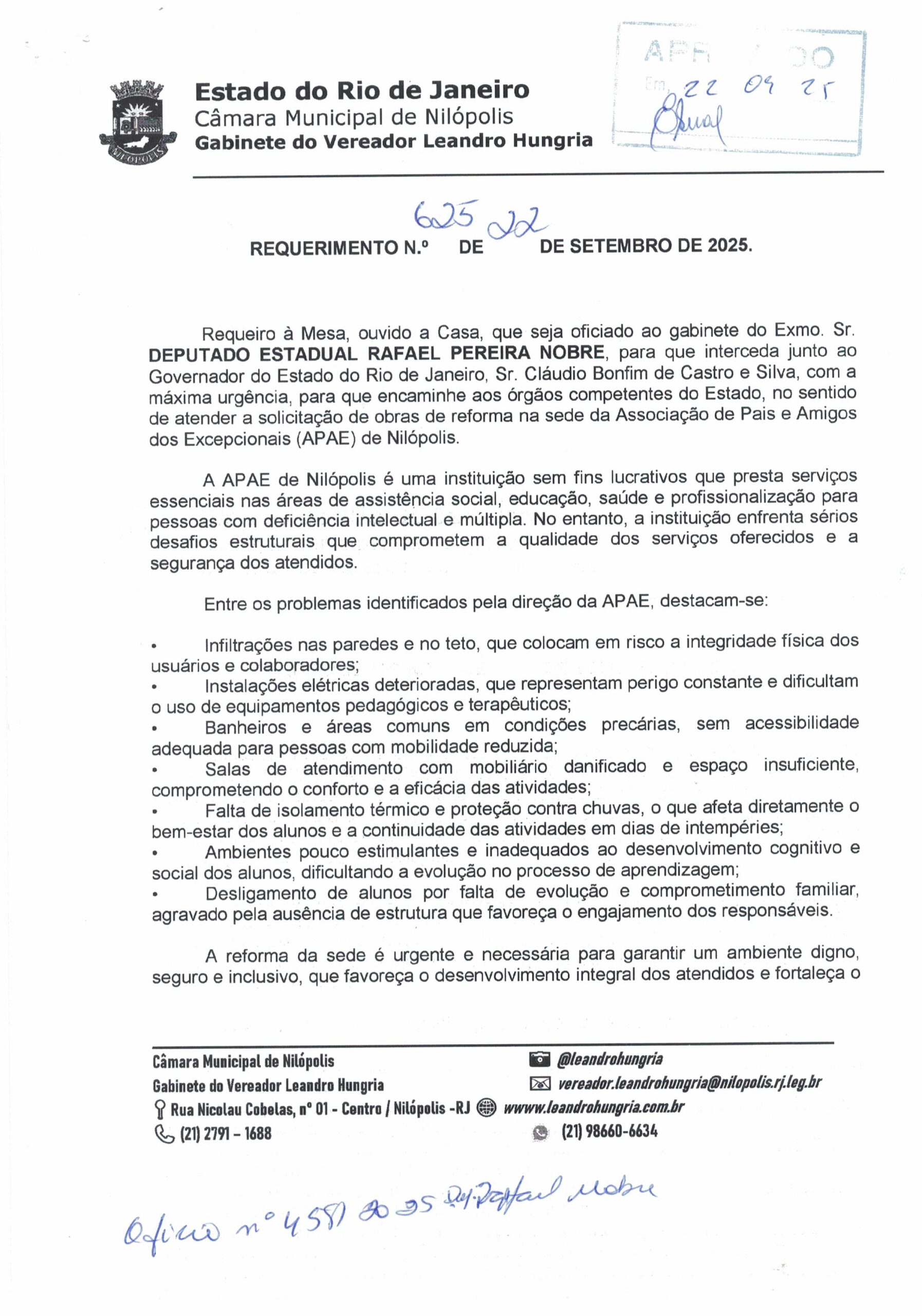 - 625 – REFORMA DA SEDE DA APAE NILÓPOLIS