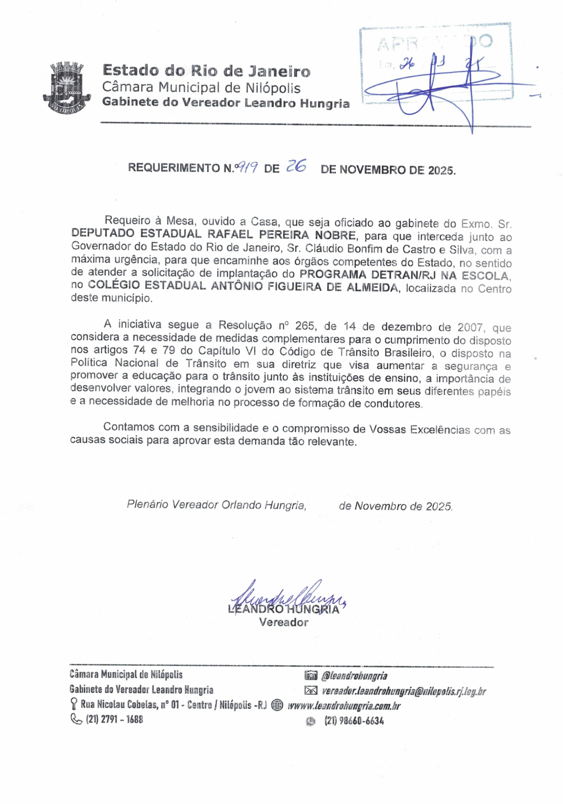 - 919 – PROJETO DETRAN NA ESCOLA ANTÔNIO FIGUEIRA DE ALMEIDA