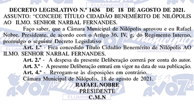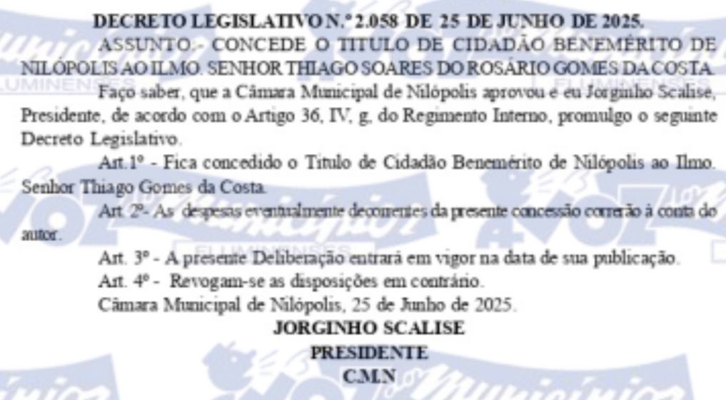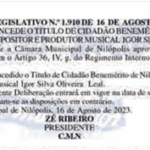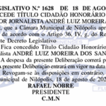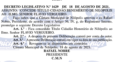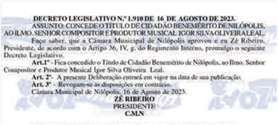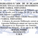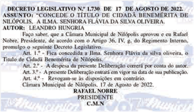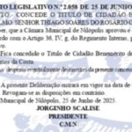Ao conceder esse título, o Vereador Leandro Hungria presta homenagem àqueles que se destacam por sua trajetória exemplar, reforçando o compromisso de valorizar pessoas que deixam marcas positivas e duradouras na sociedade.