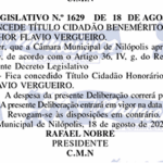 O Título de Cidadão Benemérito é uma das mais altas honrarias concedidas pelo Poder Legislativo Municipal. Destina-se a reconhecer cidadãos que, por suas ações, serviços e dedicação, contribuíram de forma significativa para o desenvolvimento da cidade e para o bem-estar da comunidade.
